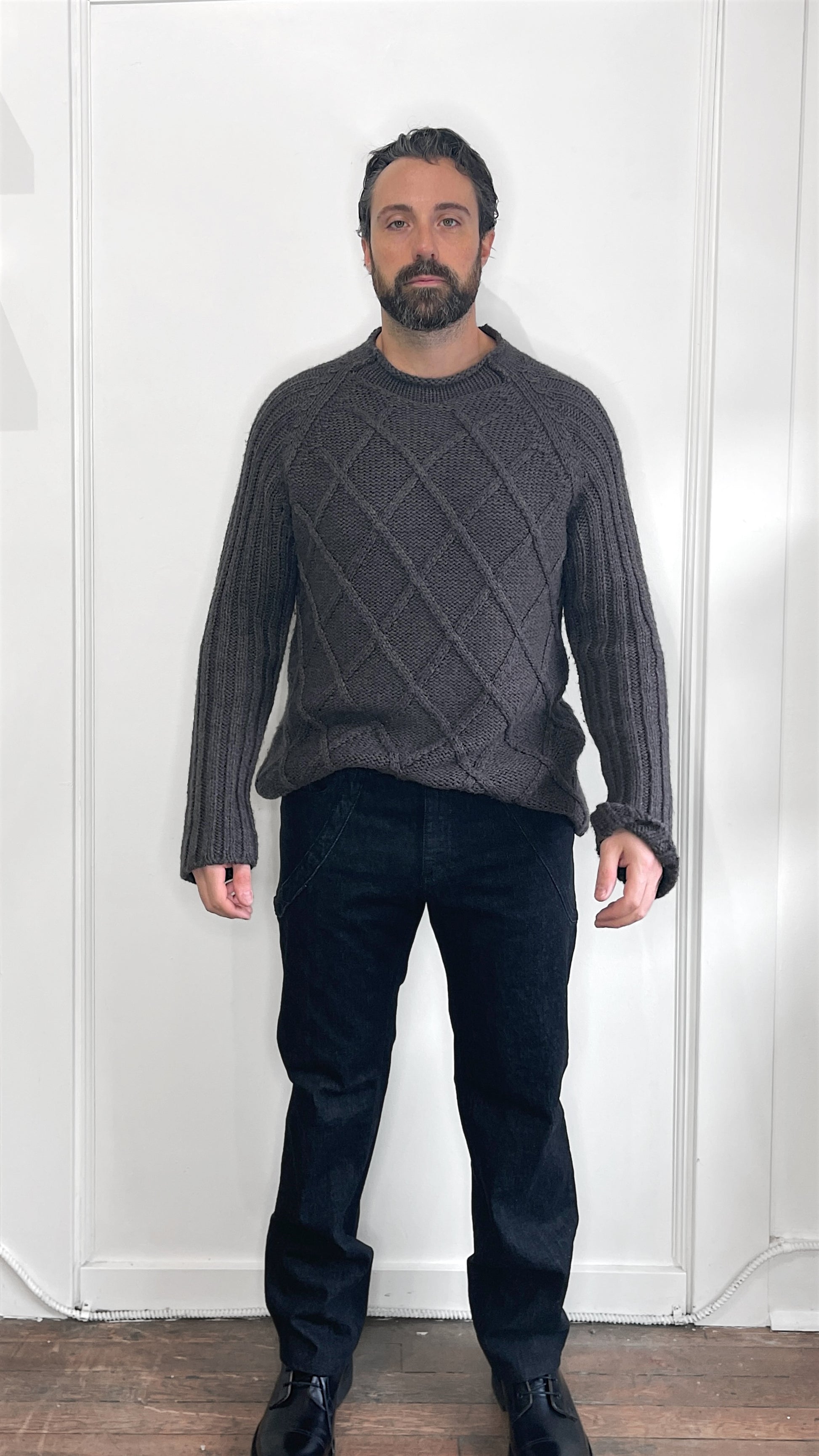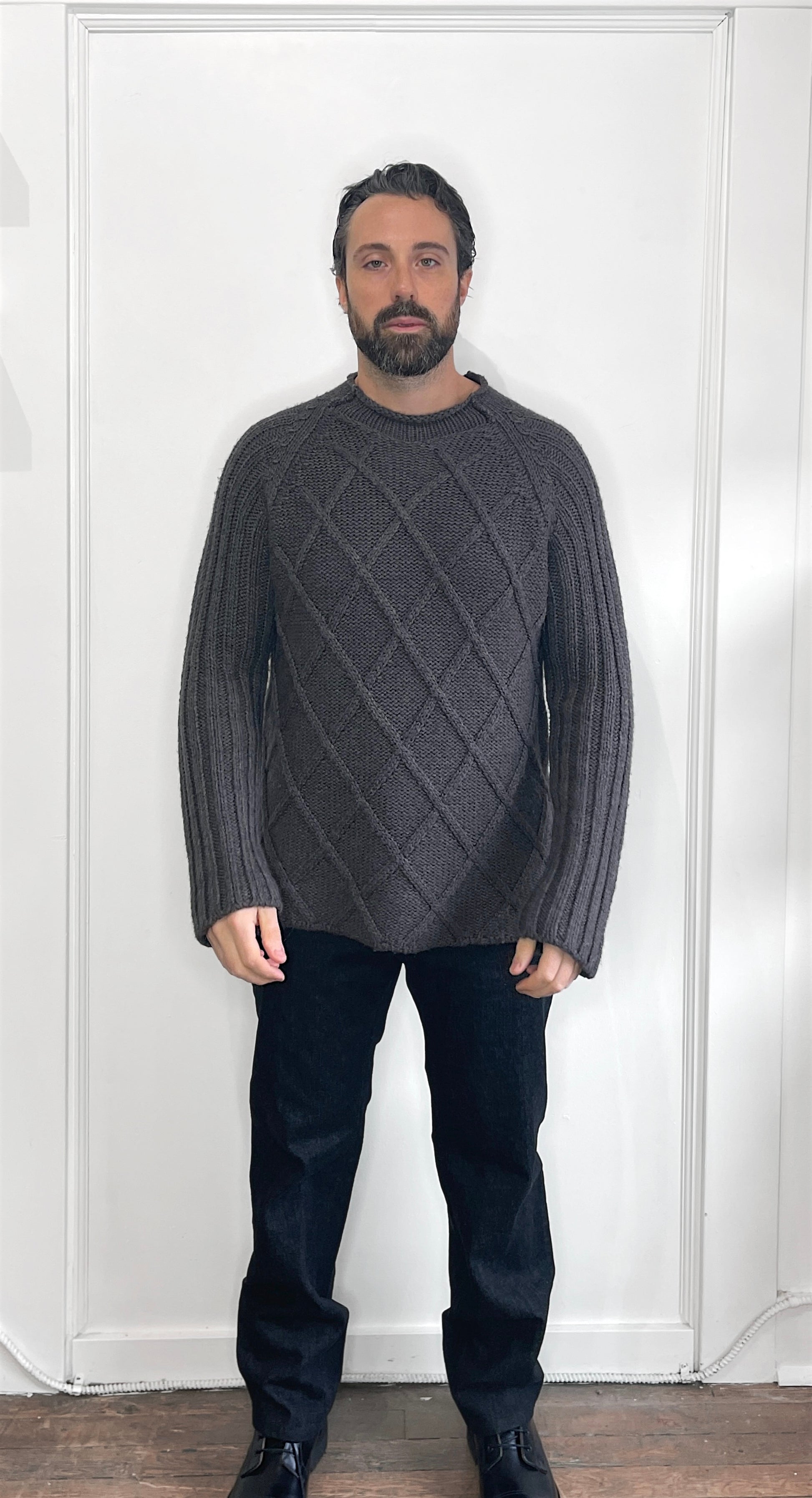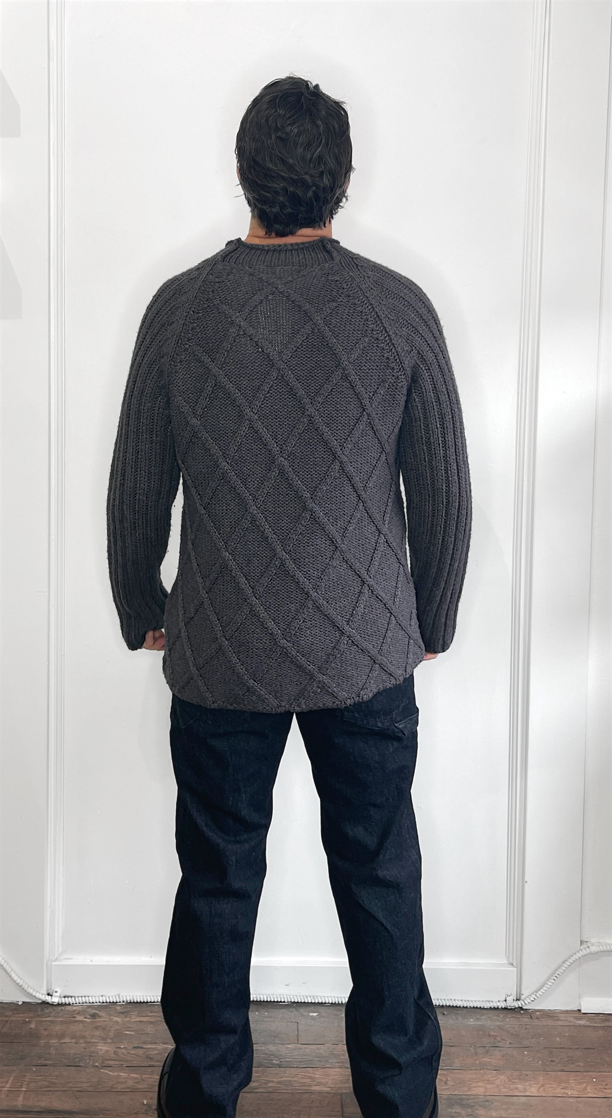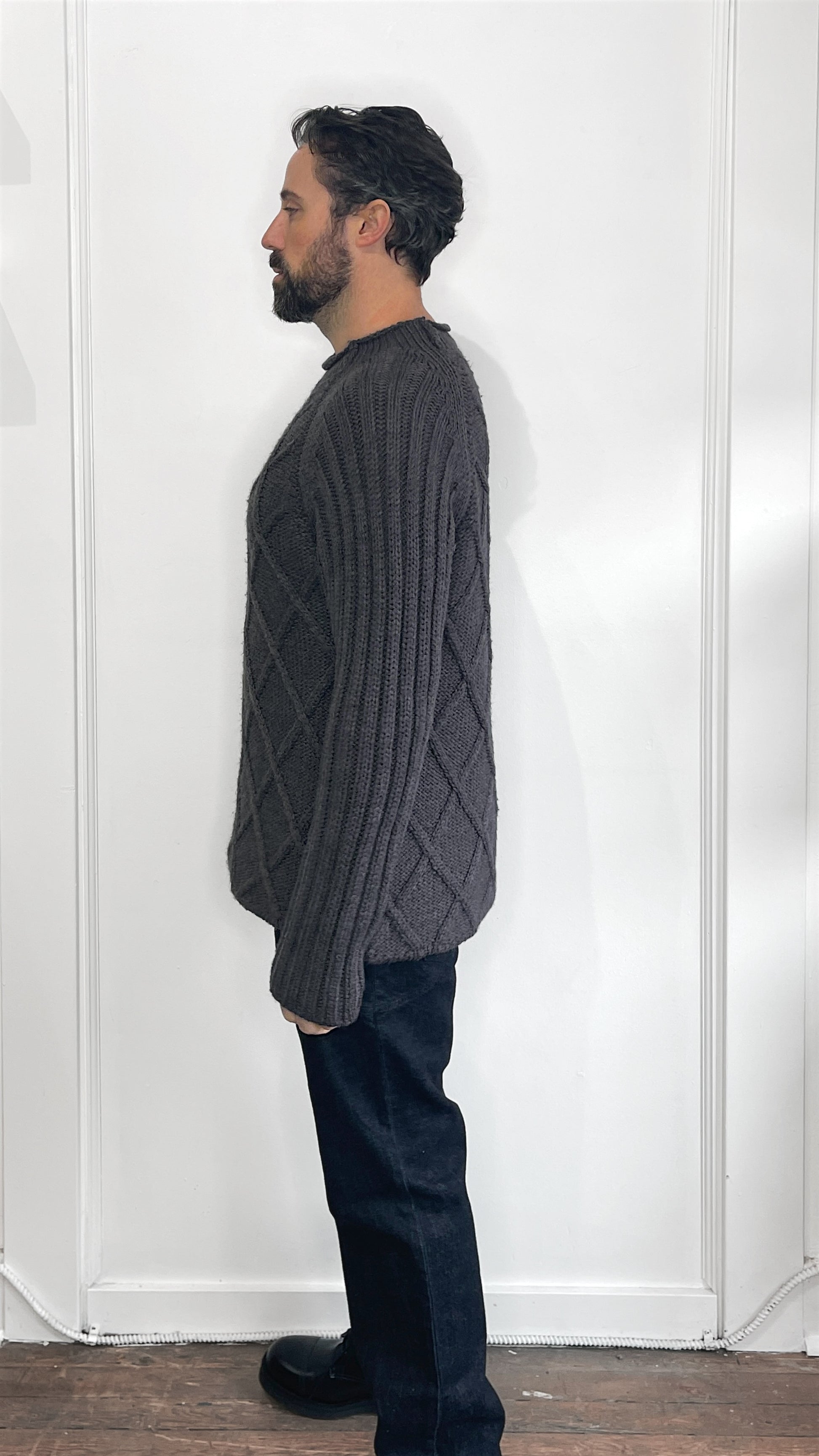 Item: Armani Collezioni Dark Grey Wool Alpaca Blend Diamond Knit Raglan Sleeve Mock Neck Sweater Extra Large