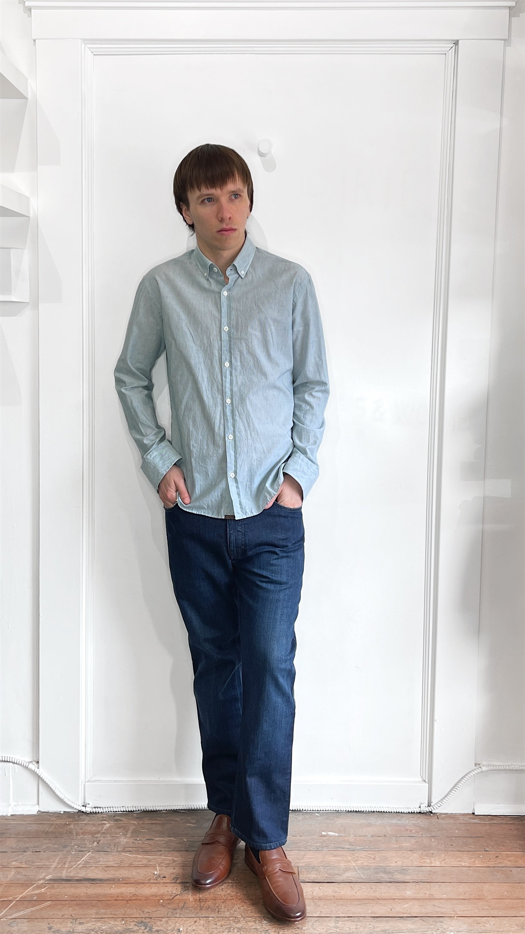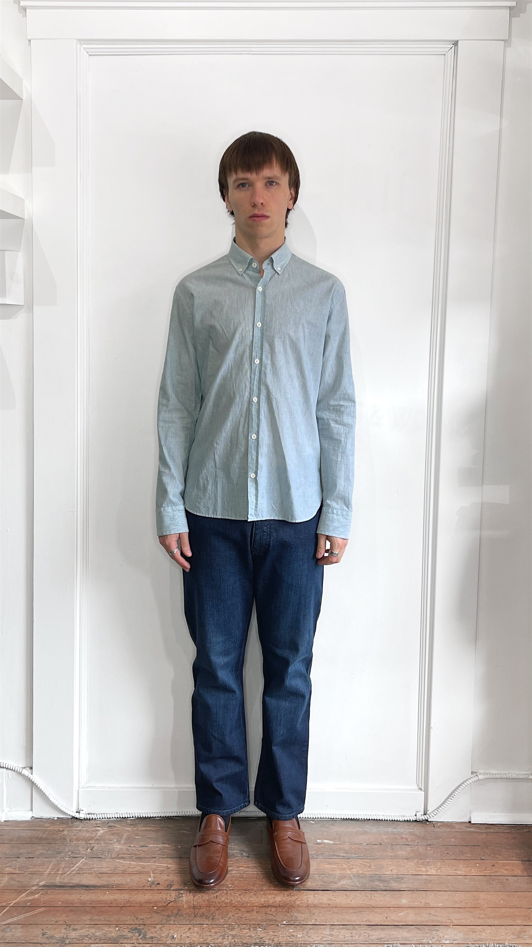 Billy Reid Teal & White Striped Murphy Button Up Shirt Small