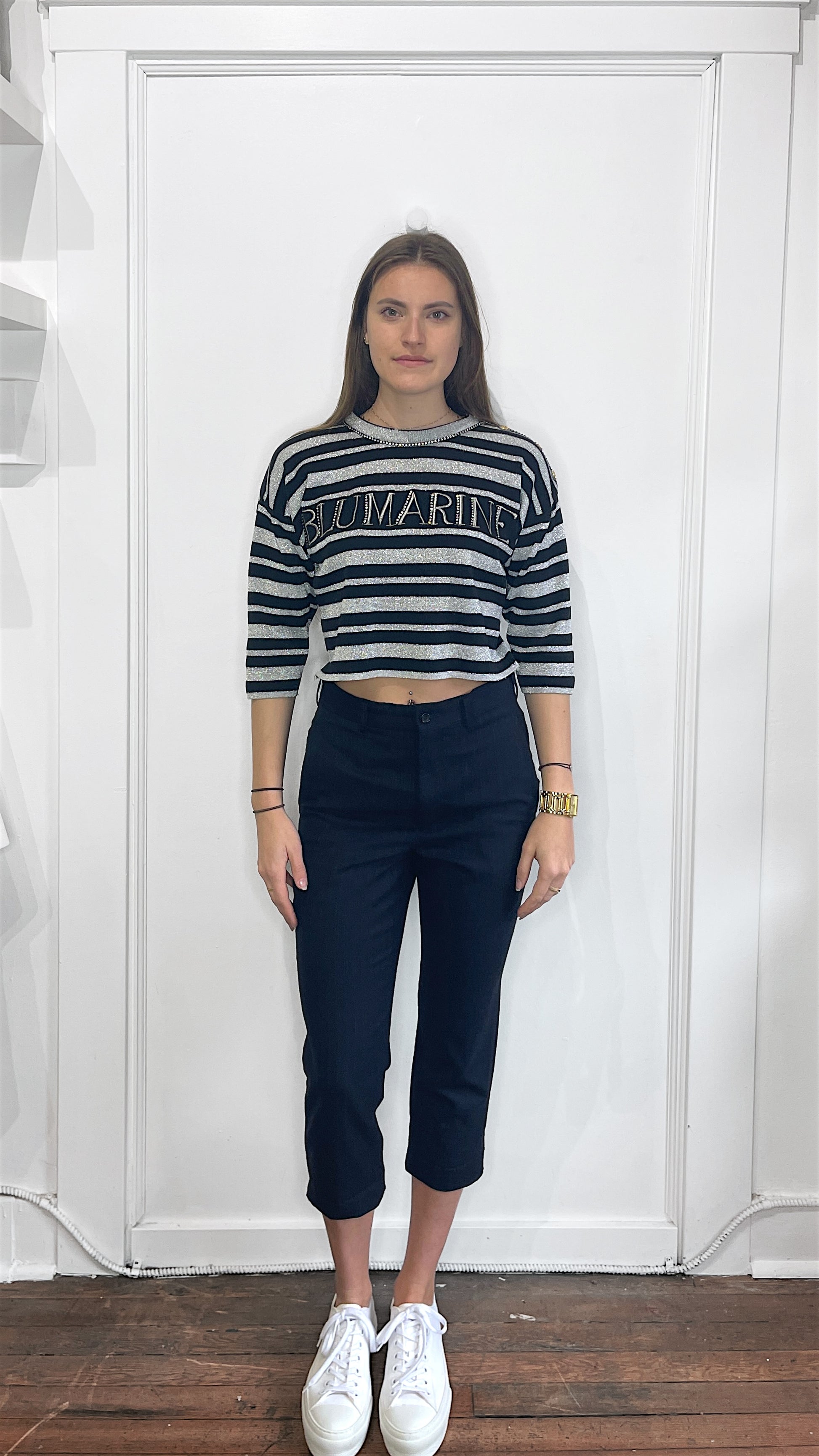 Blumarine Black & Silver Sparkly 3/4 Sleeve T-Shirt Large