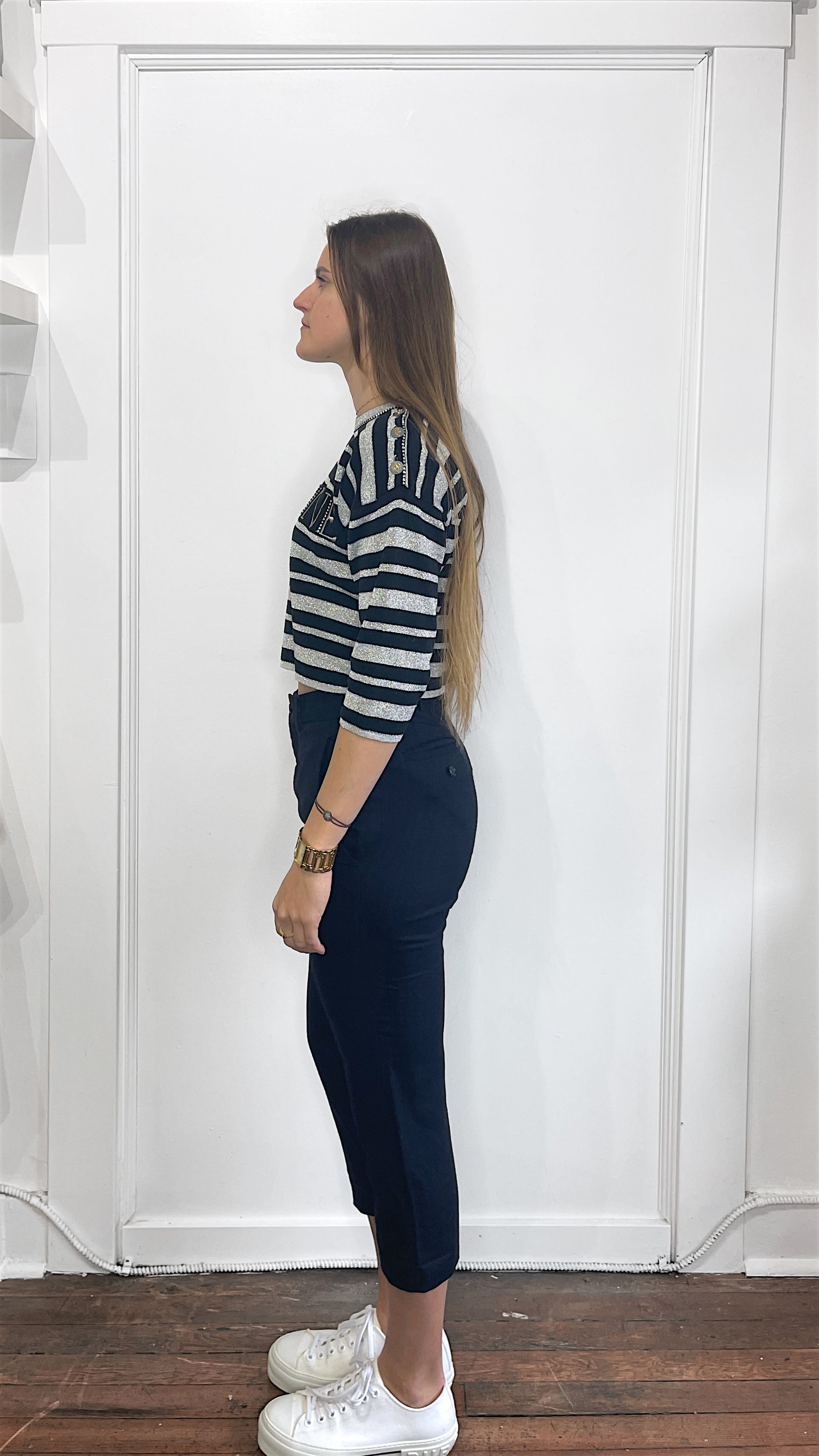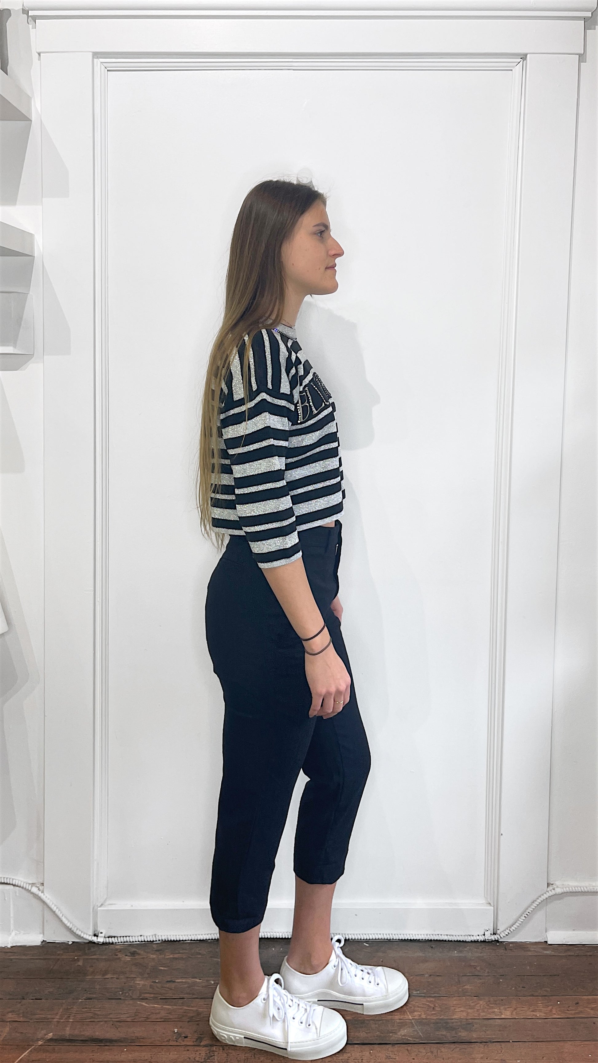 Item: Blumarine Black & Silver Sparkly 3/4 Sleeve Knit Shirt Large