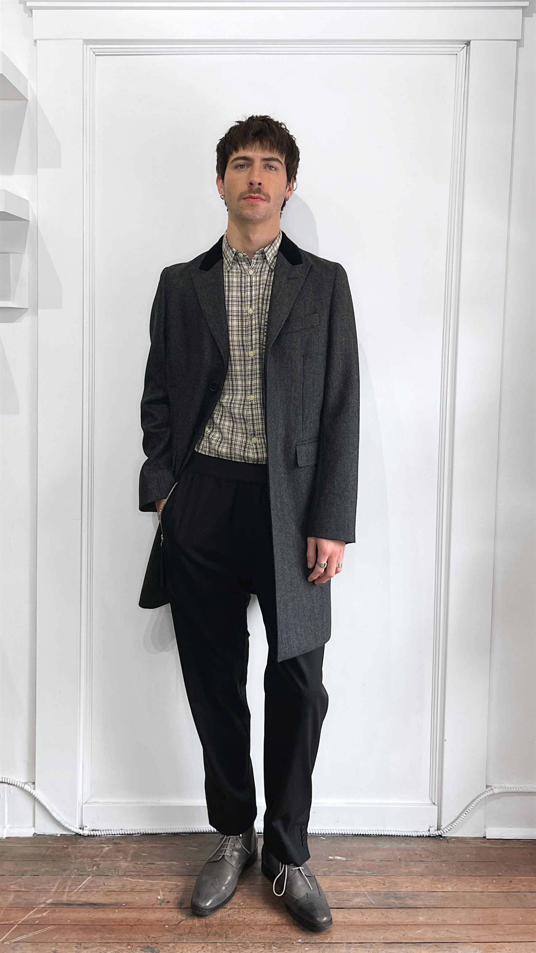 Item: Brooks Brothers Dark Grey Herringbone Wool Cashmere Blend Overcoat W/ Peak Lapel & Velvet Collar 38R