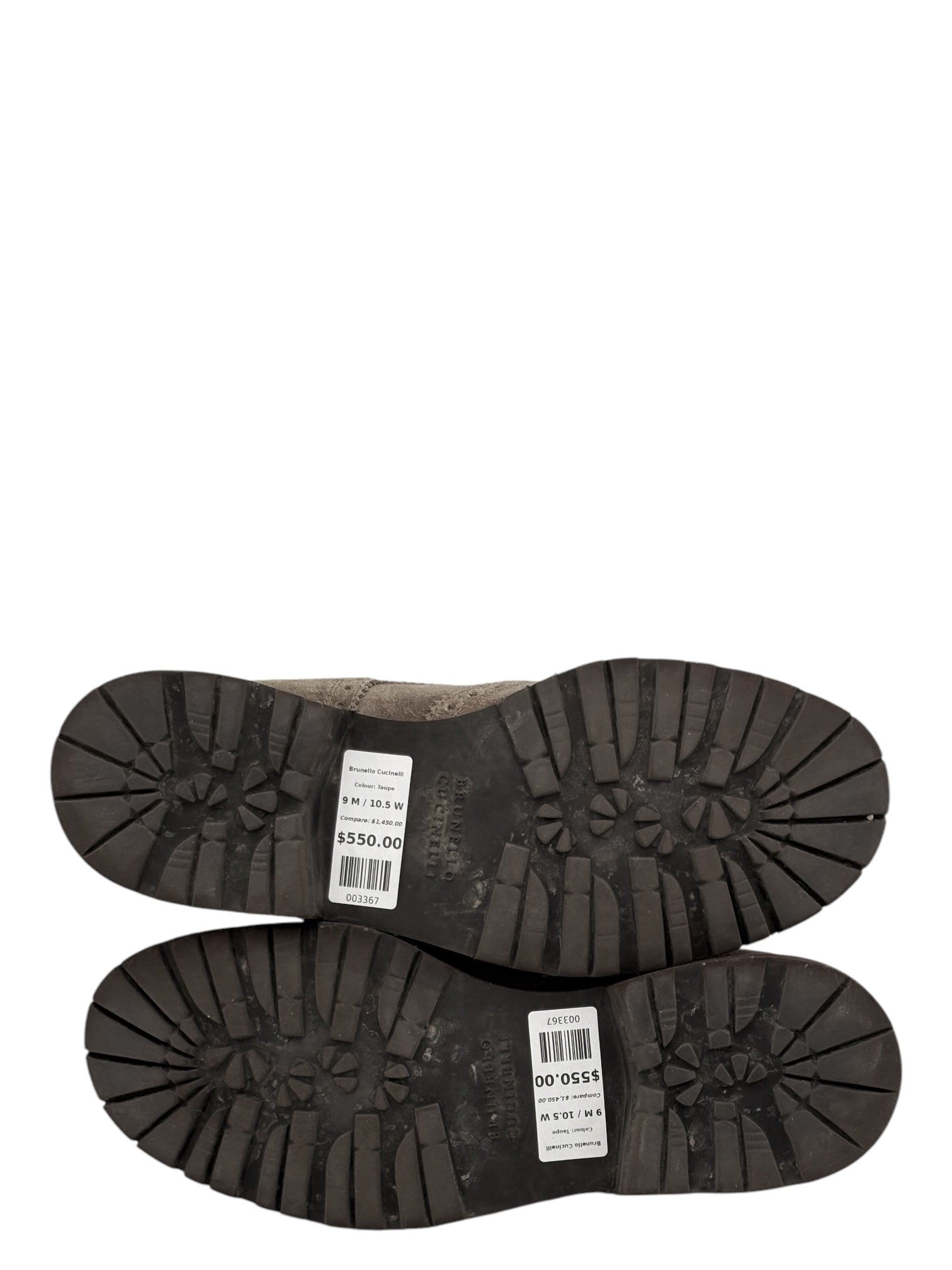 Brunello Cucinelli Taupe Suede Wingtip Brogue Lug Sole Dress Shoes 9 M / 10.5 W - Made in Italy