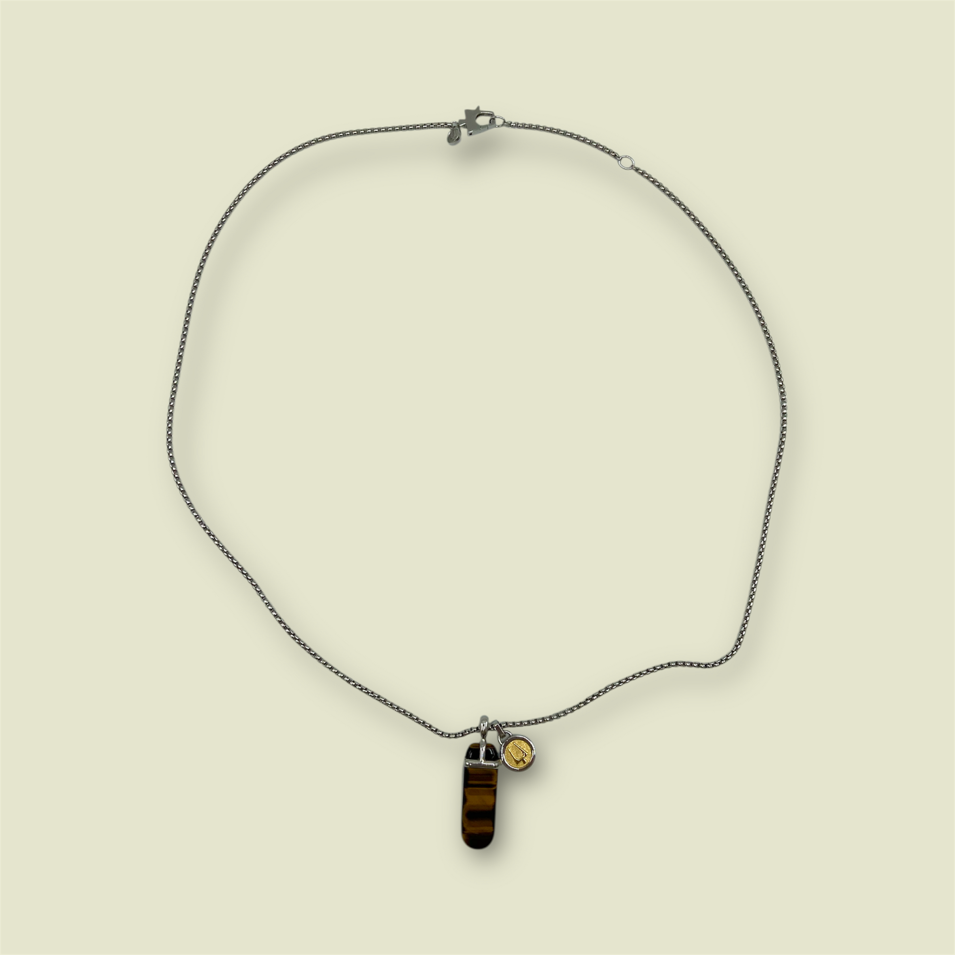 Bulova Silver & Amber Tigers Eye Necklace OS - Made in China
