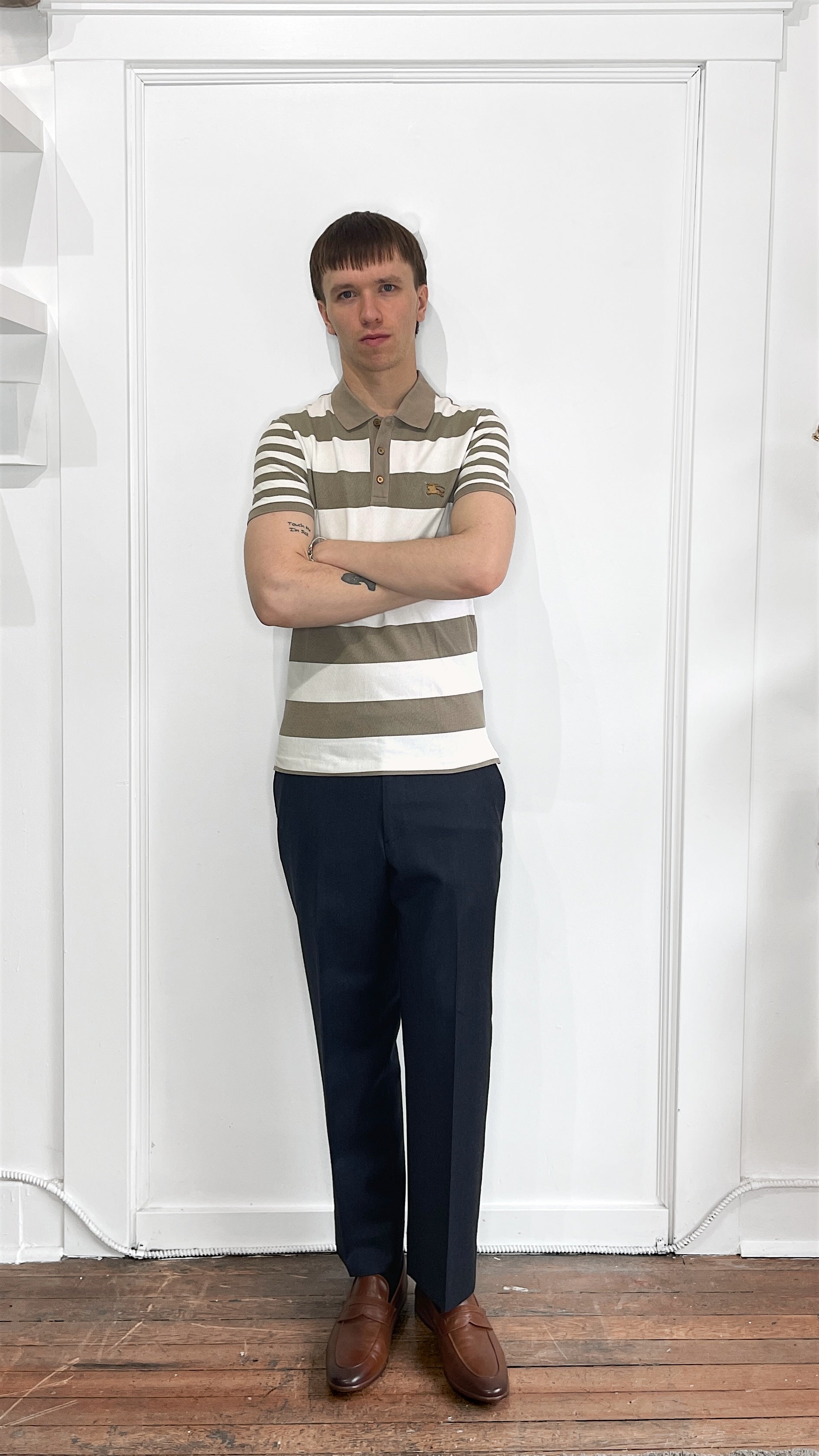Burberry Brit Light Brown & White Multi Stripe SS Polo Shirt Small