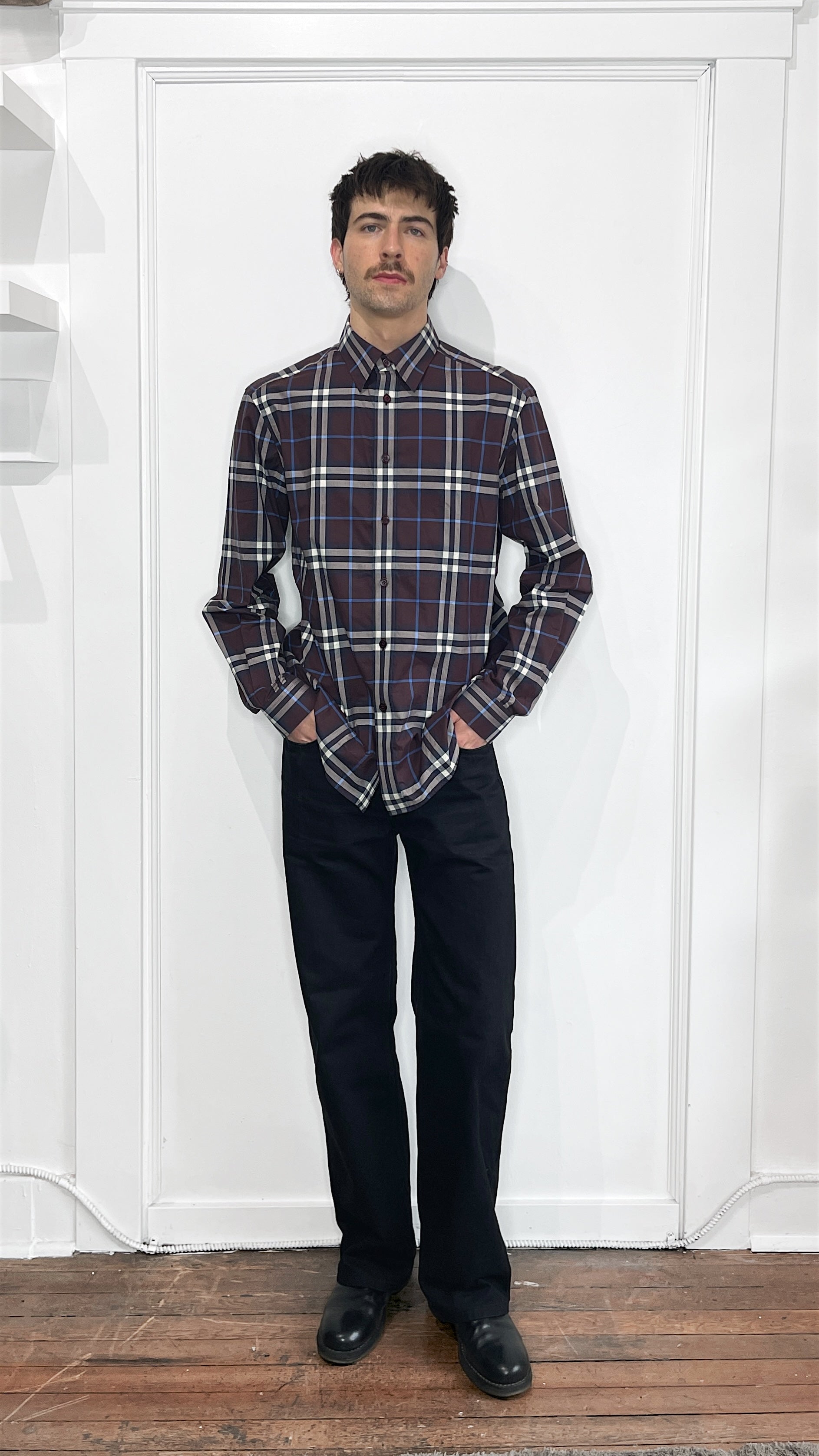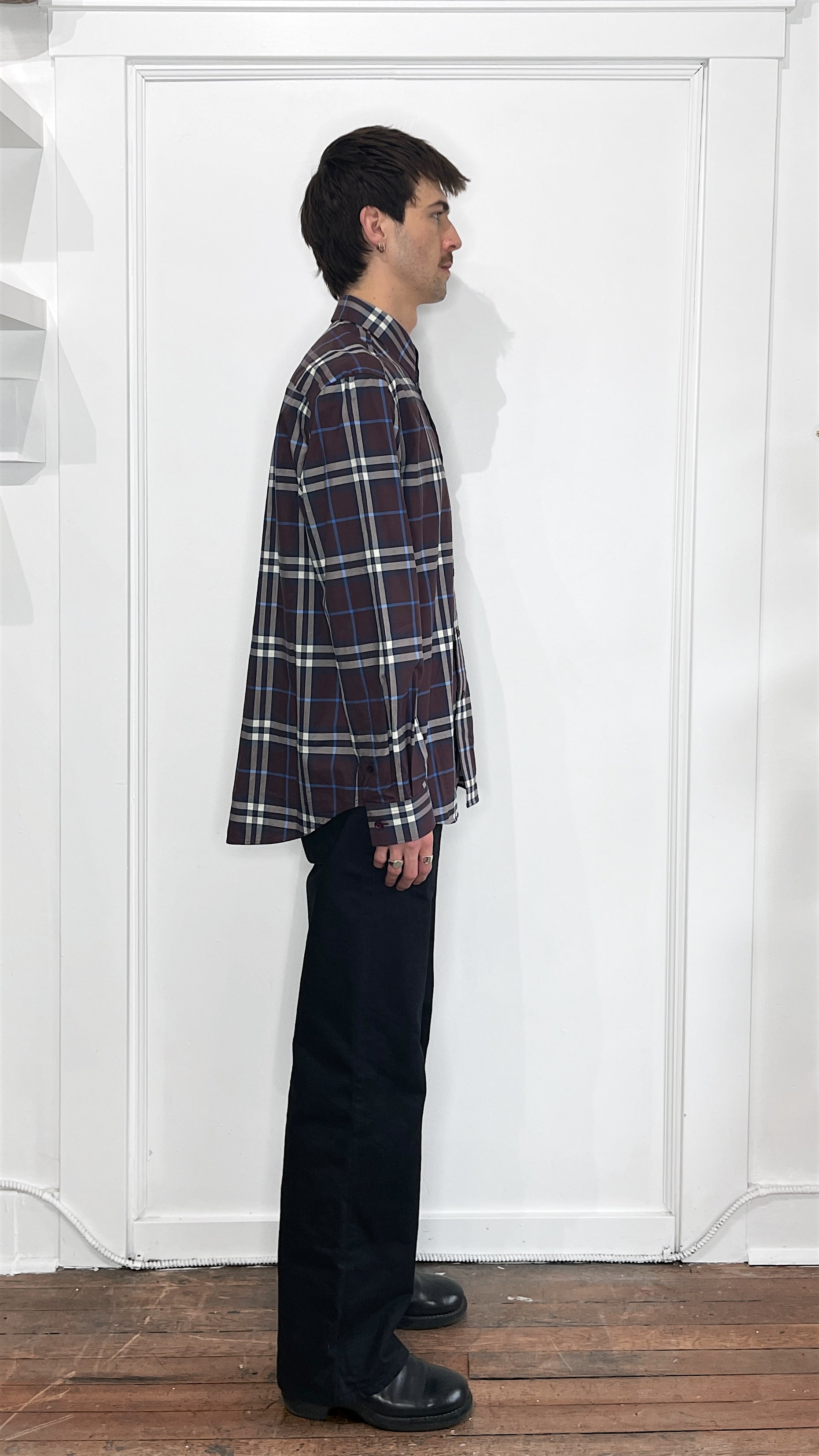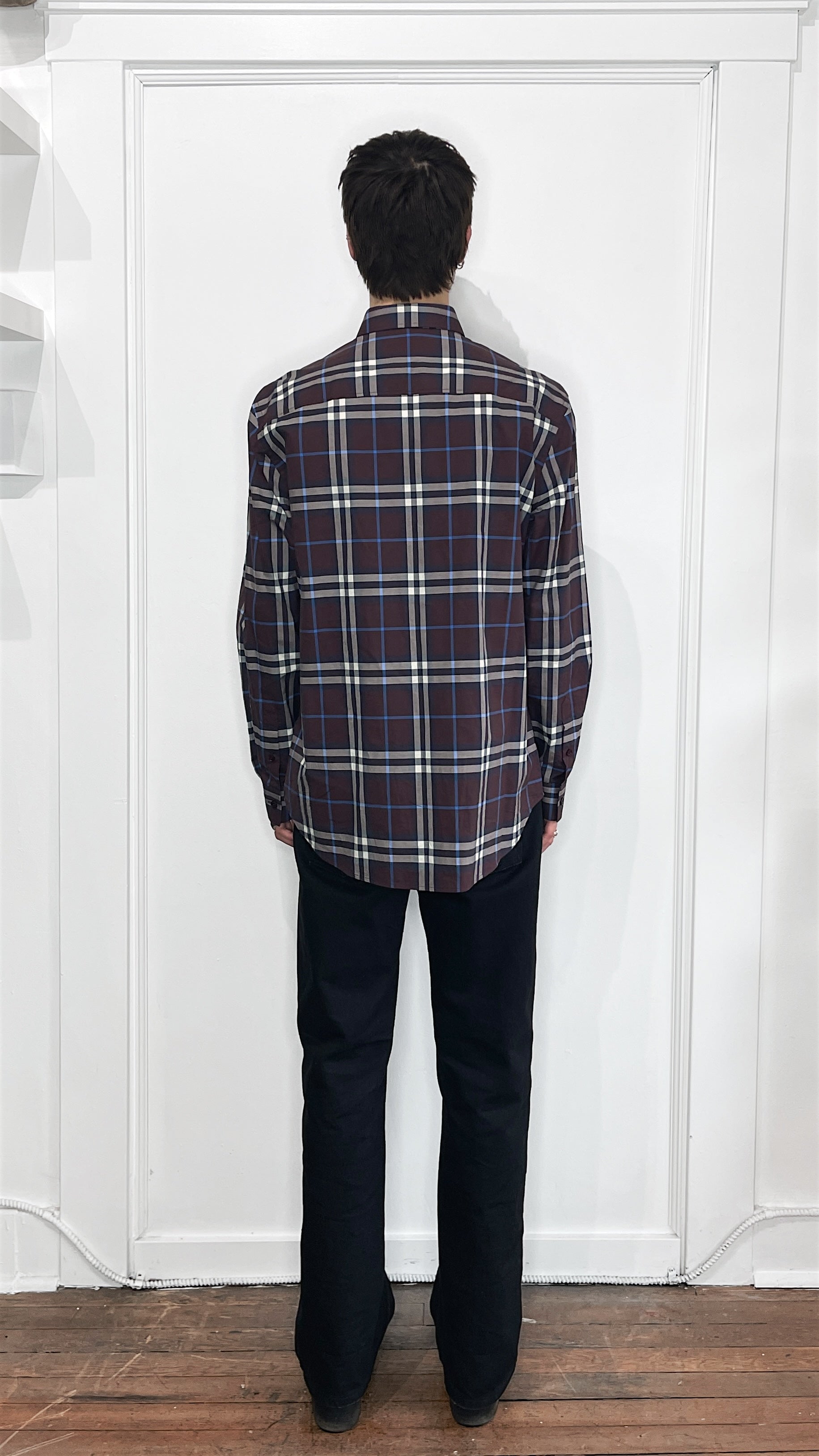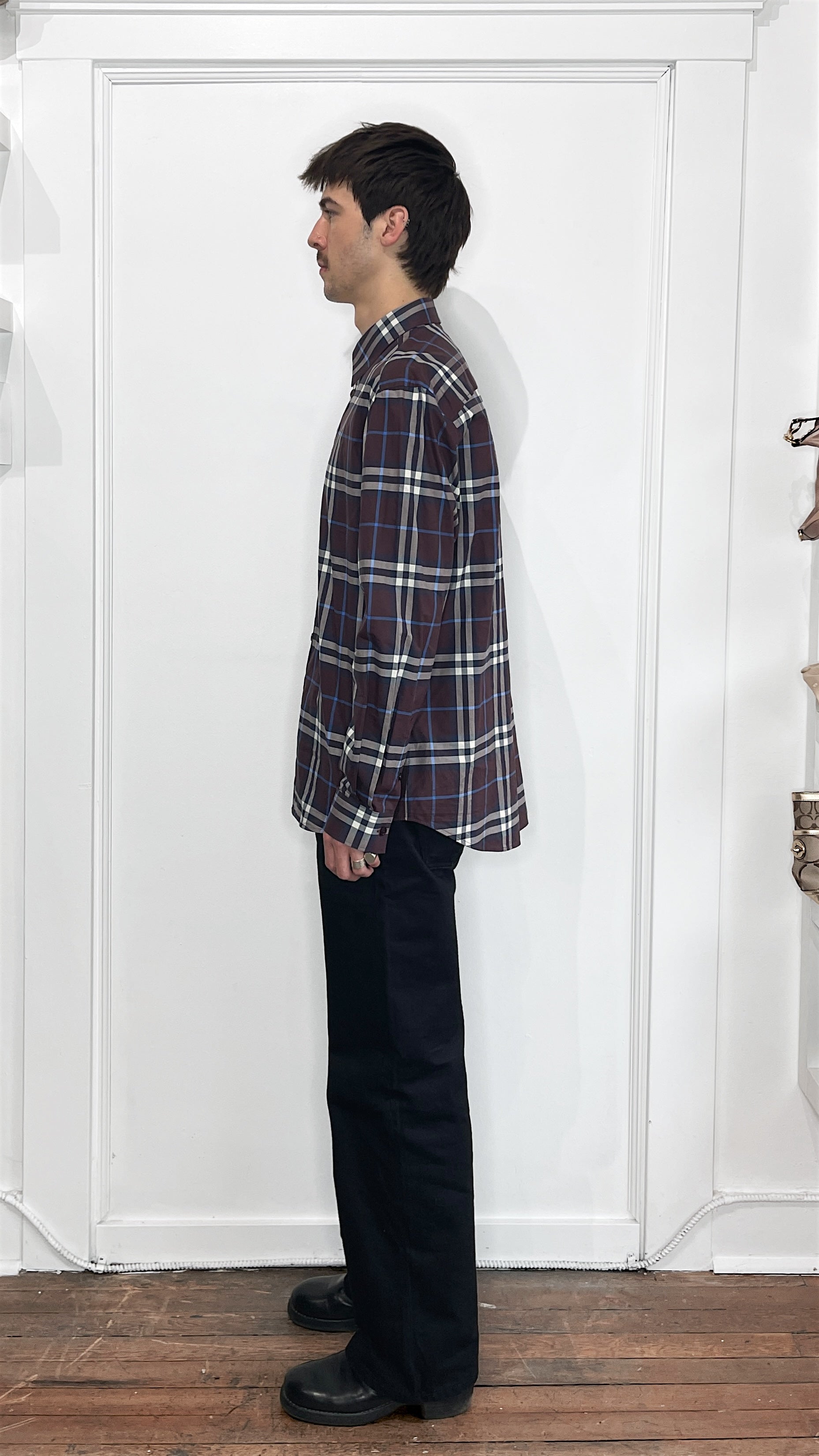 Item: Burberry Maroon & Blue Plaid Button Up Shirt Large