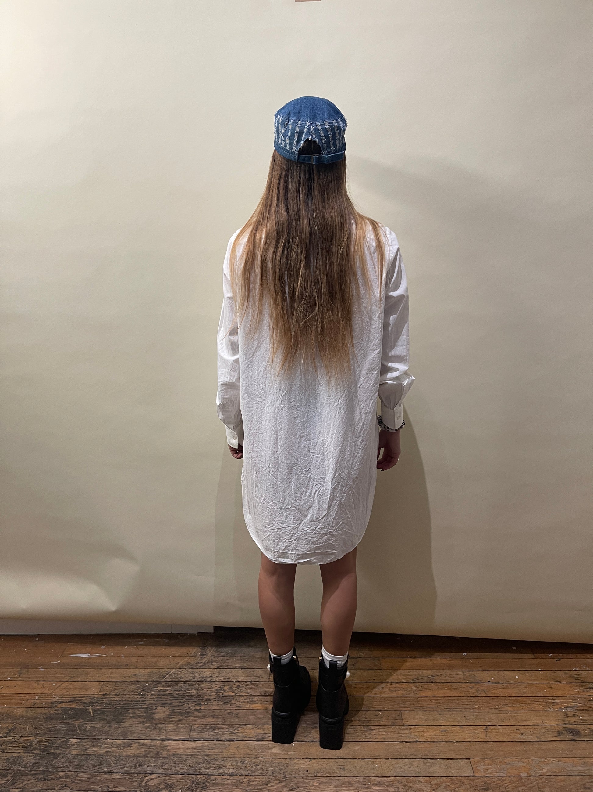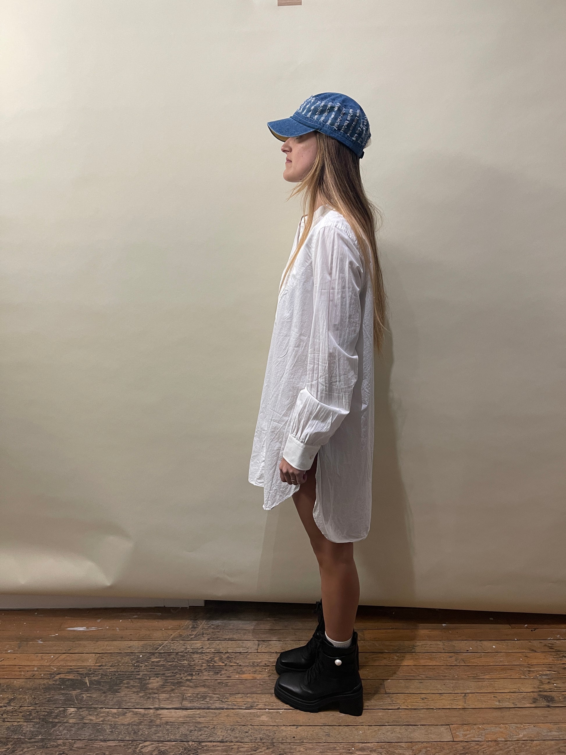 Burberry White Cotton Tuxedo Style Long Sleeve Button Up Shirt Dress 14 / Large - Made in Tunisia