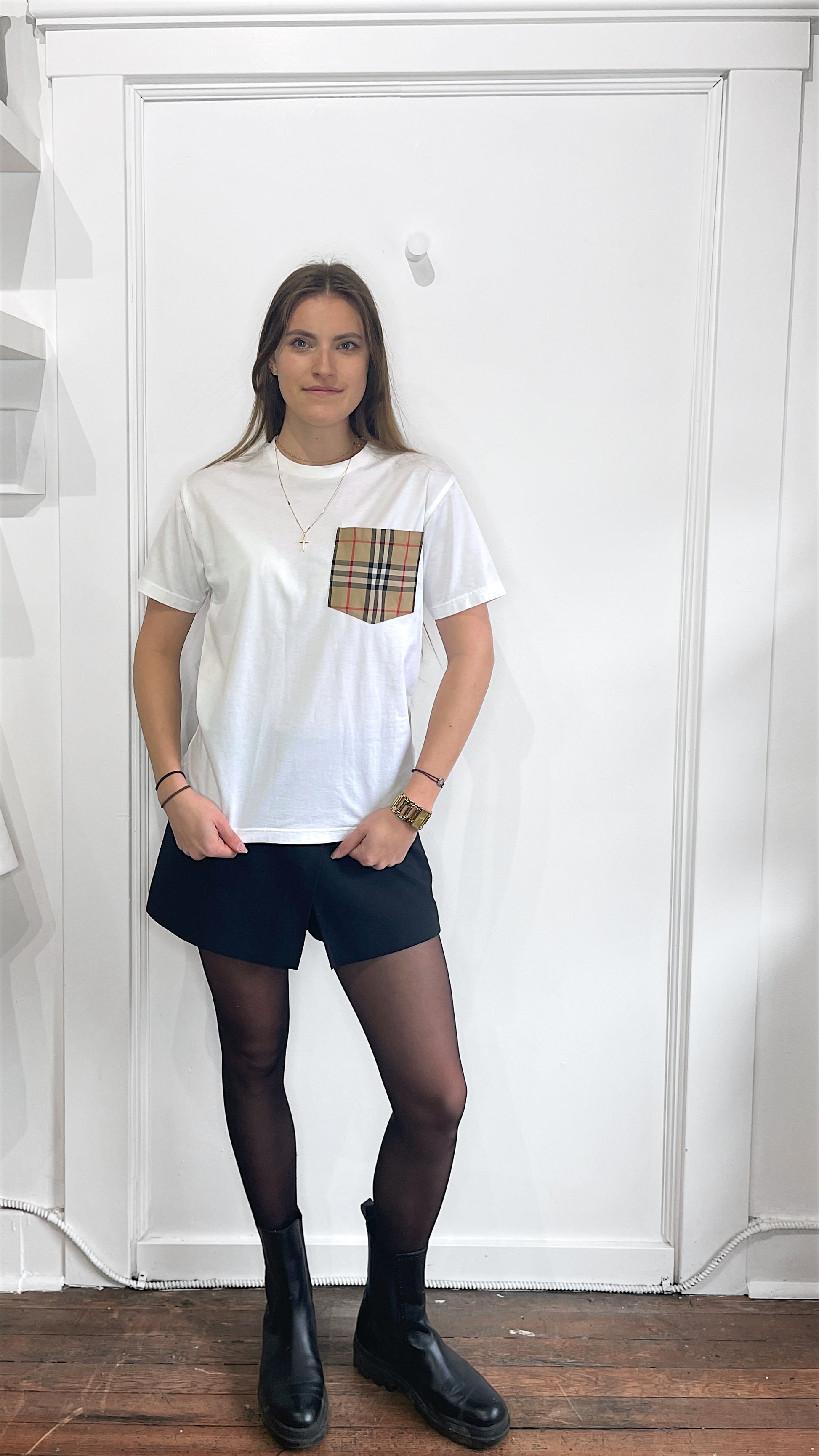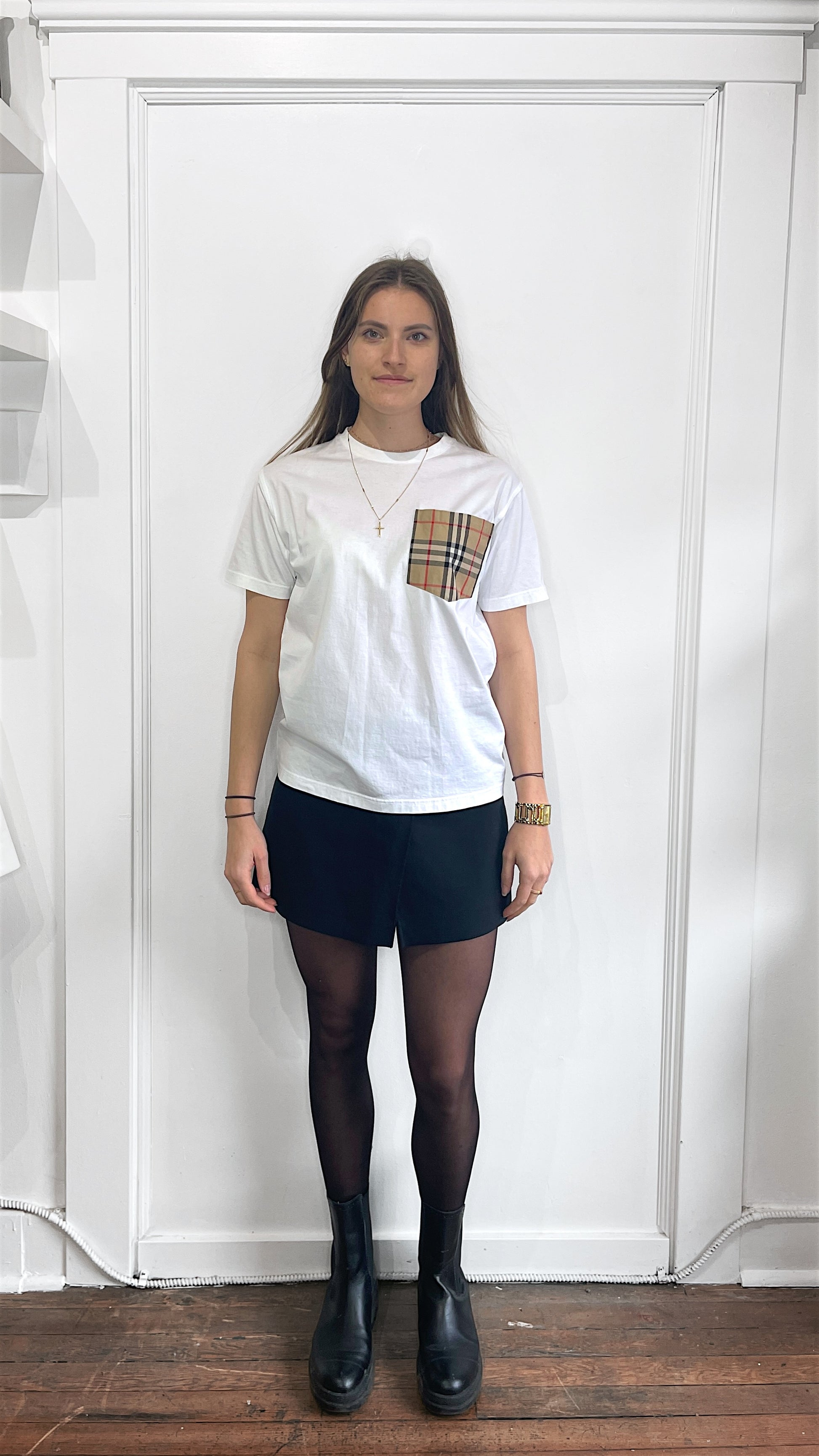 Item: Burberry White Nova Check Pocket T-Shirt XXS