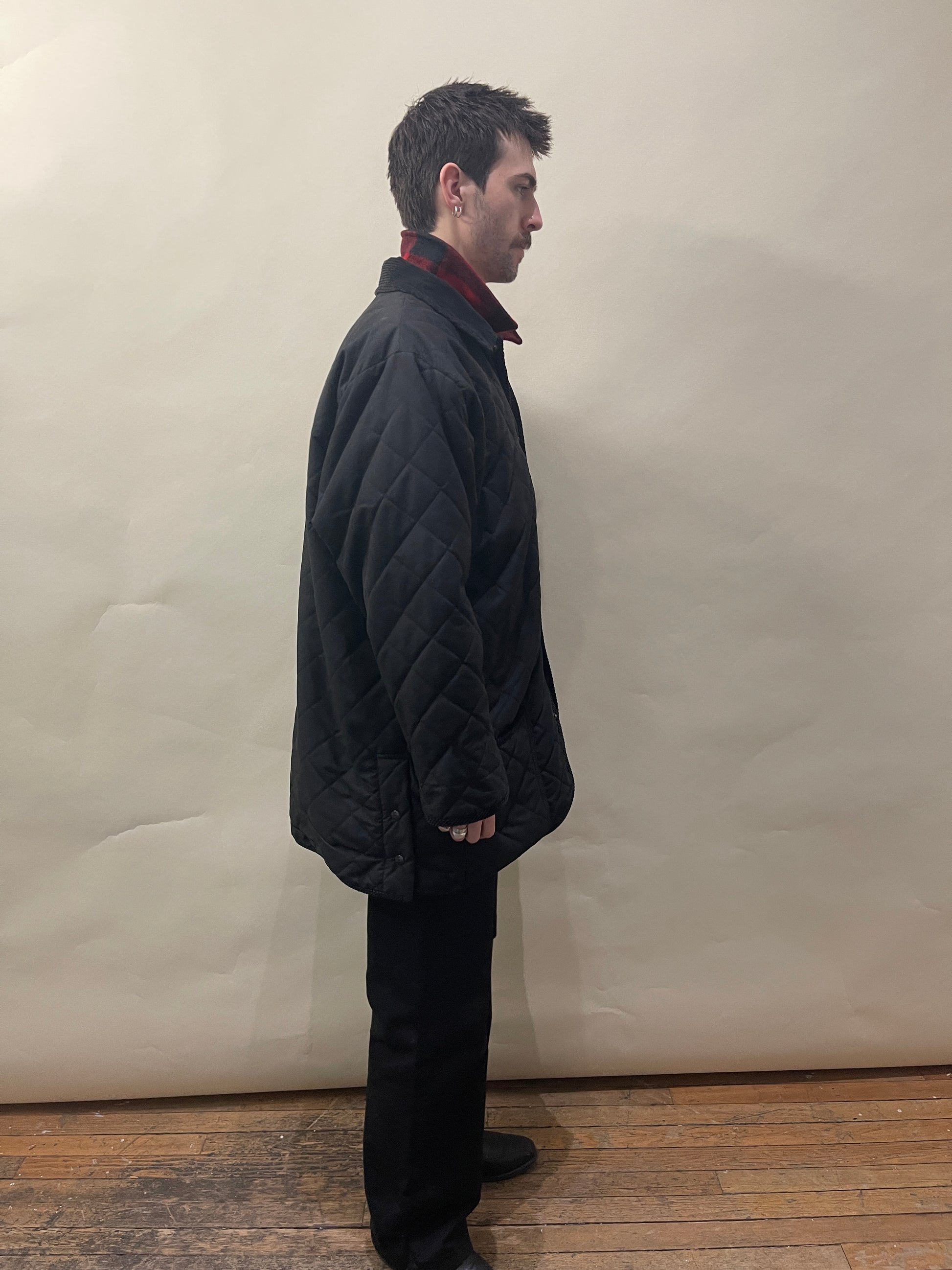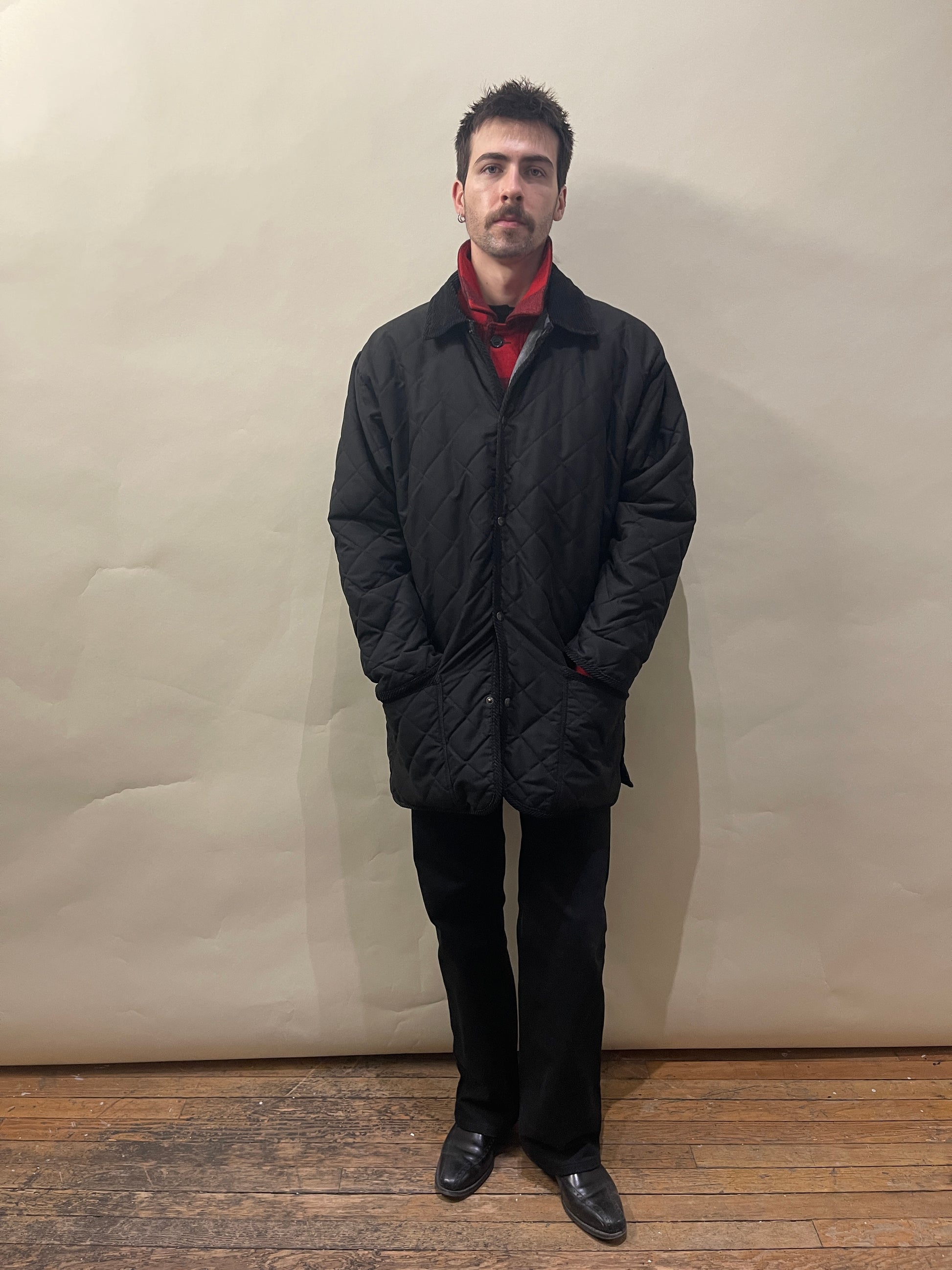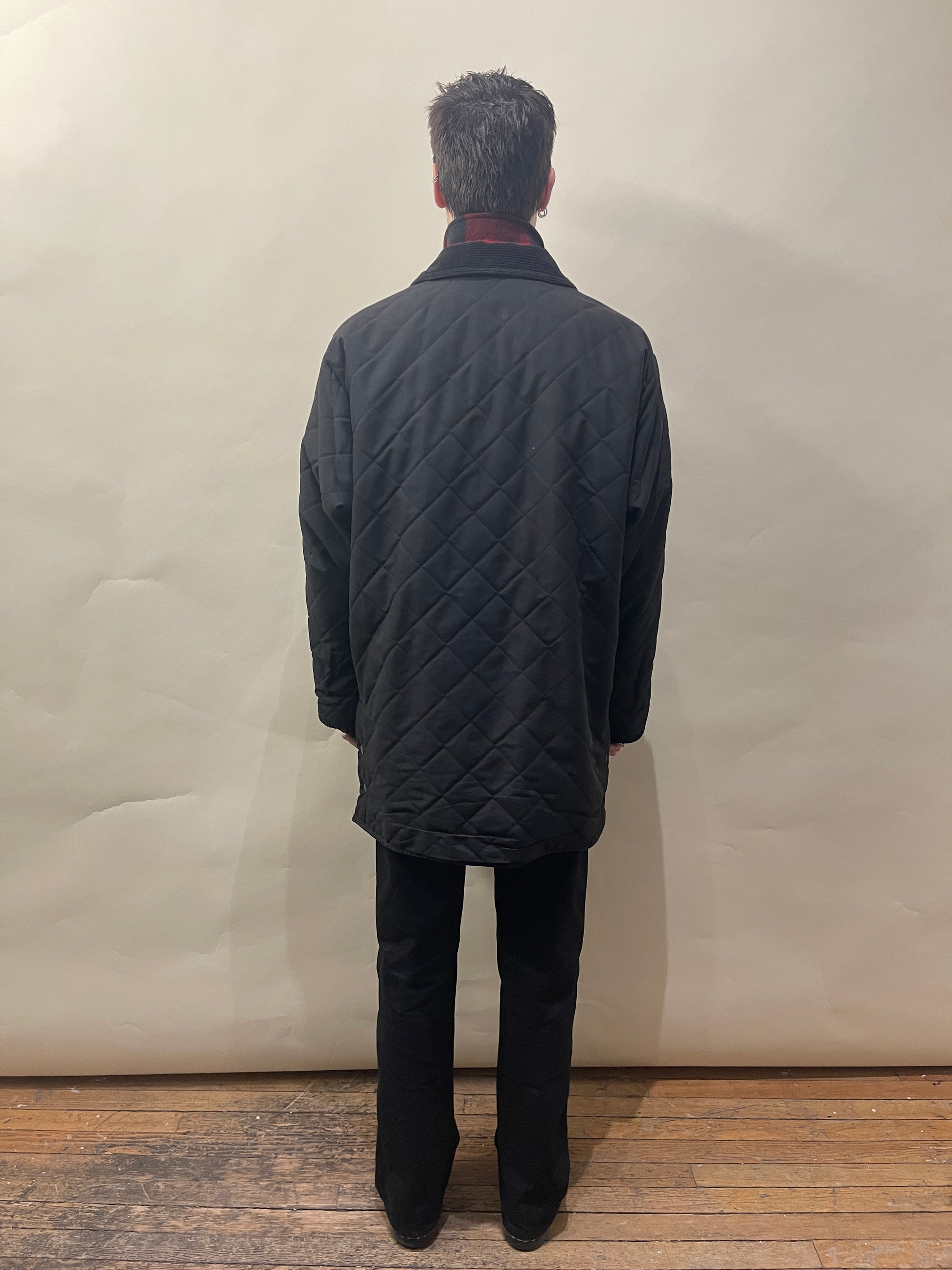 Burberrys' Black Wool Lined Quilted Corduroy Piped Long Collared Jacket Large - Made in England