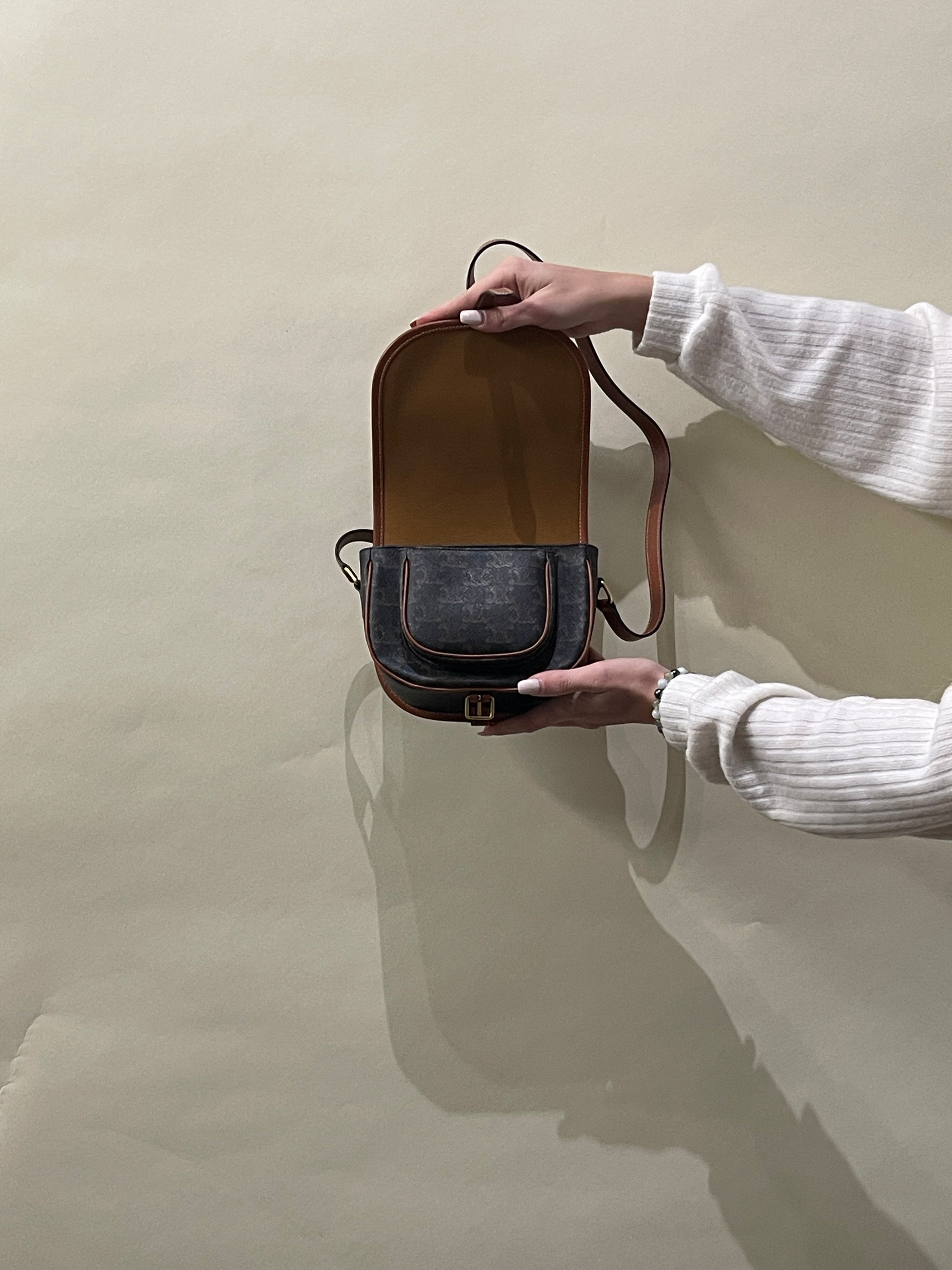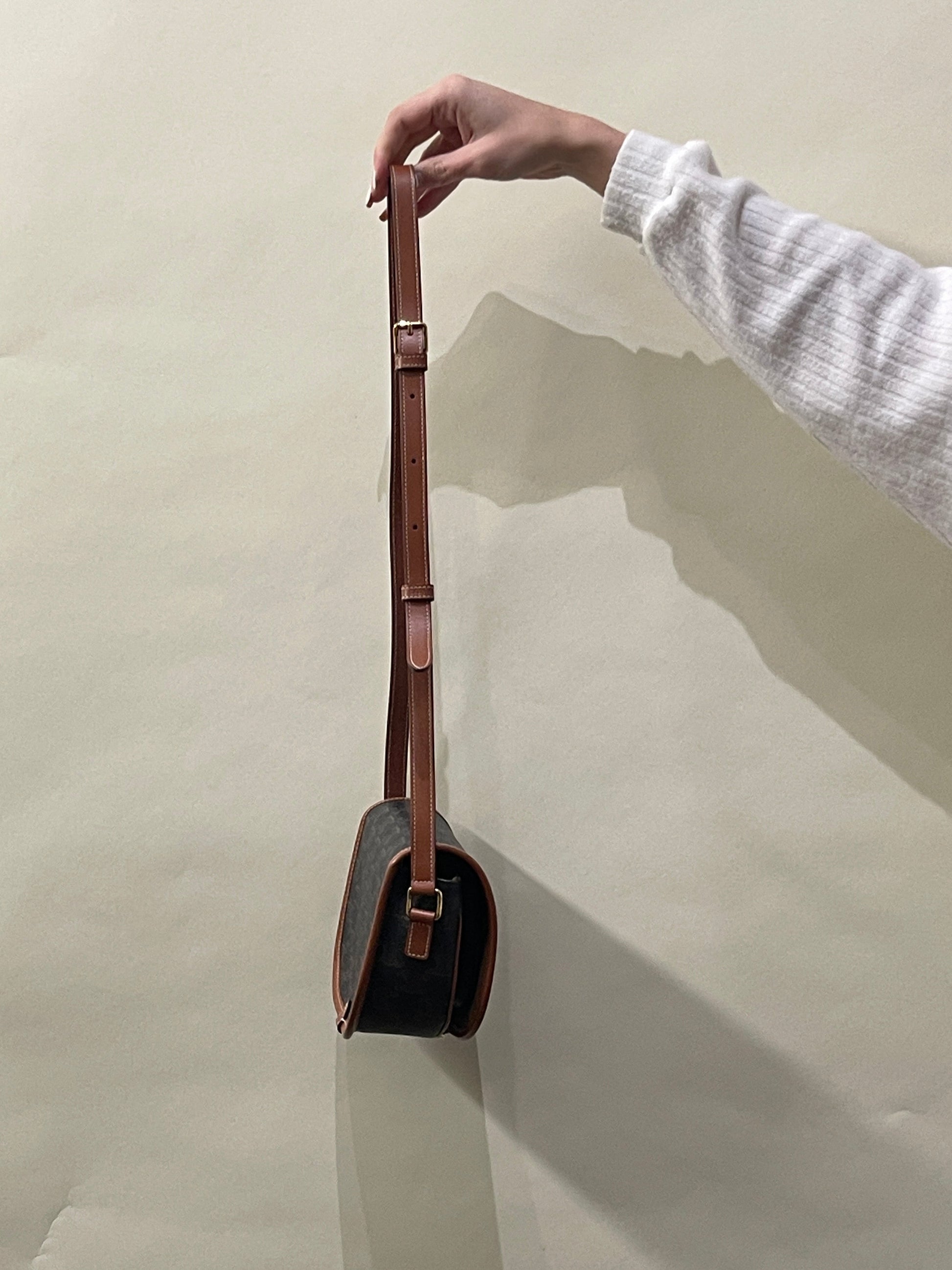 Celine Light & Dark Brown Triomphe Coated Canvas Folco Crossbody Bag