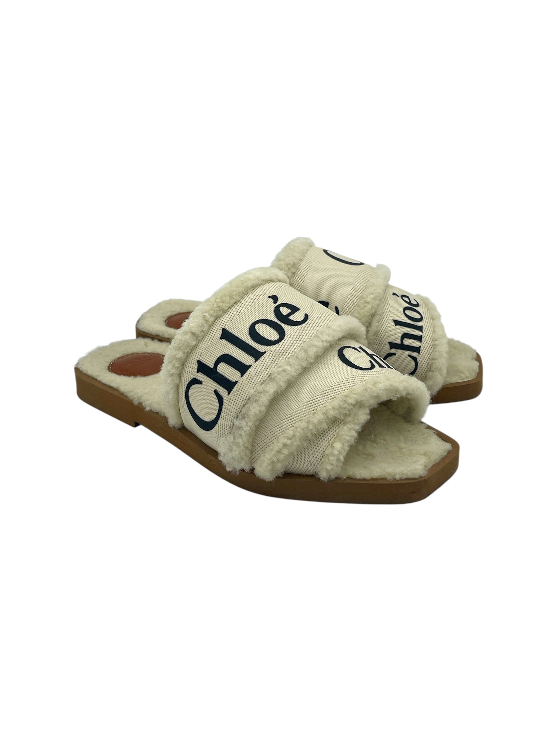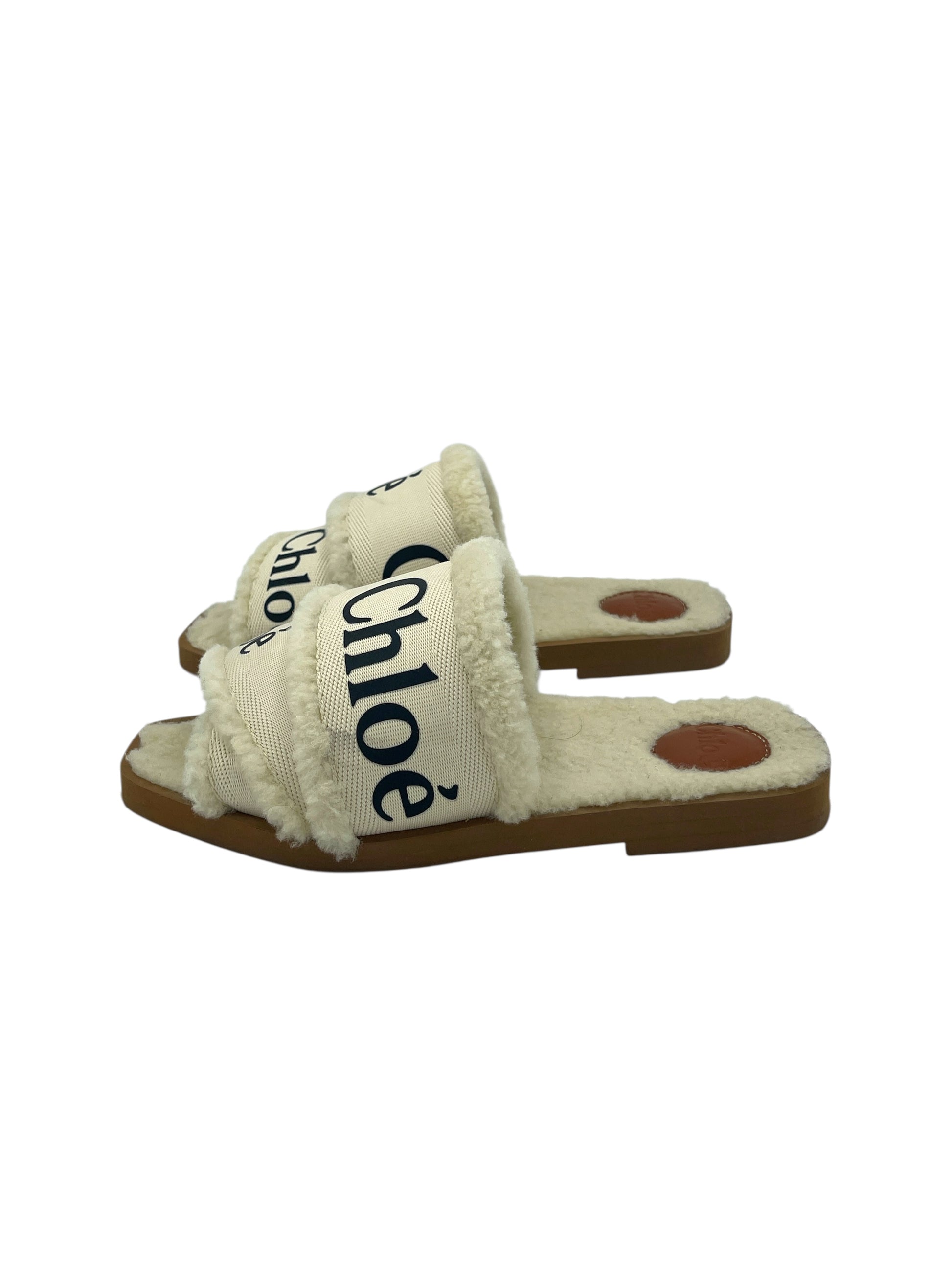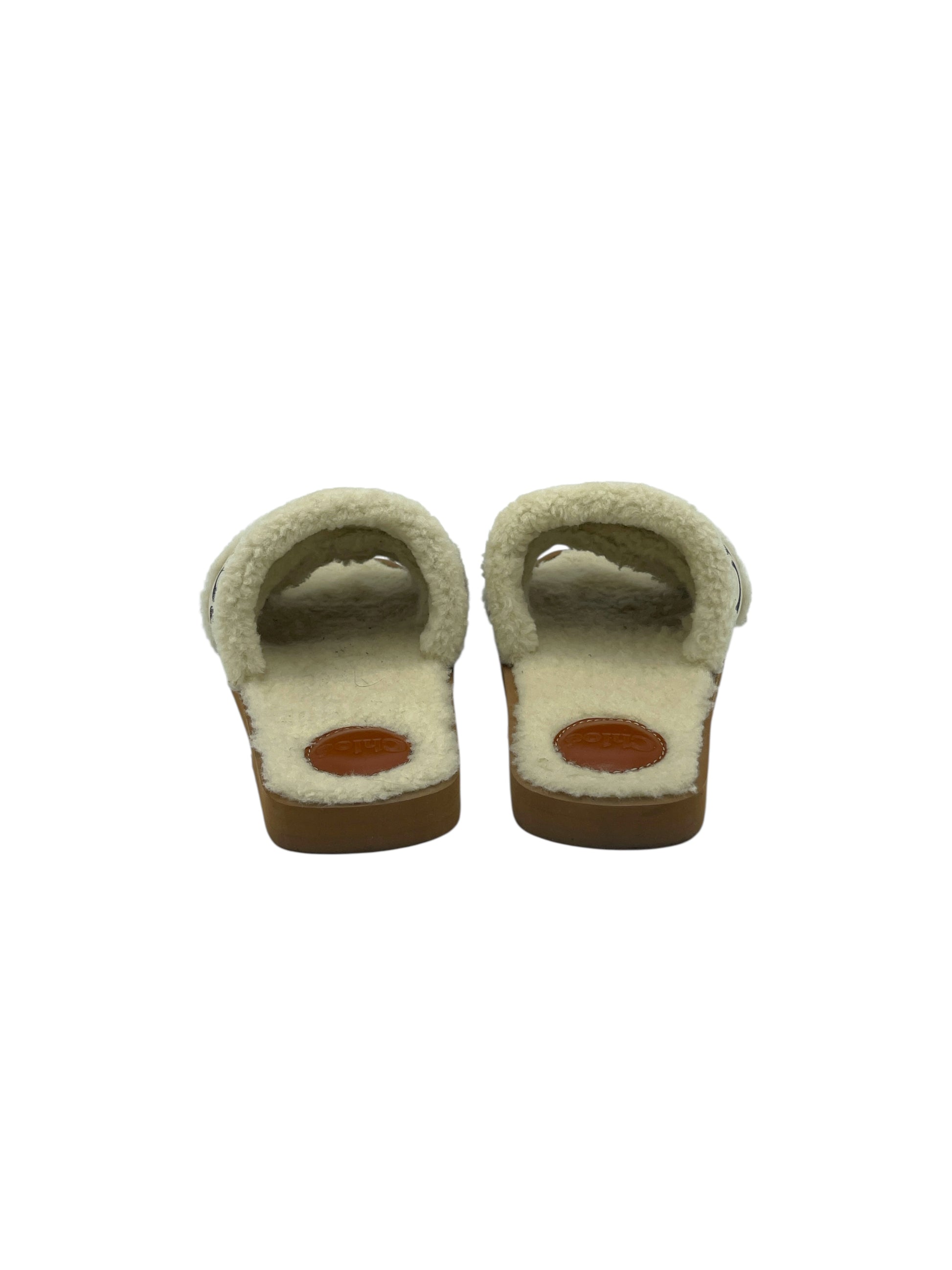 Chloé Cream & Brown Shearling Flat Slide 6 M / 7.5 W