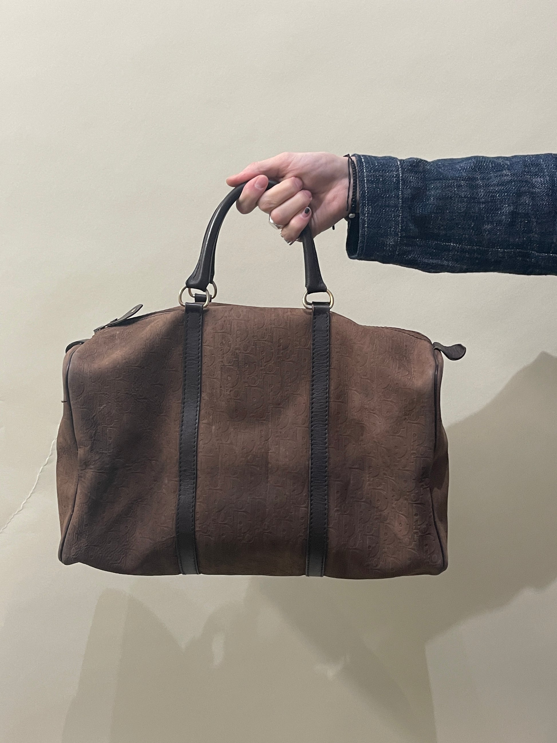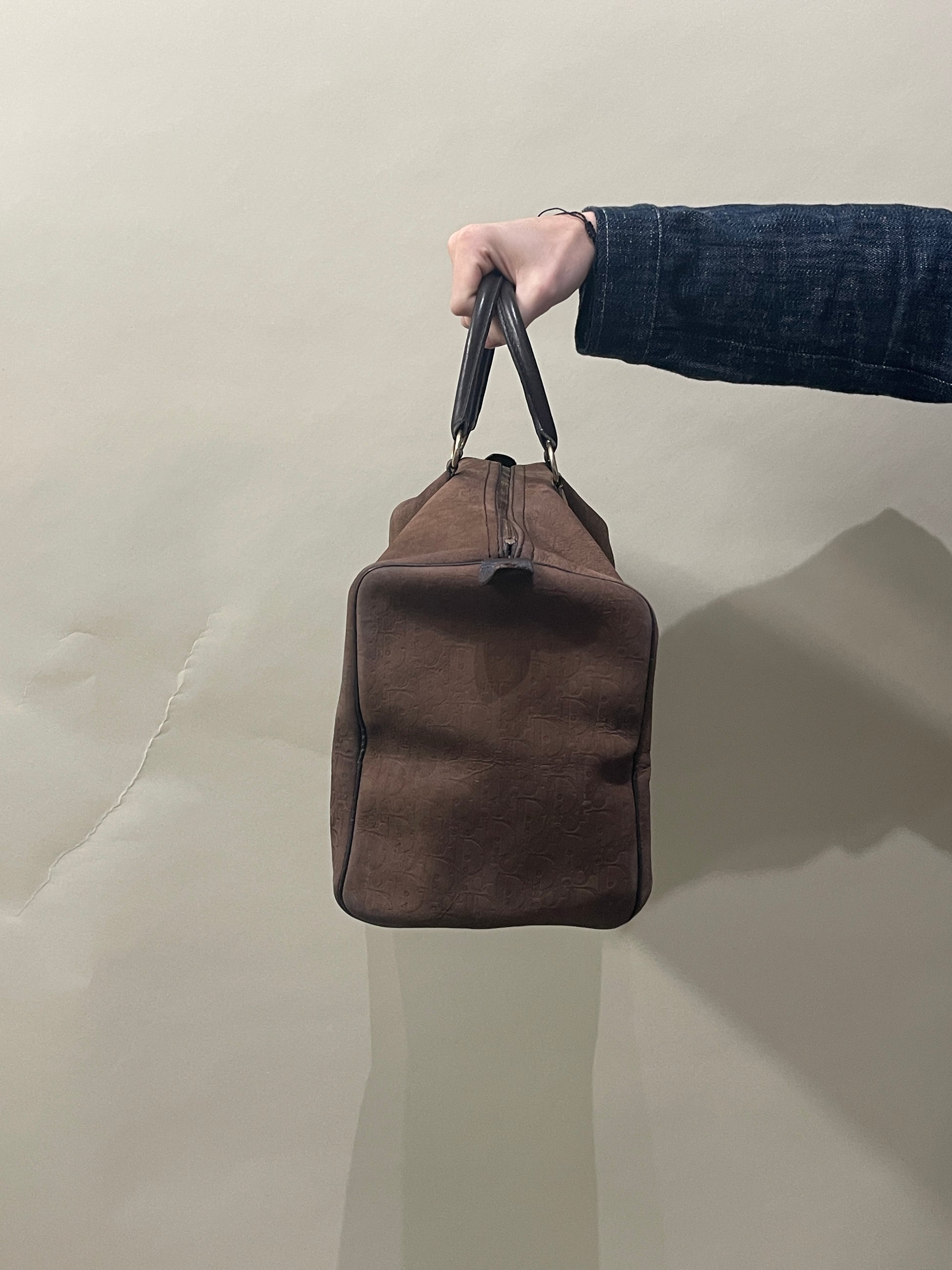 Christian Dior Vintage Brown Suede Embossed Monogram Trotter Boston Bag OS - Made in France