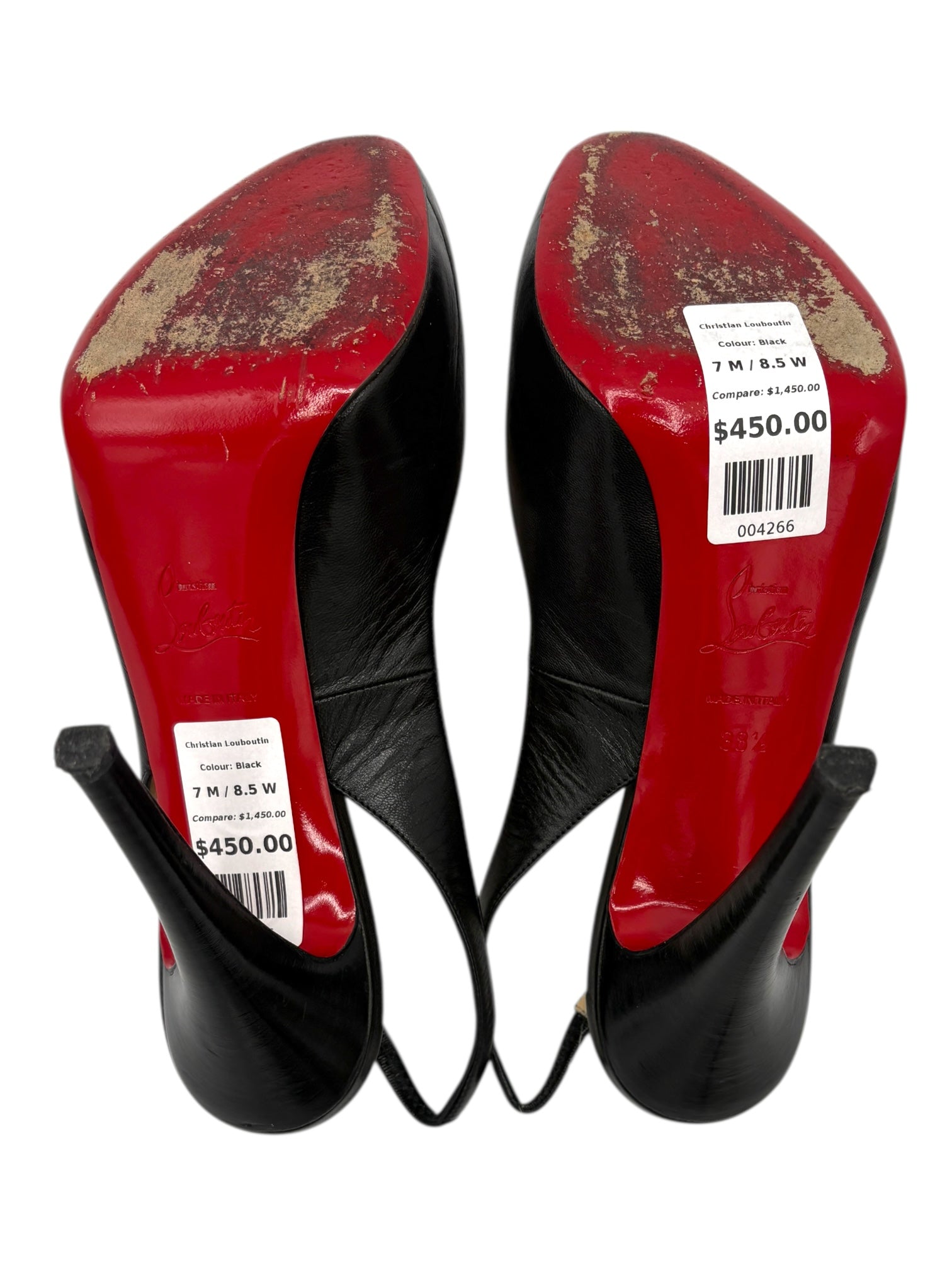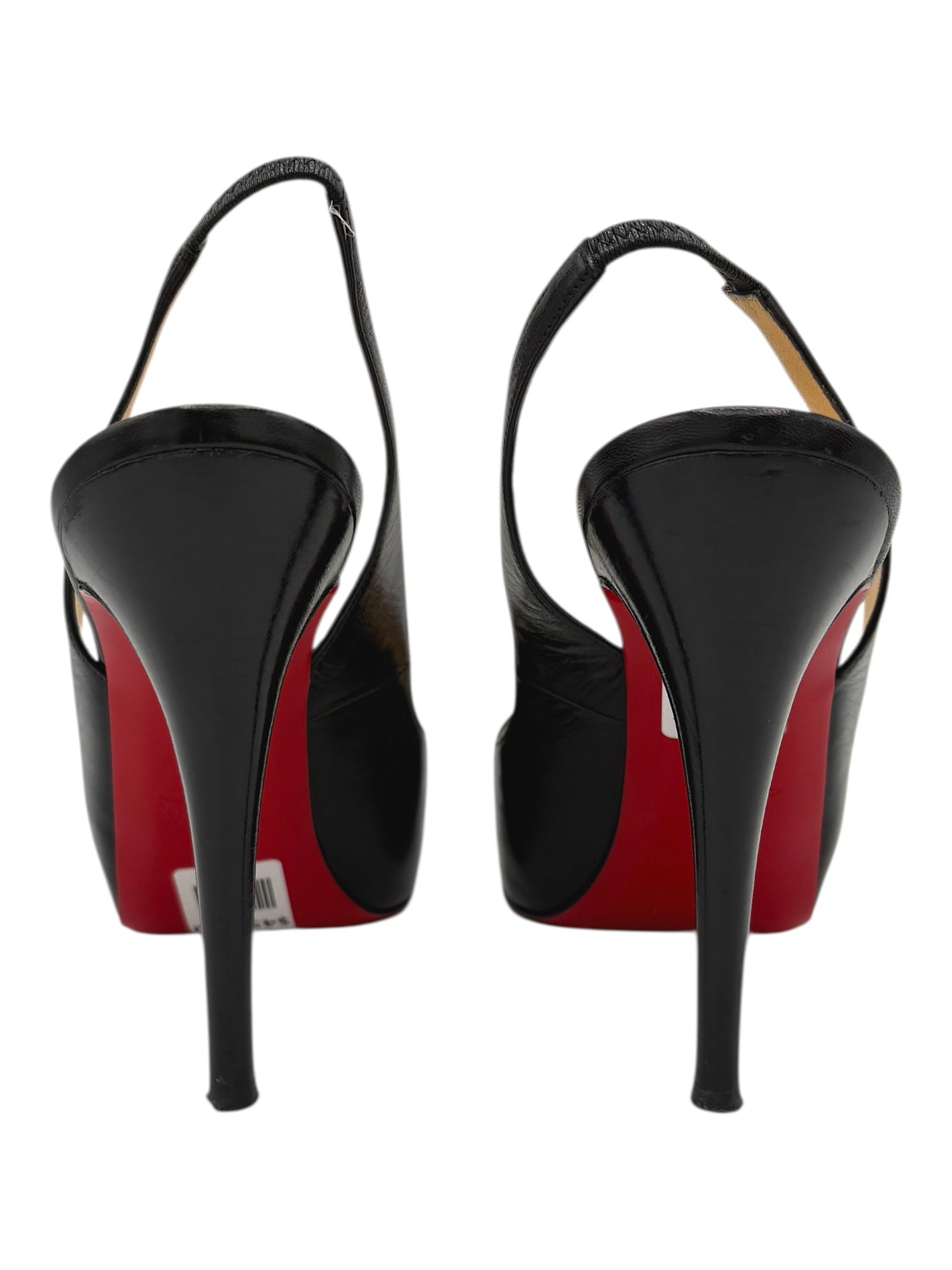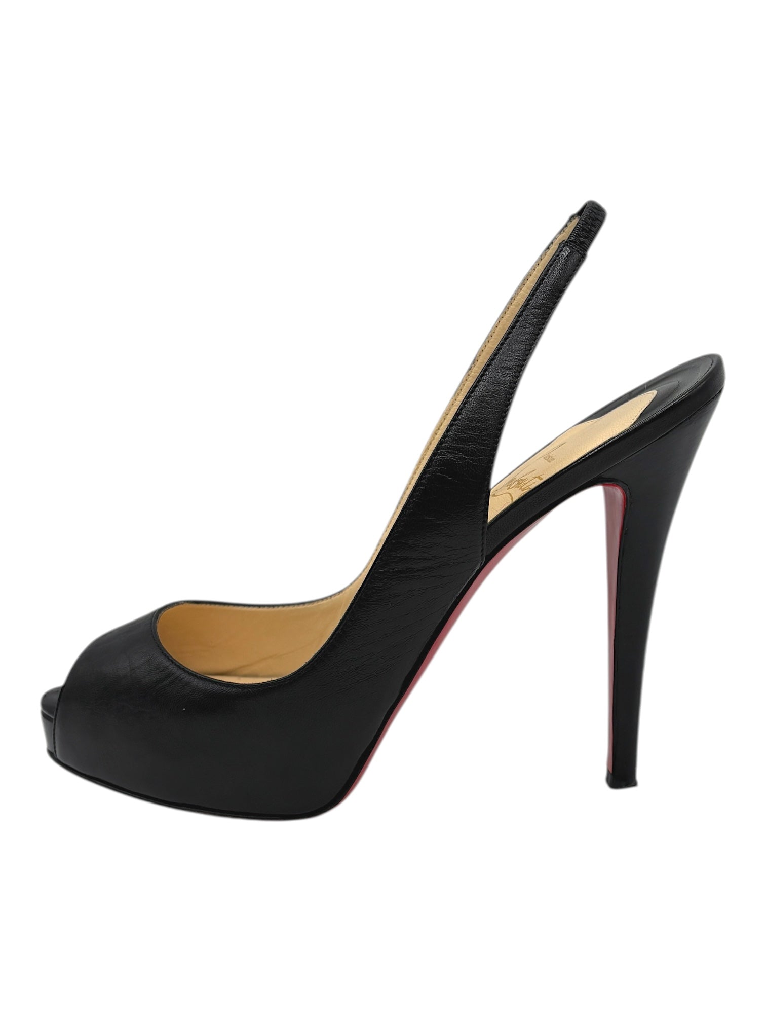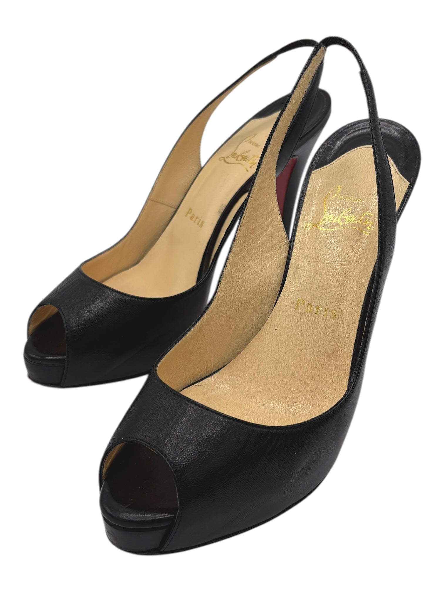 Christian Louboutin Black Leather No Prive Peep Toe Slingback Pumps 7 M / 8.5 W