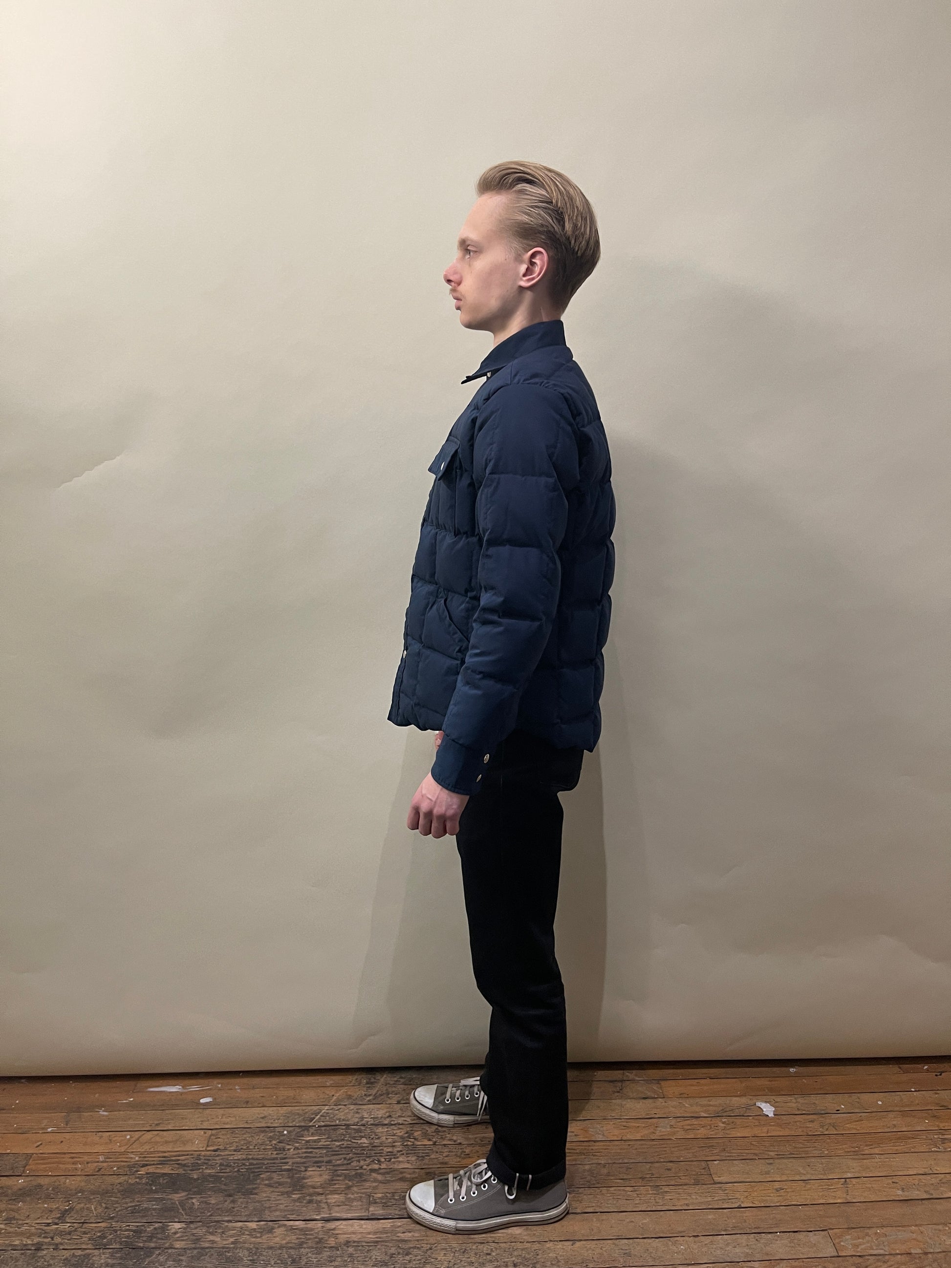 Crescent Down Works Navy Blue Down Filled Shirt Large - Made in USA