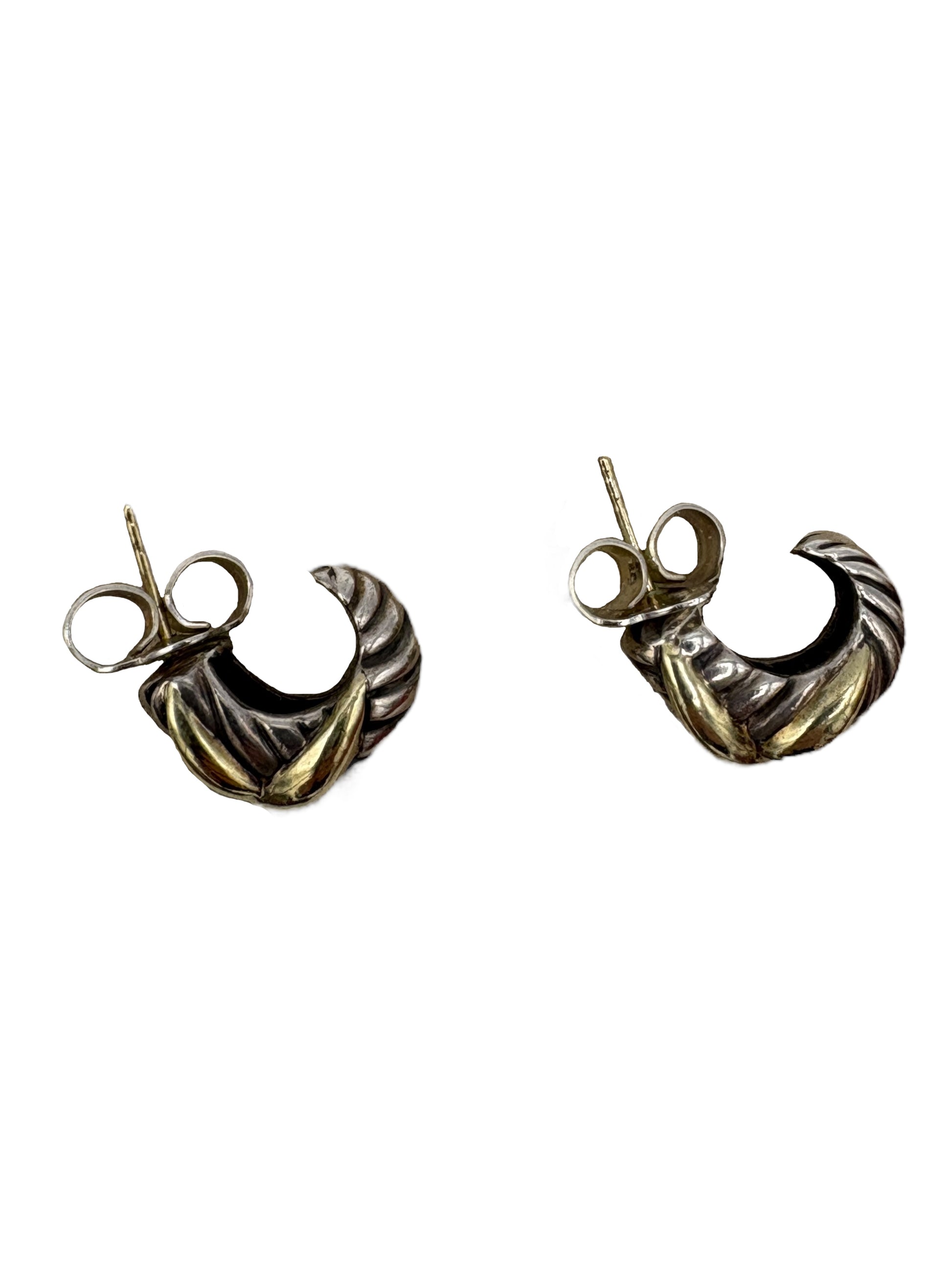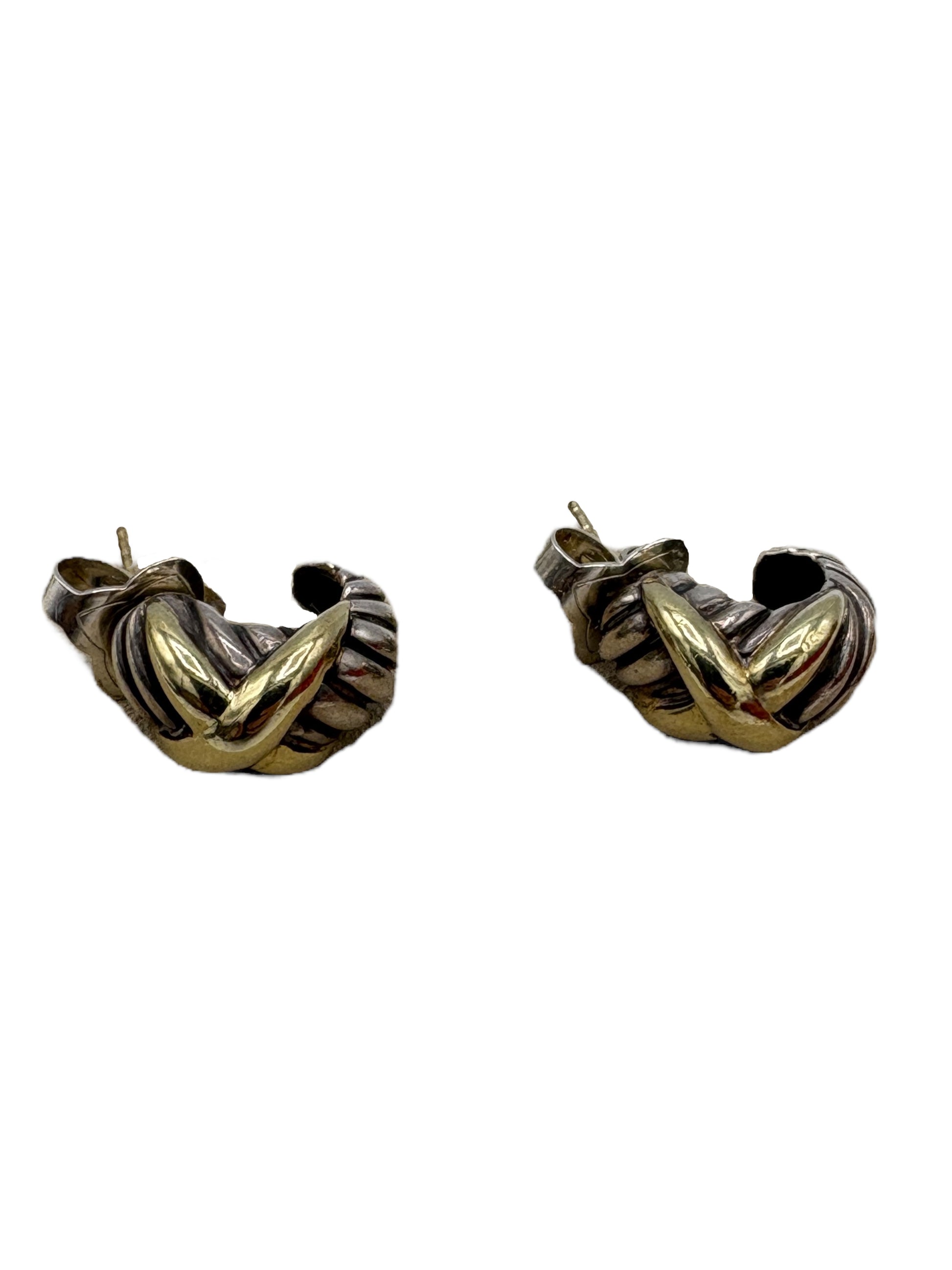 Item: David Yurman Sterling Silver & Gold Crossover Hoop Earrings