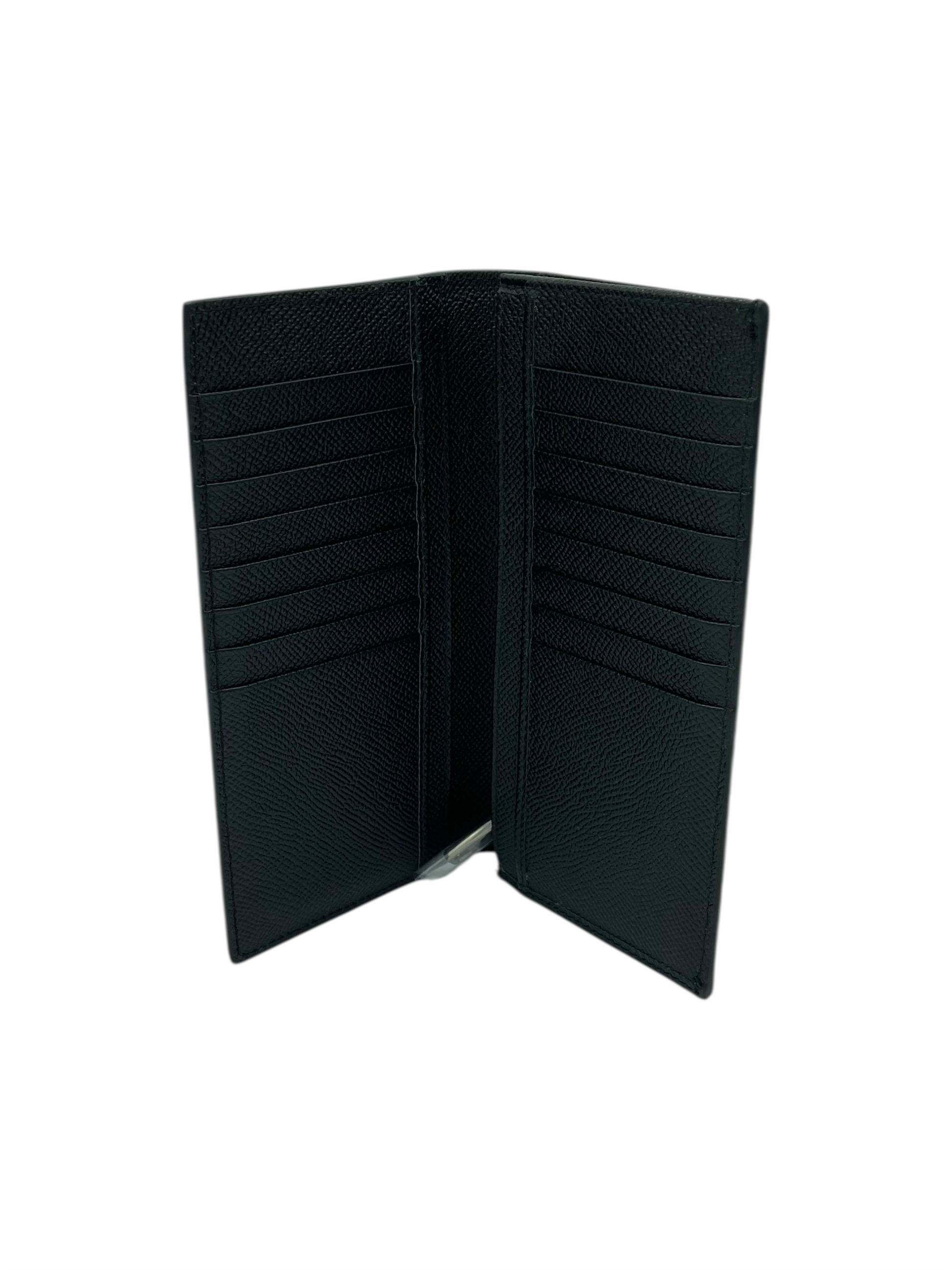 Dolce & Gabbana Black Grained Calfskin Plaque Logo Vertical Wallet OS - Made in Italy