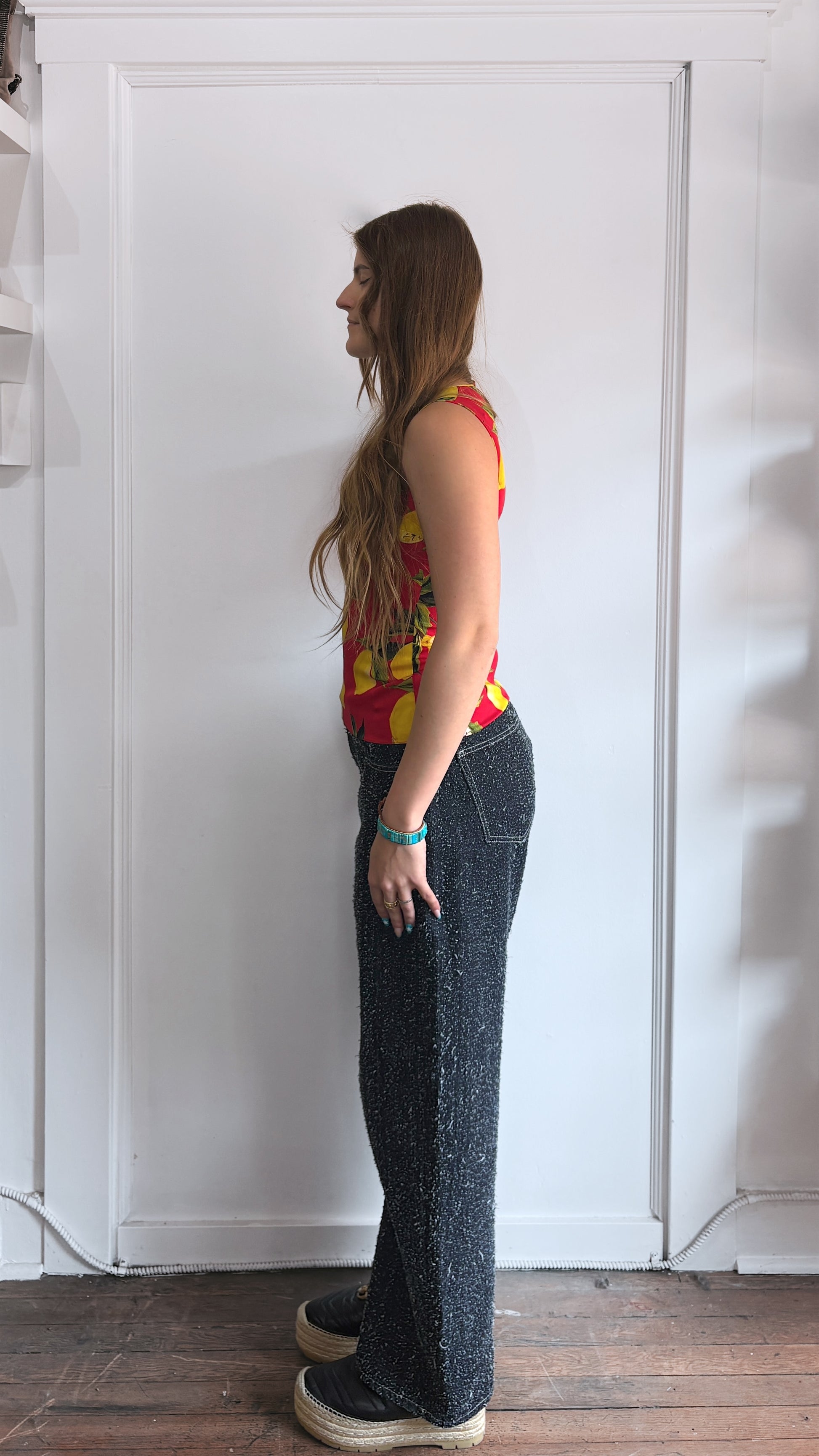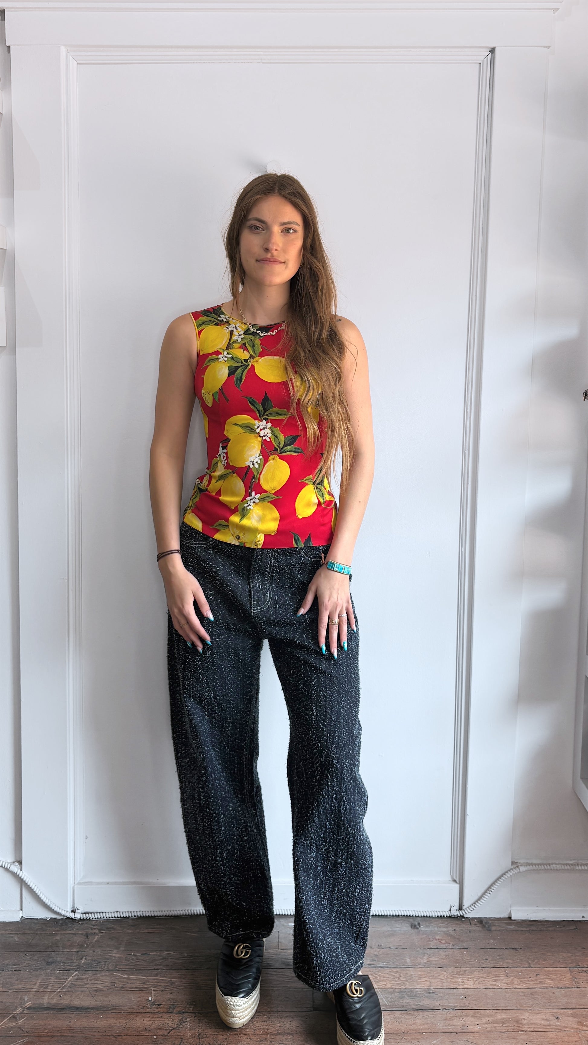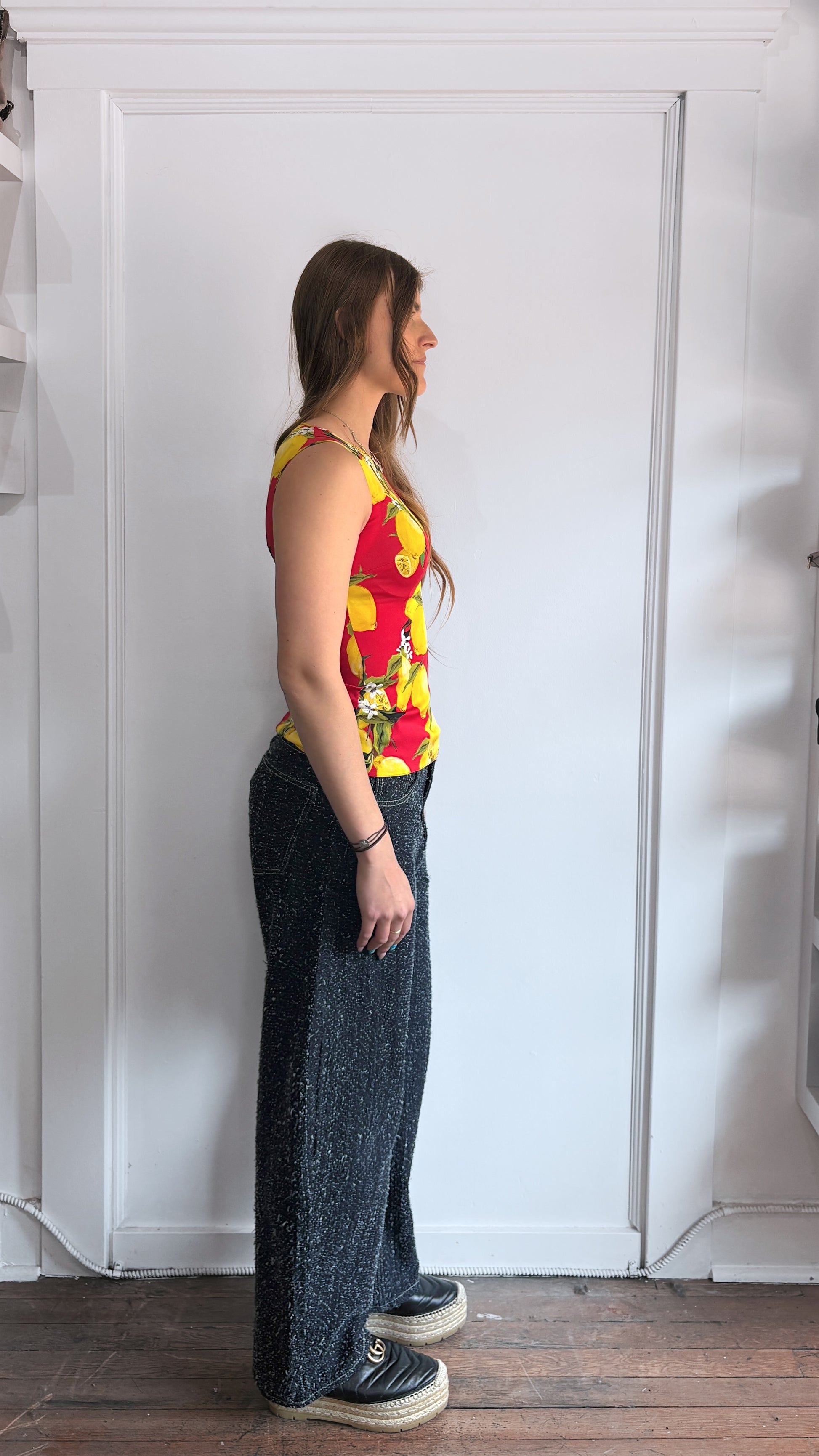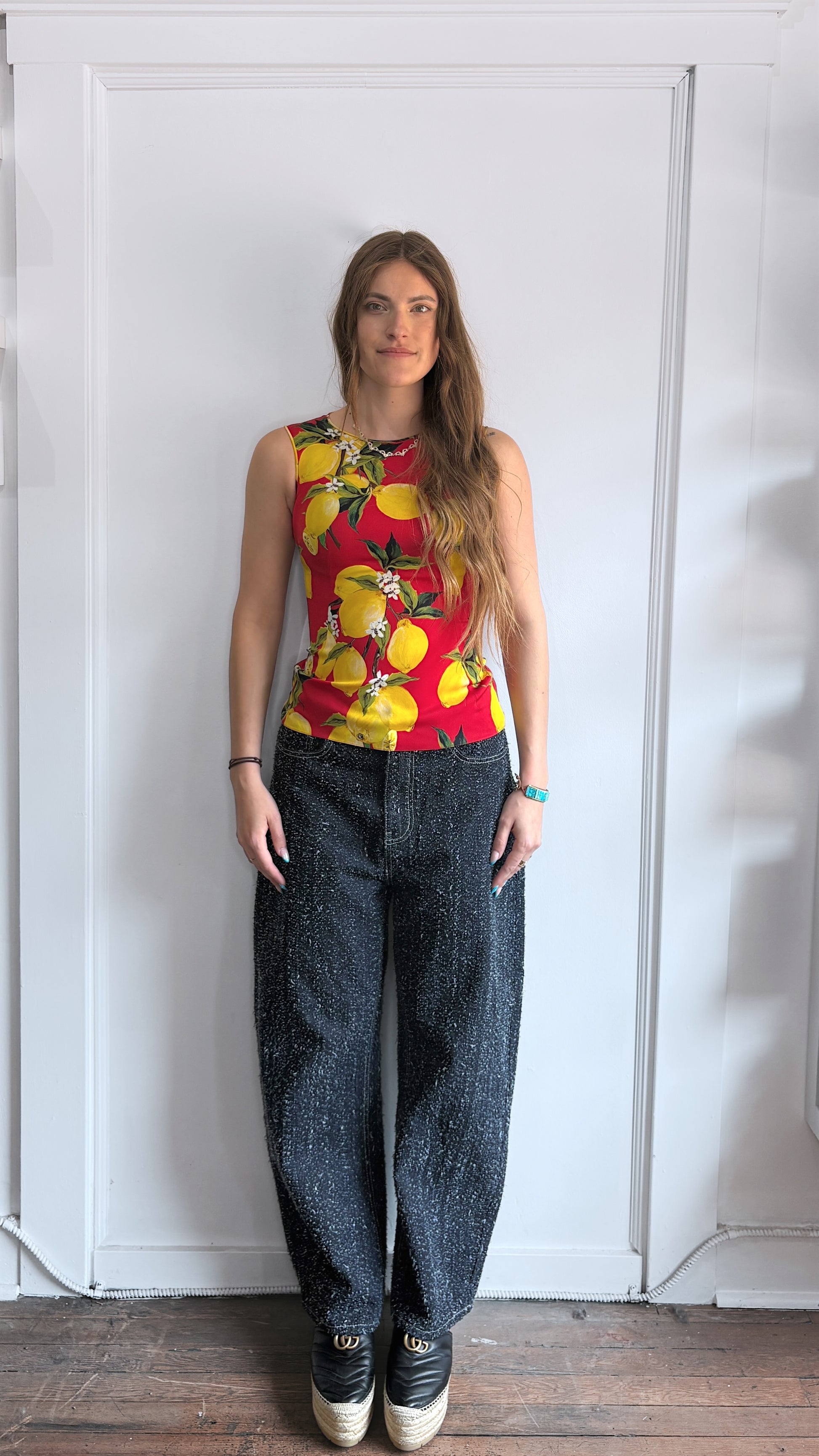 Dolce & Gabbana Red & Yellow Lemon Motif Silk Blend Tank Top Medium