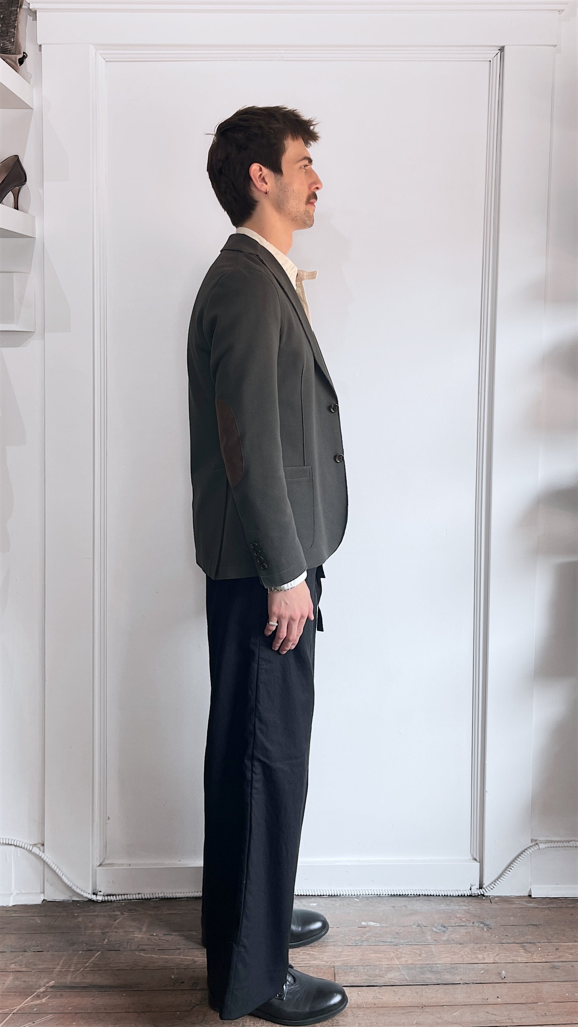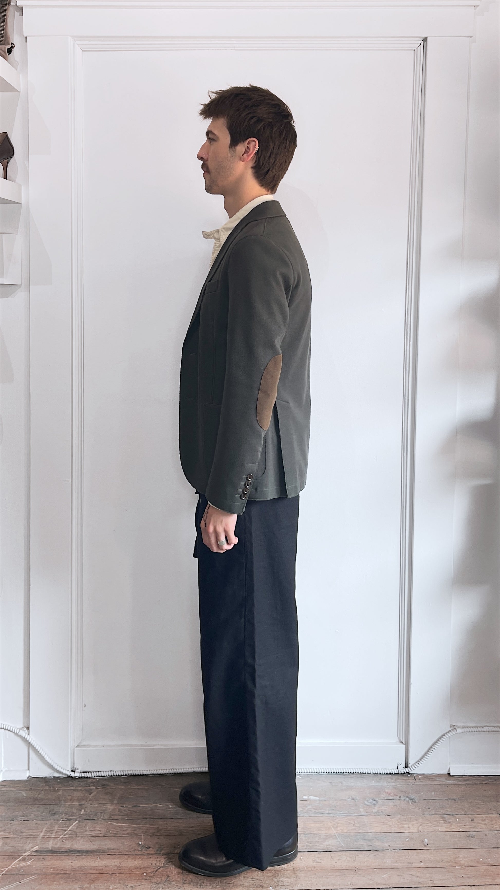 Item: Eleventy Dark Green Cotton Blend W/ Brown Suede Elbow Patched 36