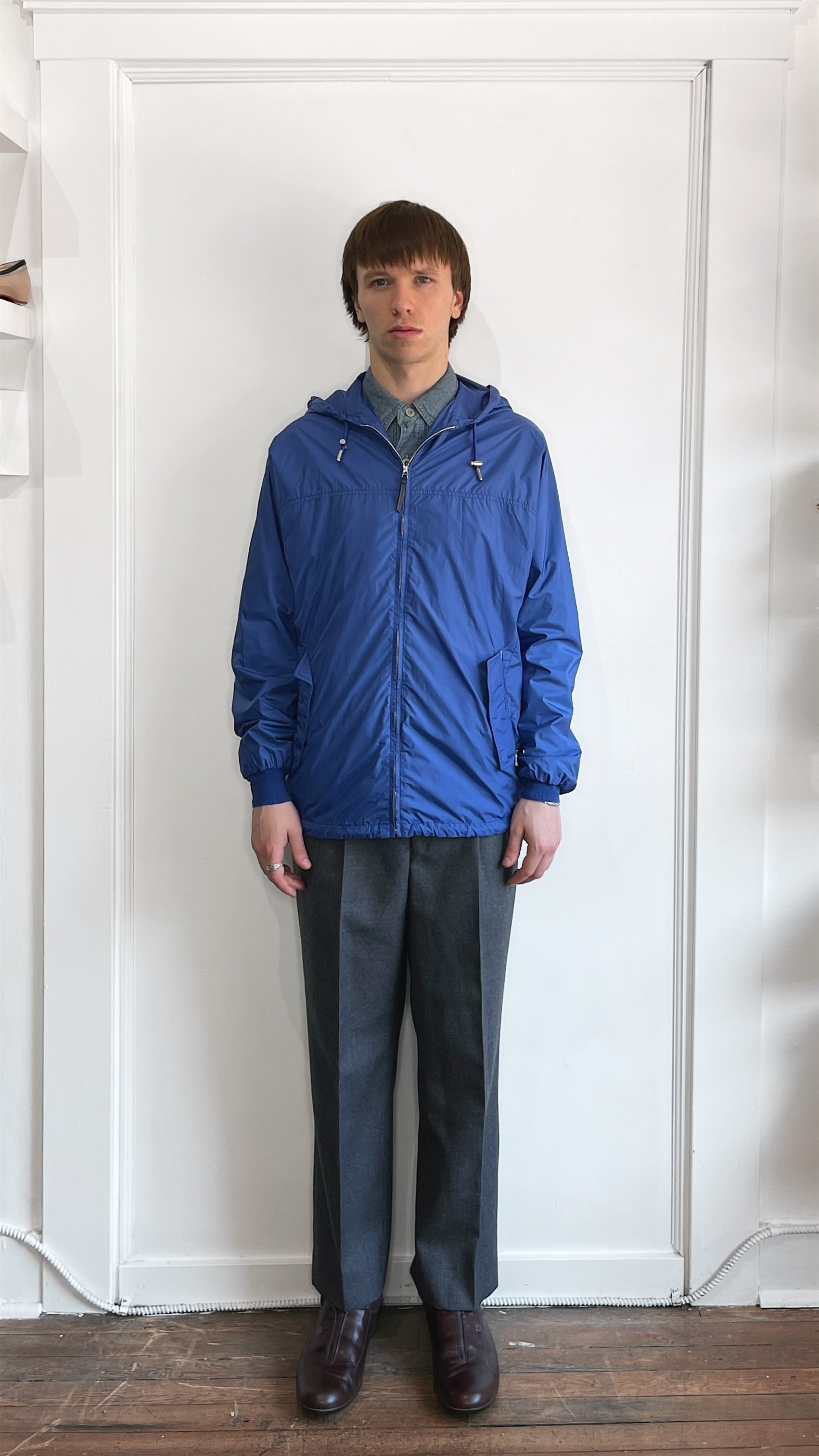 Ermenegildo Zegna Blue Lightweight Zip Up Hooded Windbreaker 38