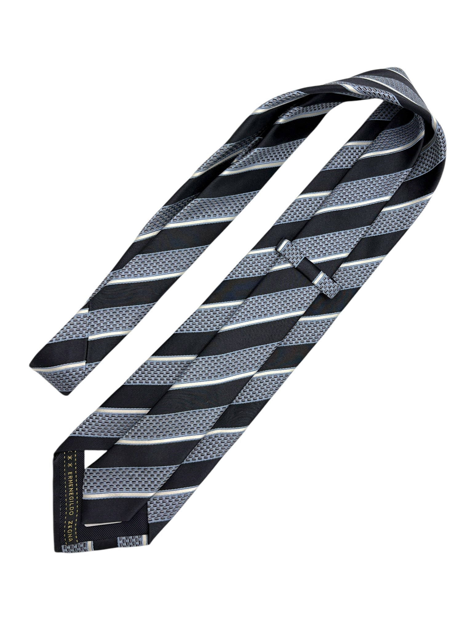 Ermenegildo Zegna Dark & Light Blue Diagonal Striped Silk Tie