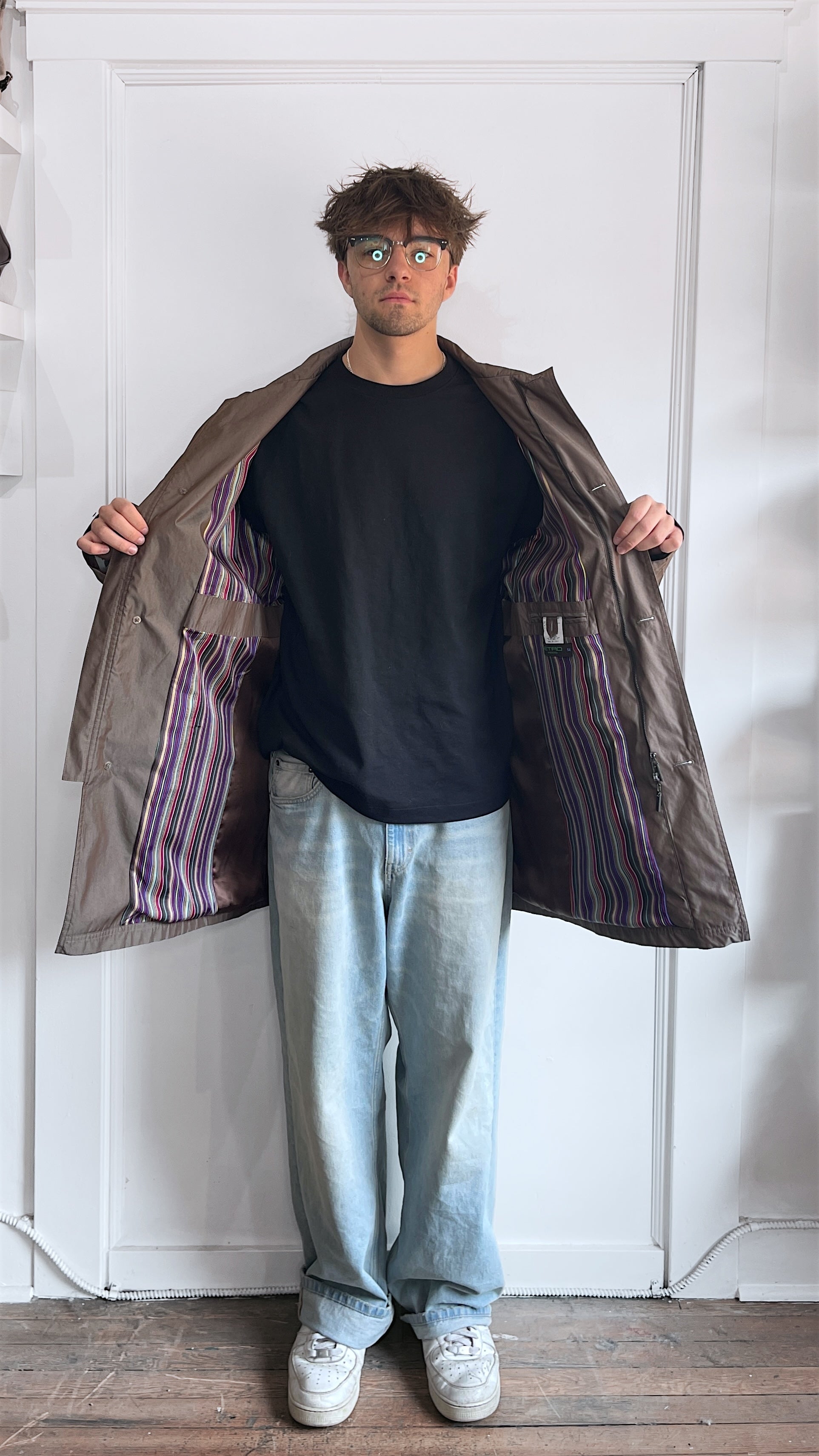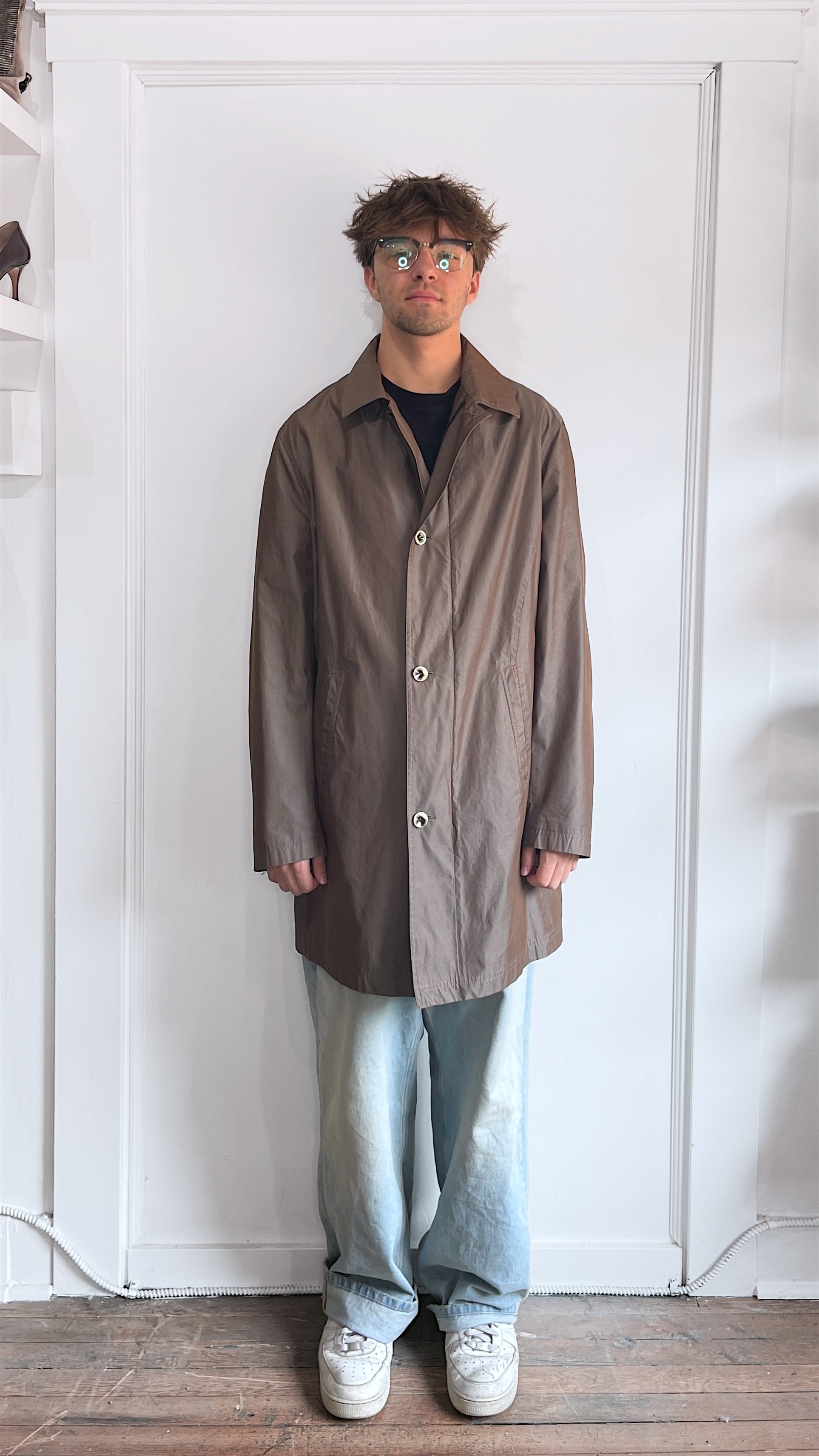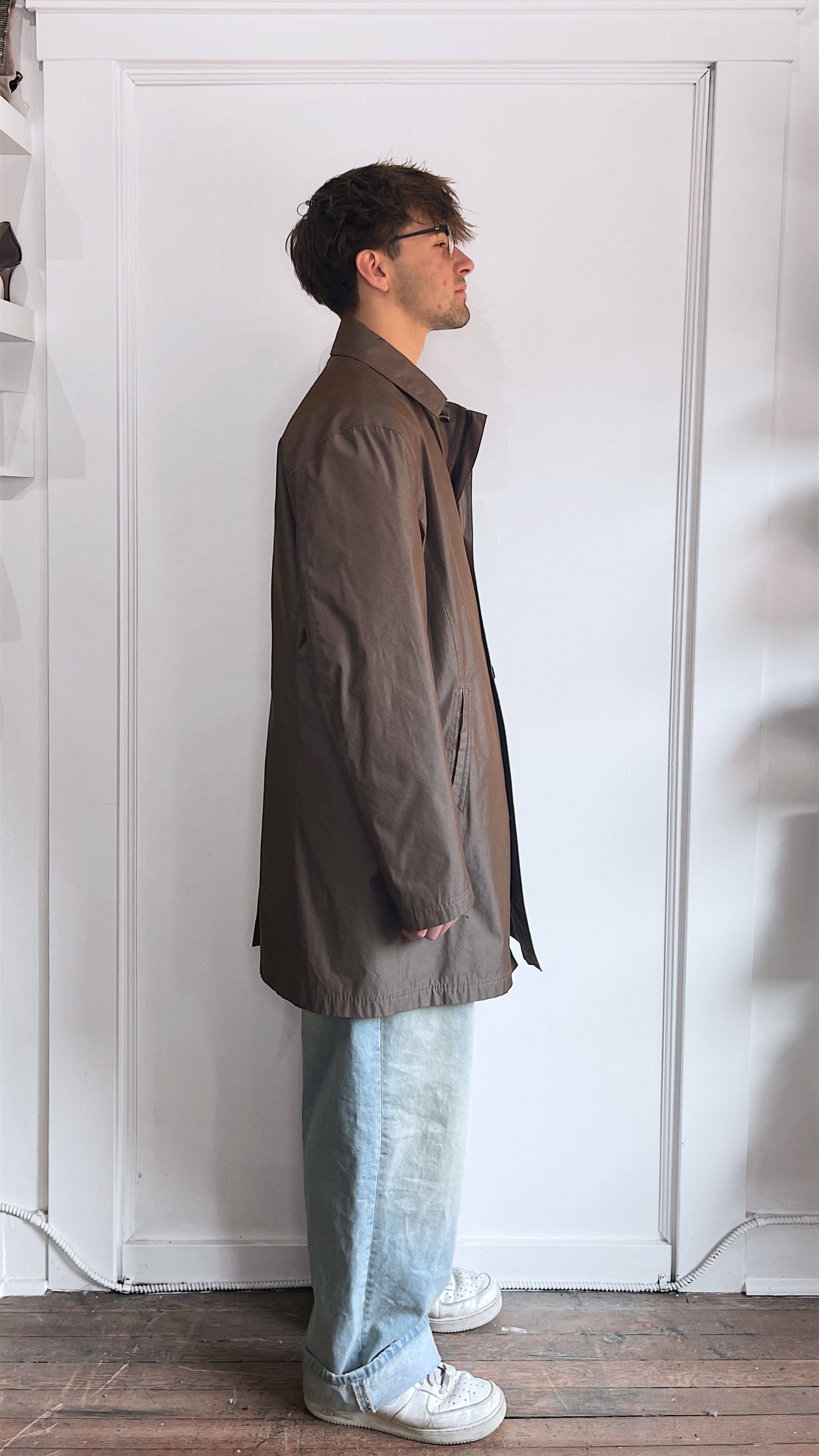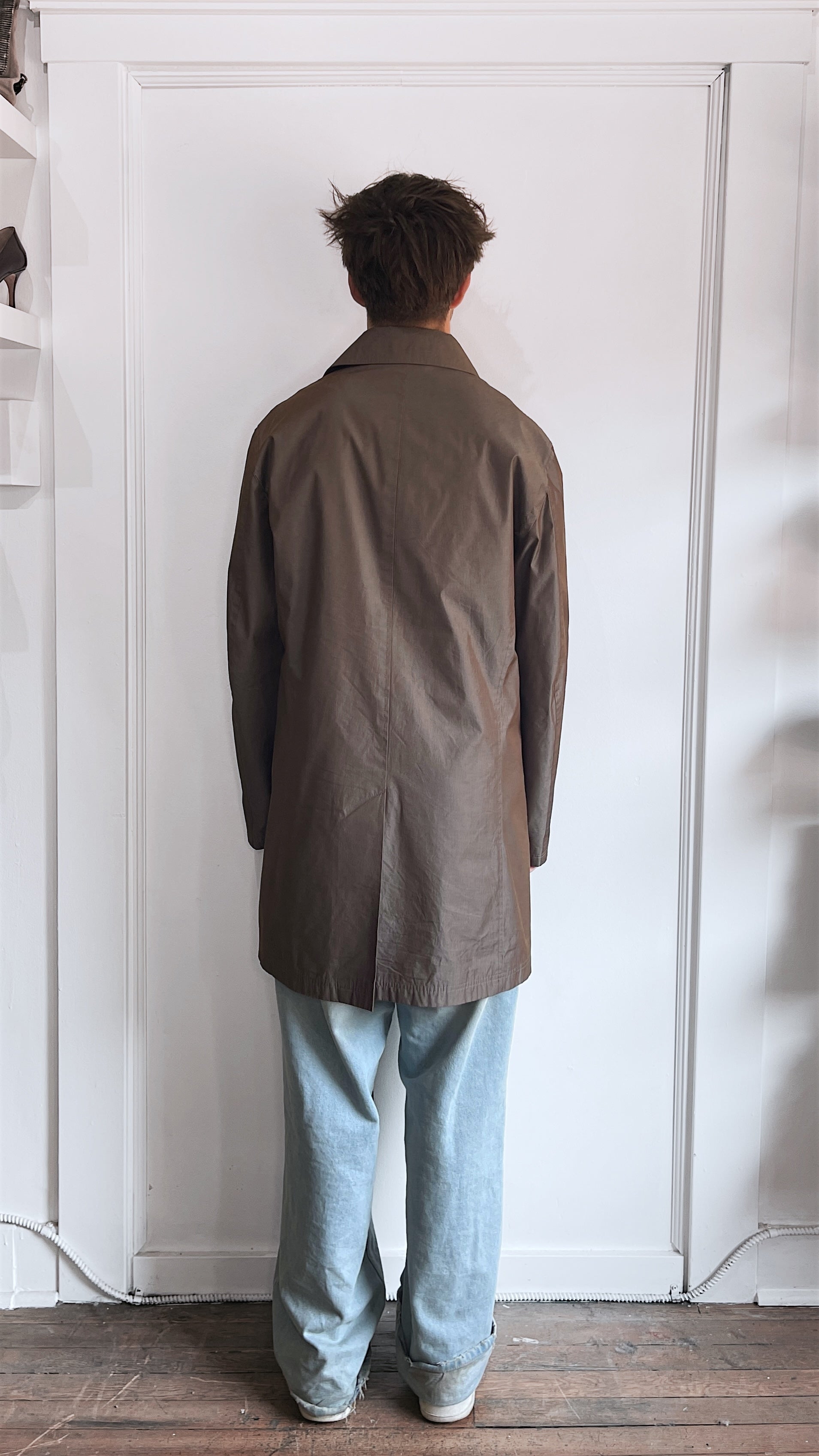 Item: Etro Iridescent Brown Cotton Poly Blend Mid Length Lightweight Overcoat 44