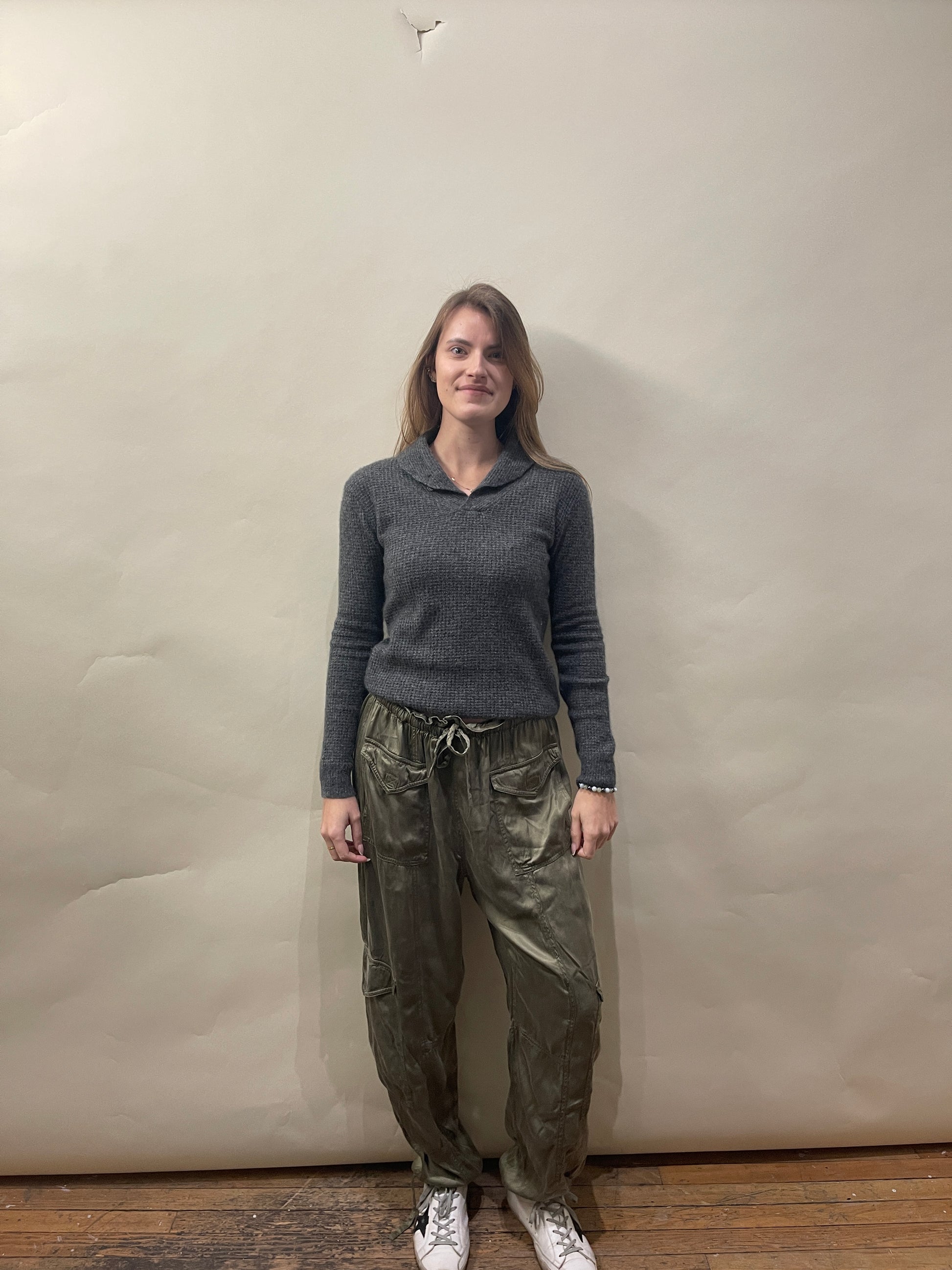 Ganni Army Green Viscose Baggy Cargo Pants 44 - Made in China