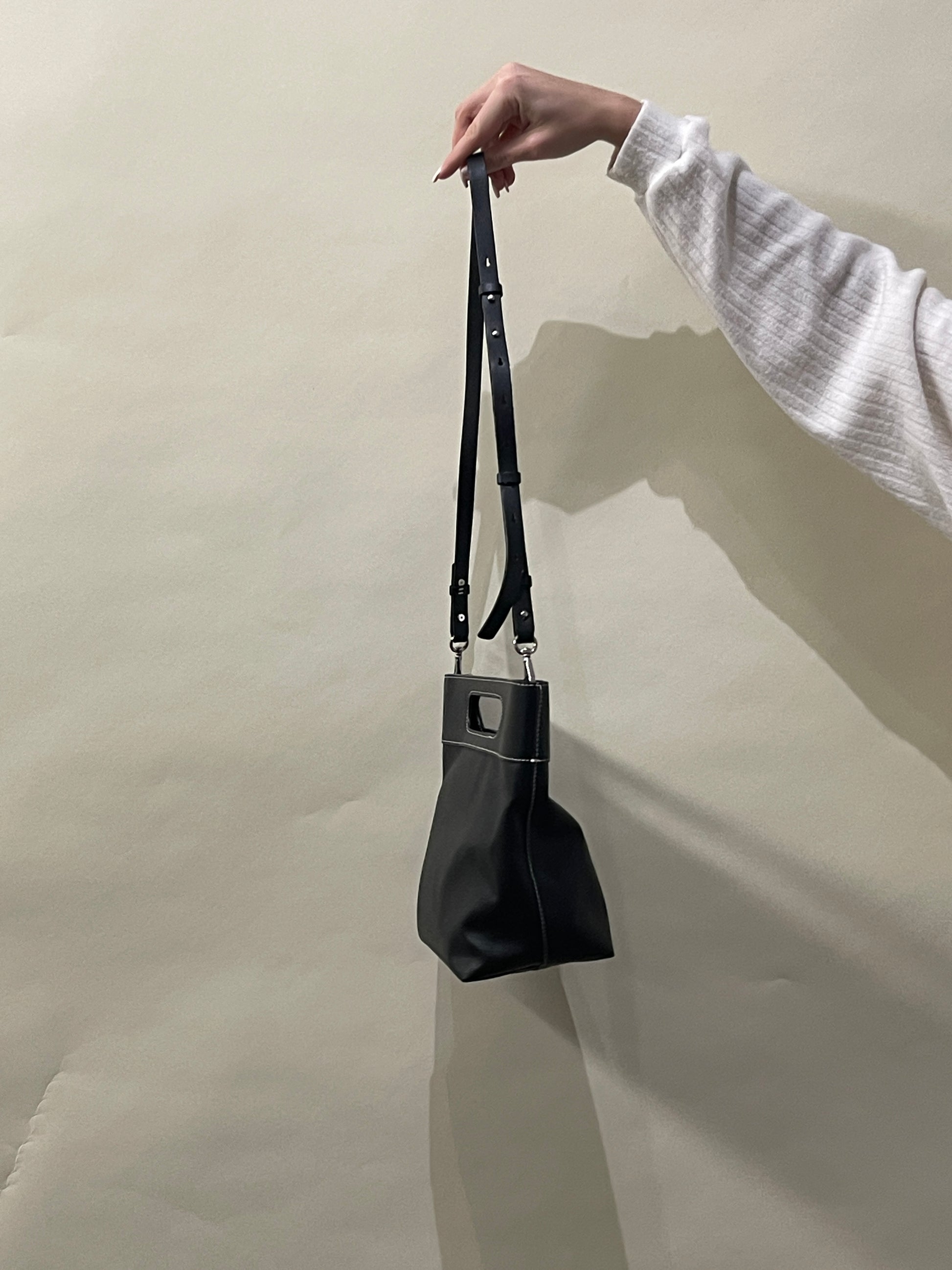 Ganni Black Canvas & Leather Top Handle Bag