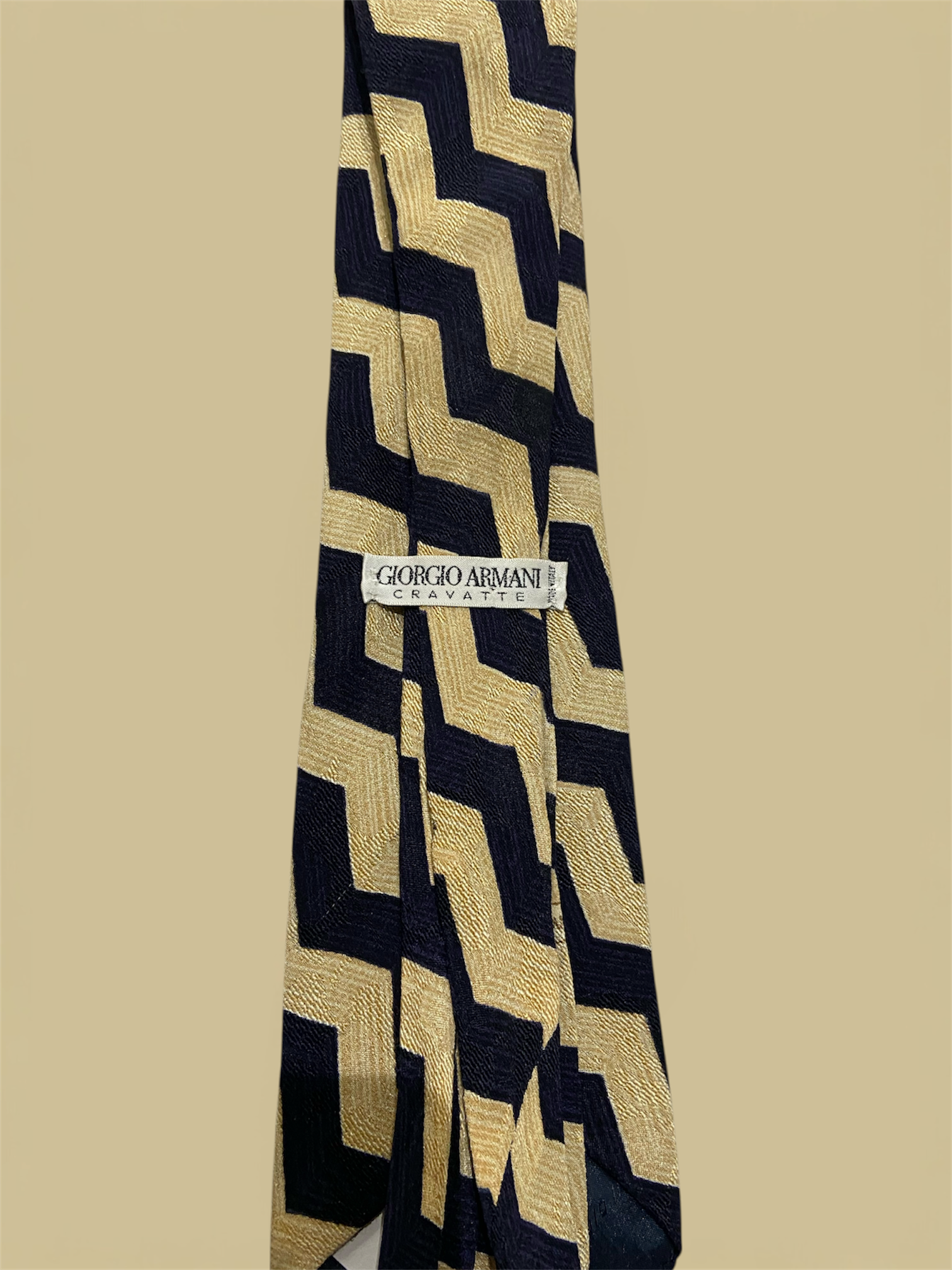 Giorgio Armani Navy & Beige Jagged Stripe Silk Tie