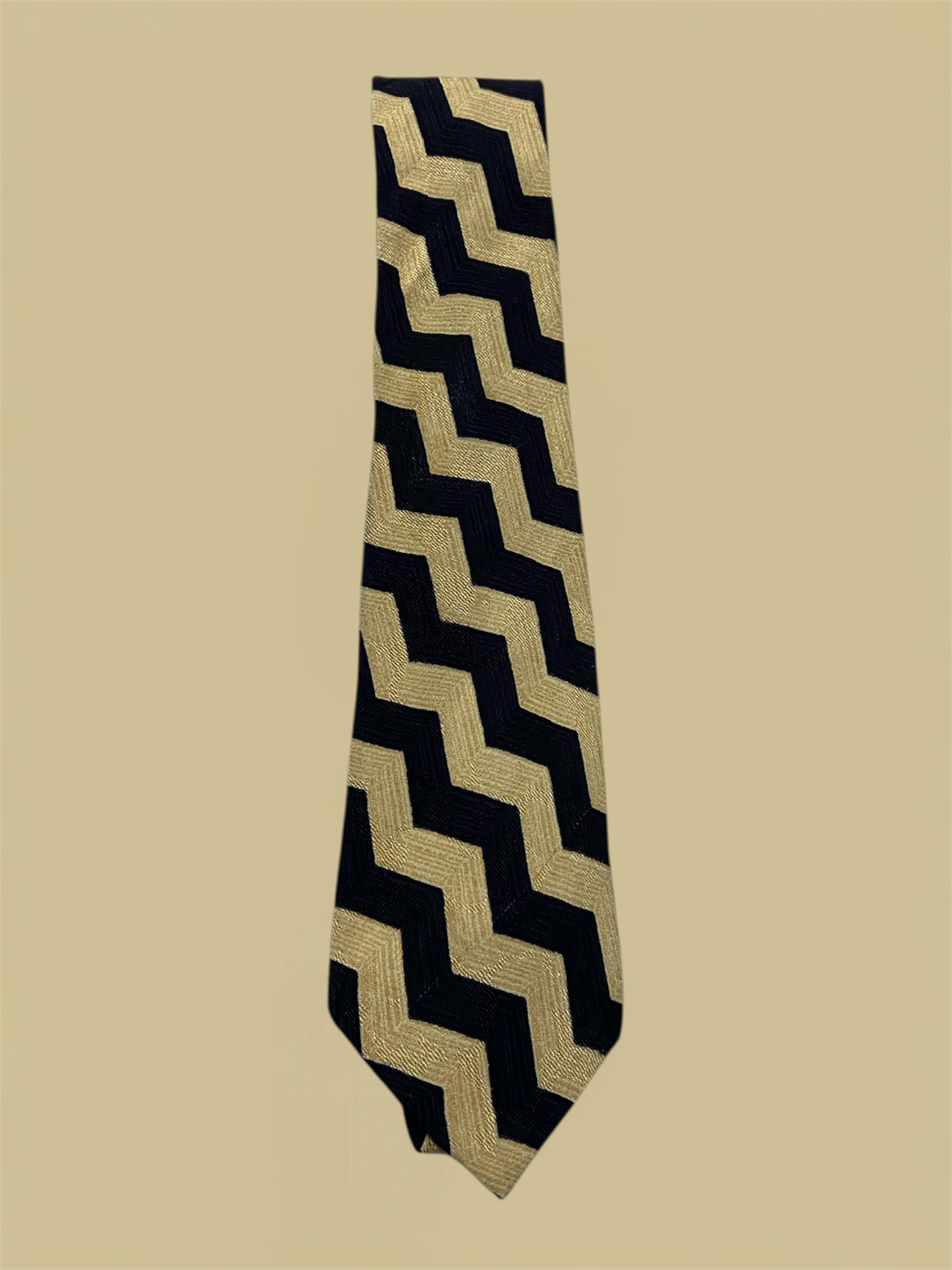 Giorgio Armani Cravatte Navy & Beige Jagged Stripe Silk Tie OS - Made in Italy