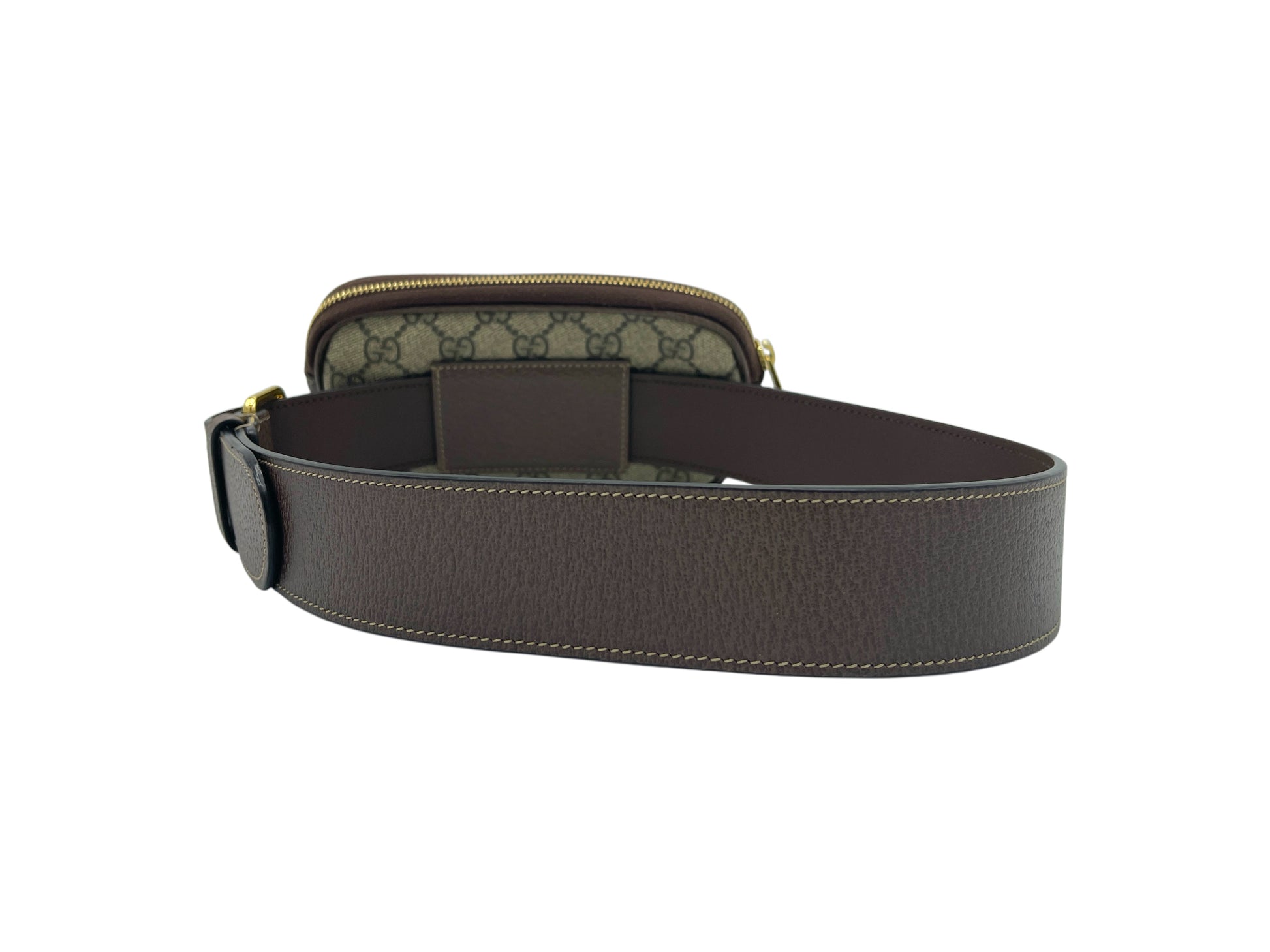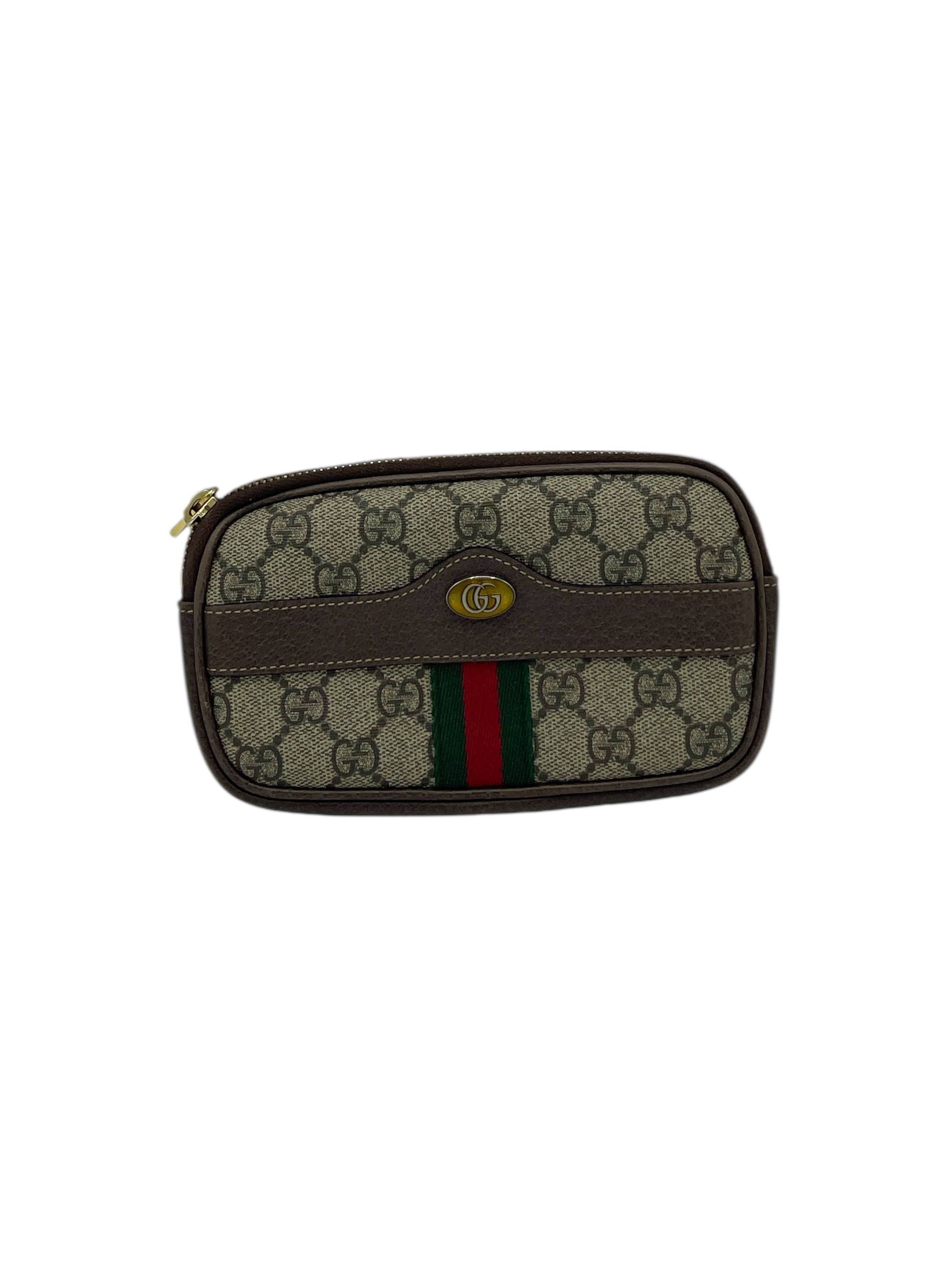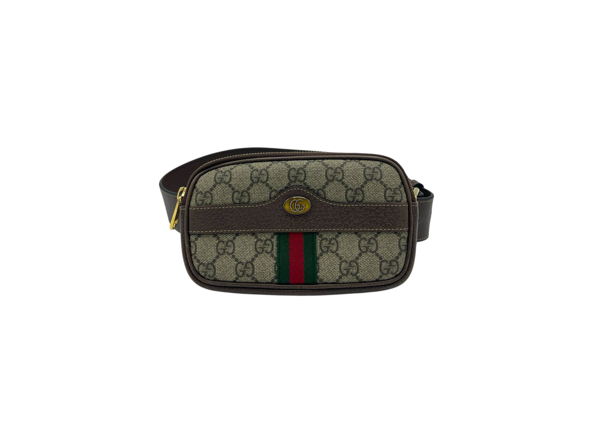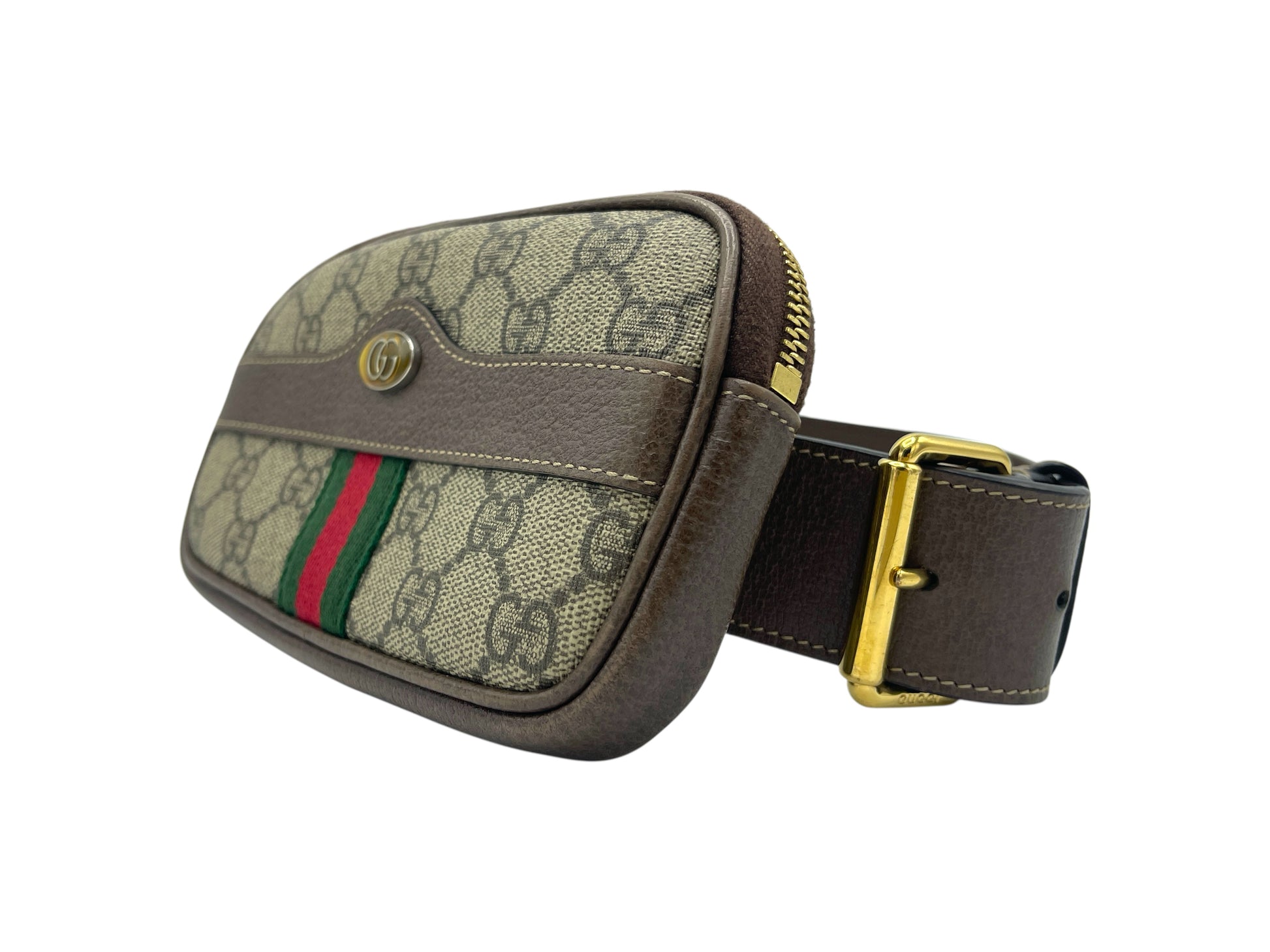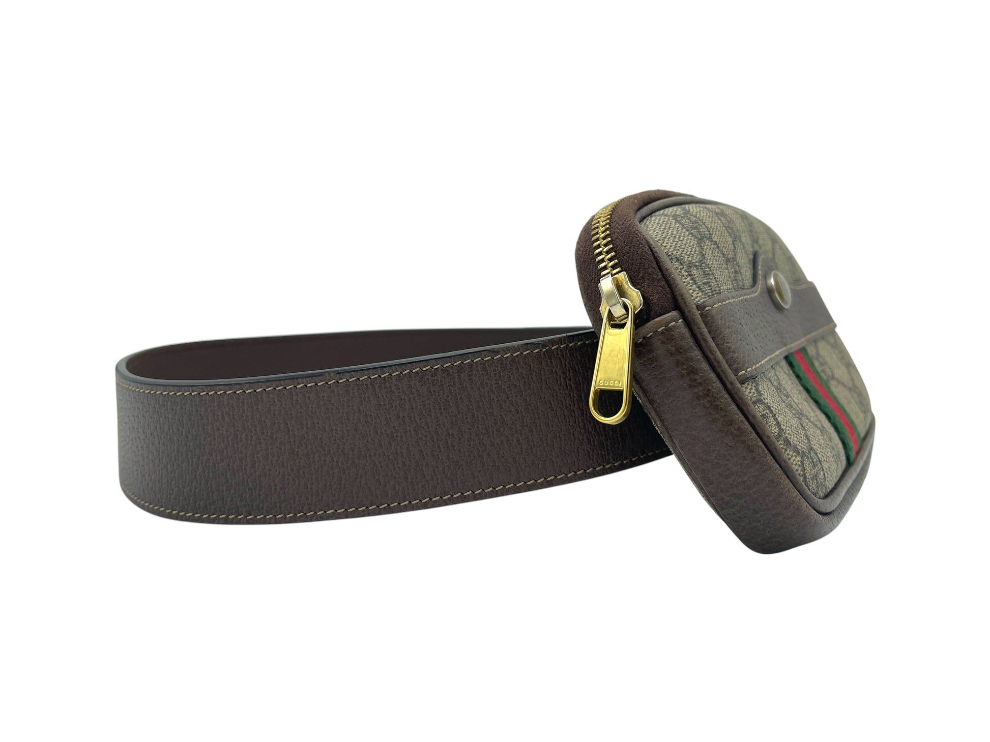 Gucci Beige & Brown Canvas & Leather Monogram Ophidia Belt Bag OS - Made in Italy