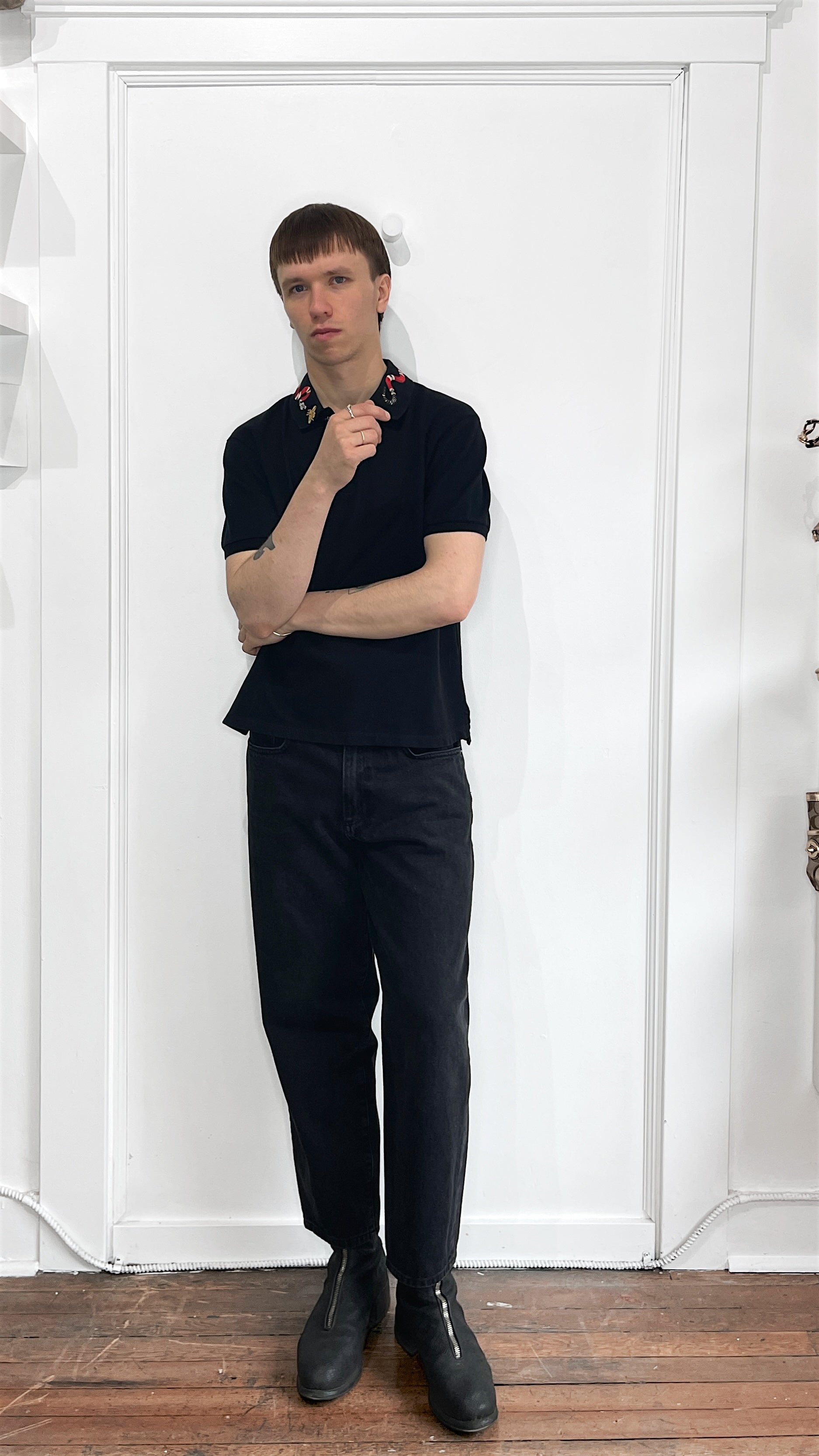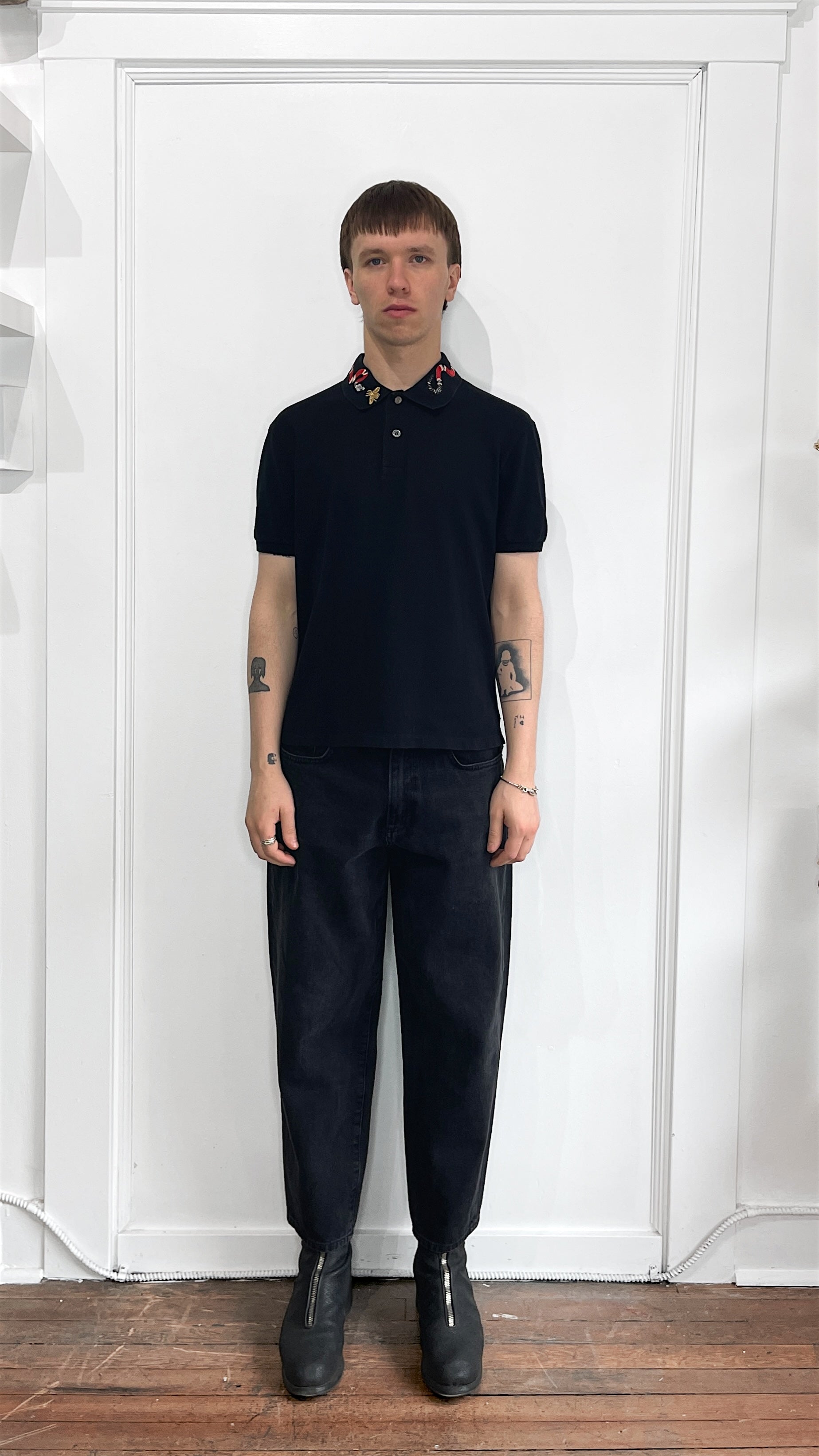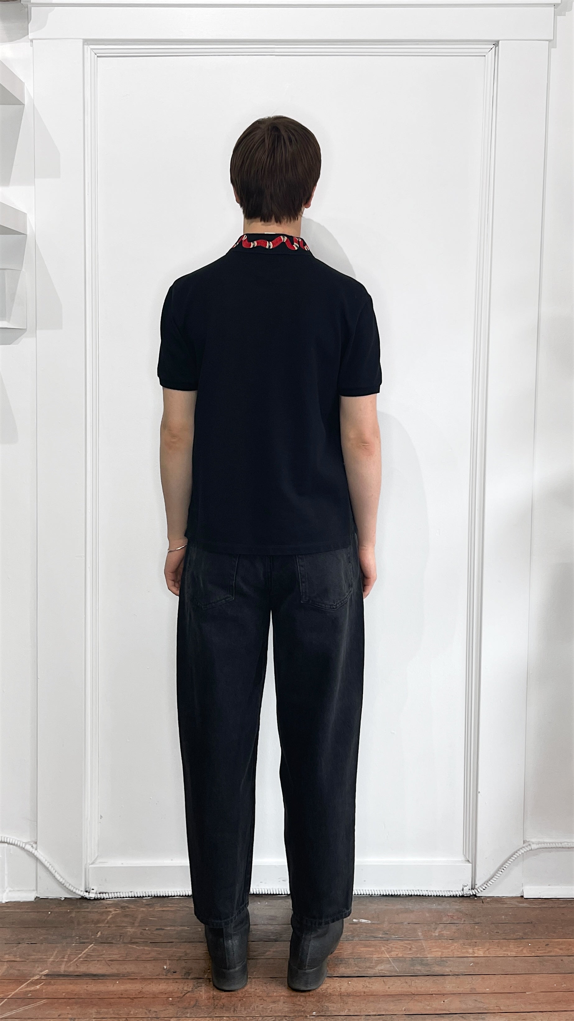Item: Gucci Black Cotton Pique Snake Collar Polo Shirt Large