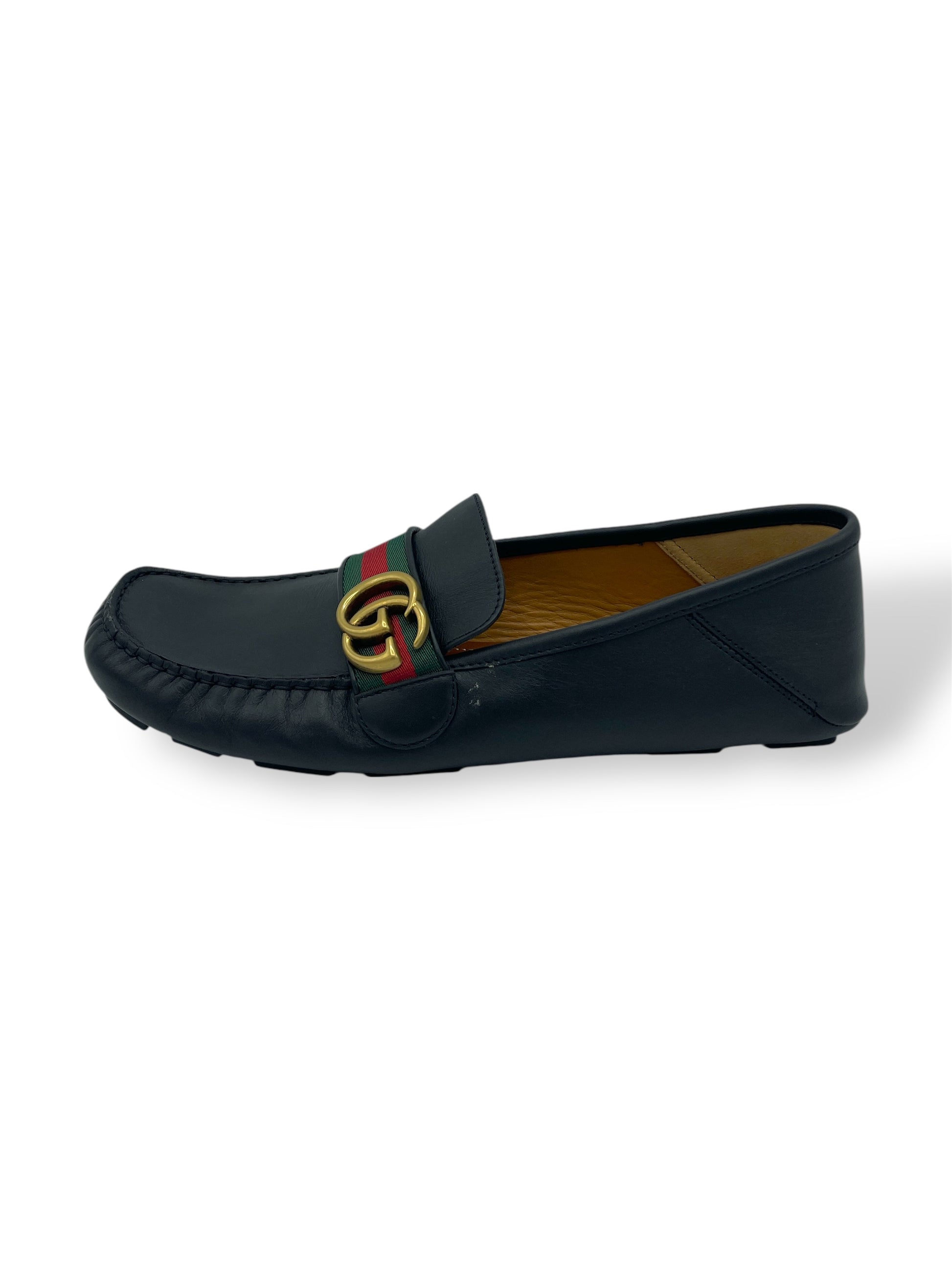 Gucci Black Leather GG Logo Driving Loafers 8.5 M / 10 W