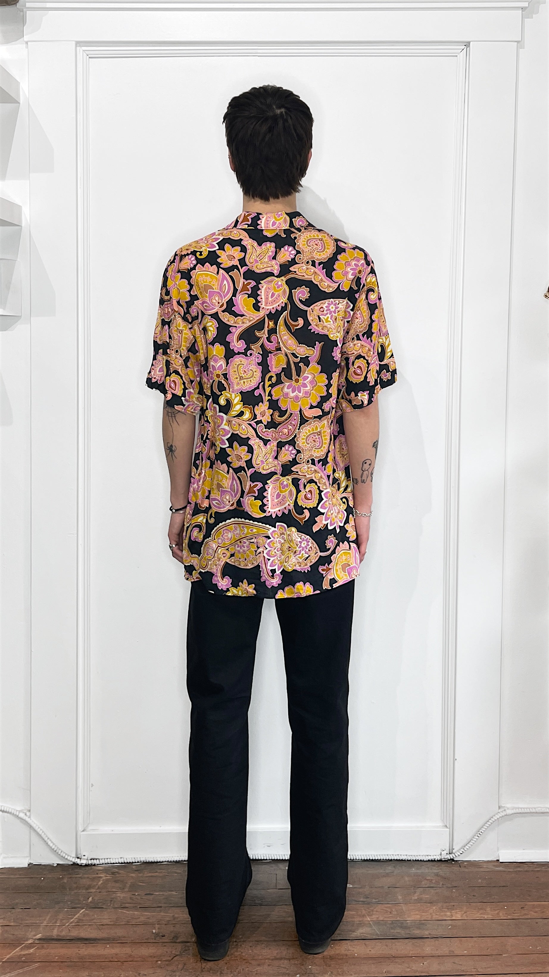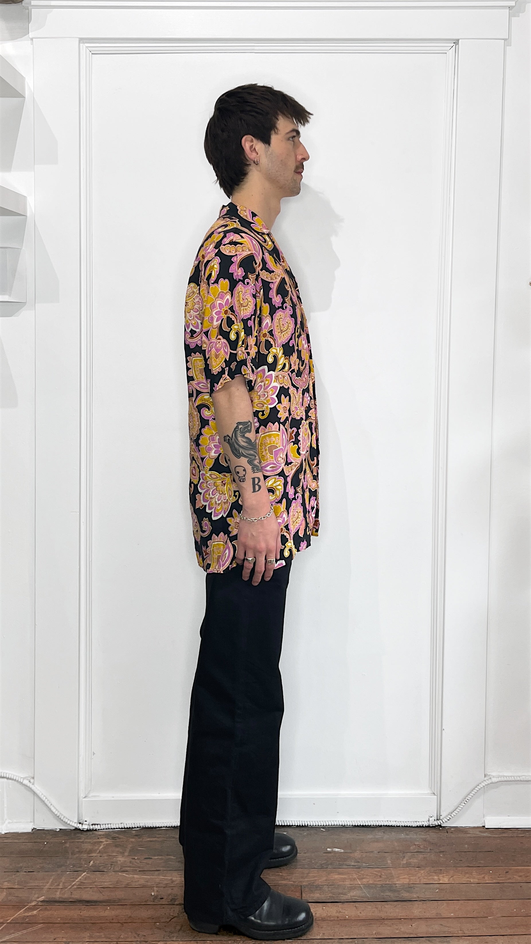 Gucci Black, Pink, & Yellow Floral Linen SS Button Up 44