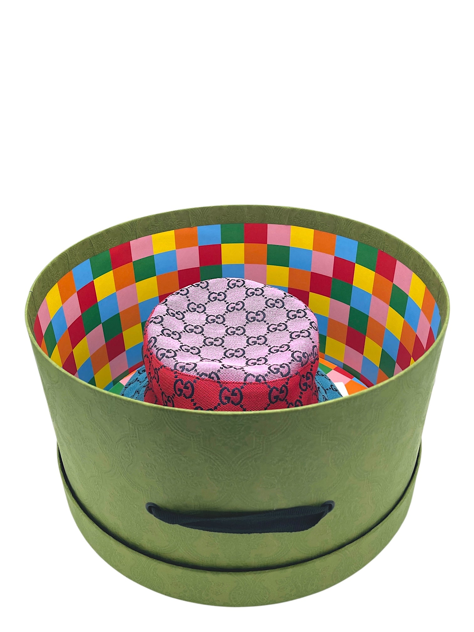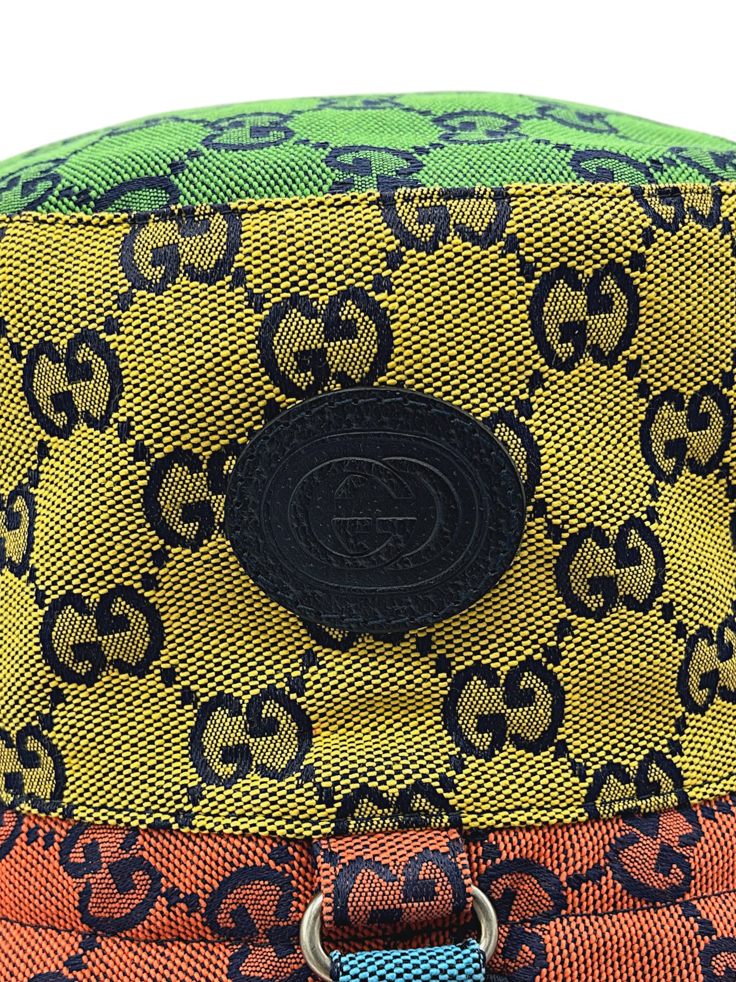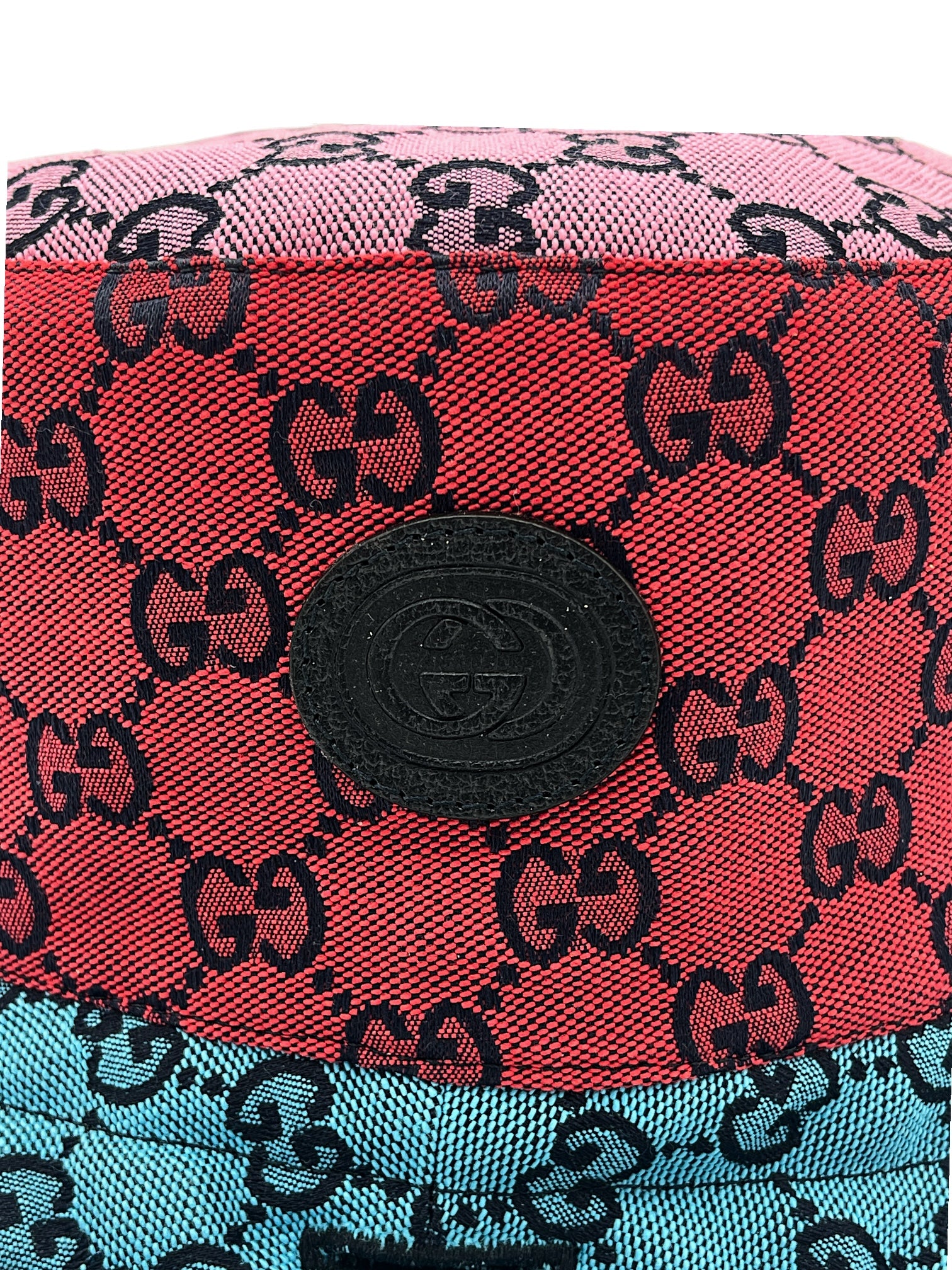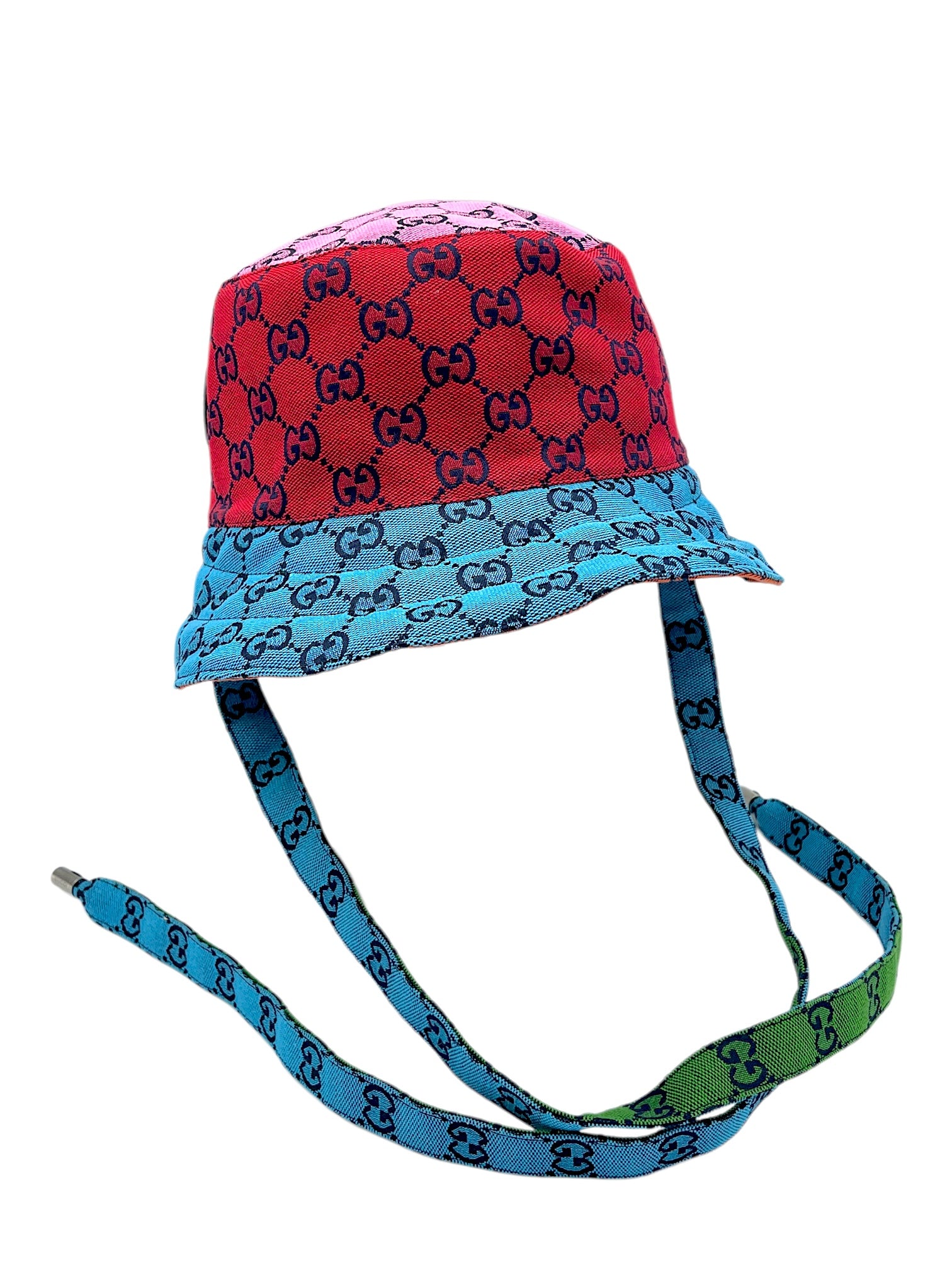 Item: Gucci Multicolour Reversible Monogram Heavy Cotton Bucket Hat W/ Calfskin Patch Logo & Strap.