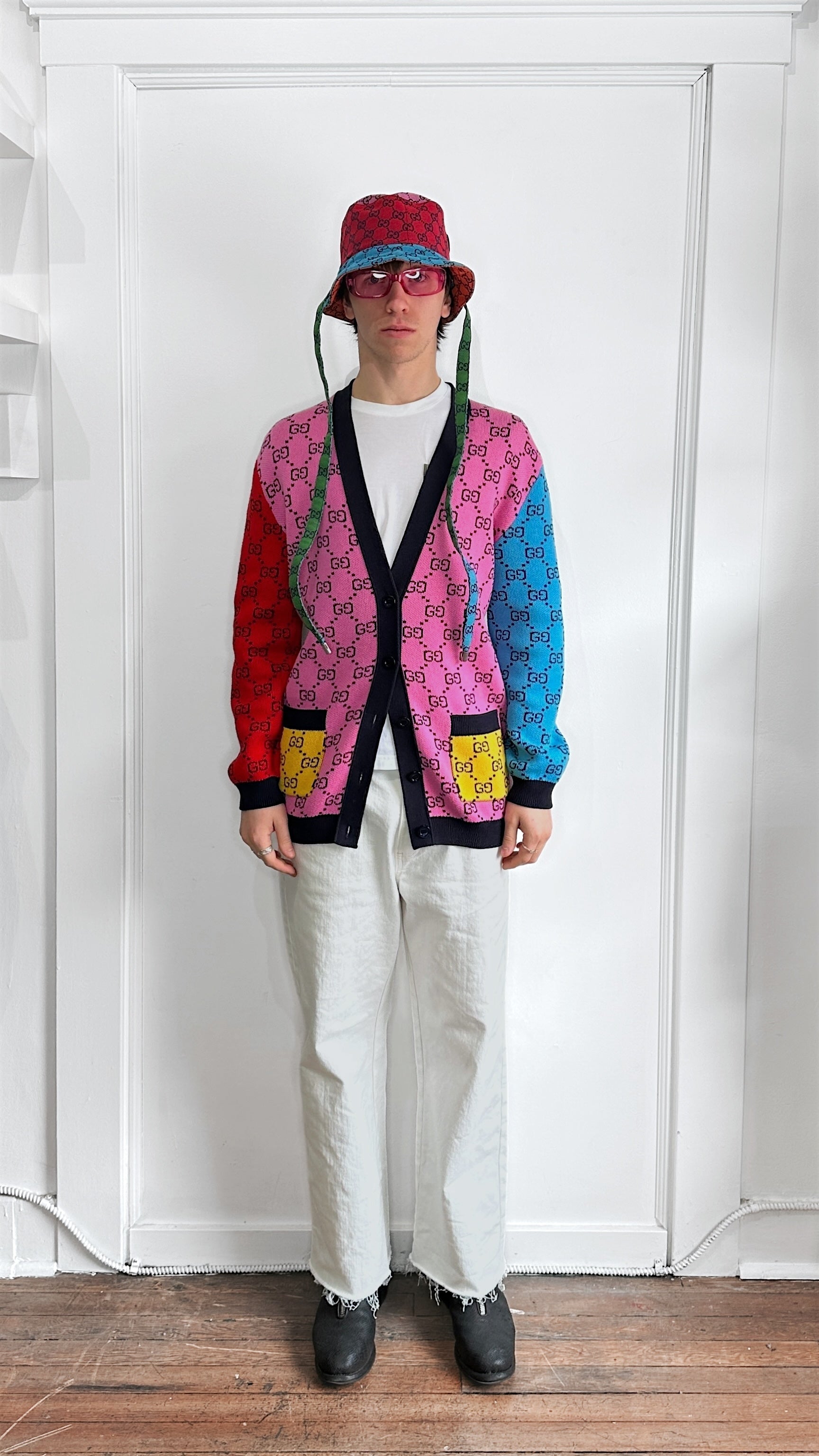Item: Gucci Rainbow Multicolour Wool Cotton Blend Monogram Cardigan XS FW21 by Alessandro Michele