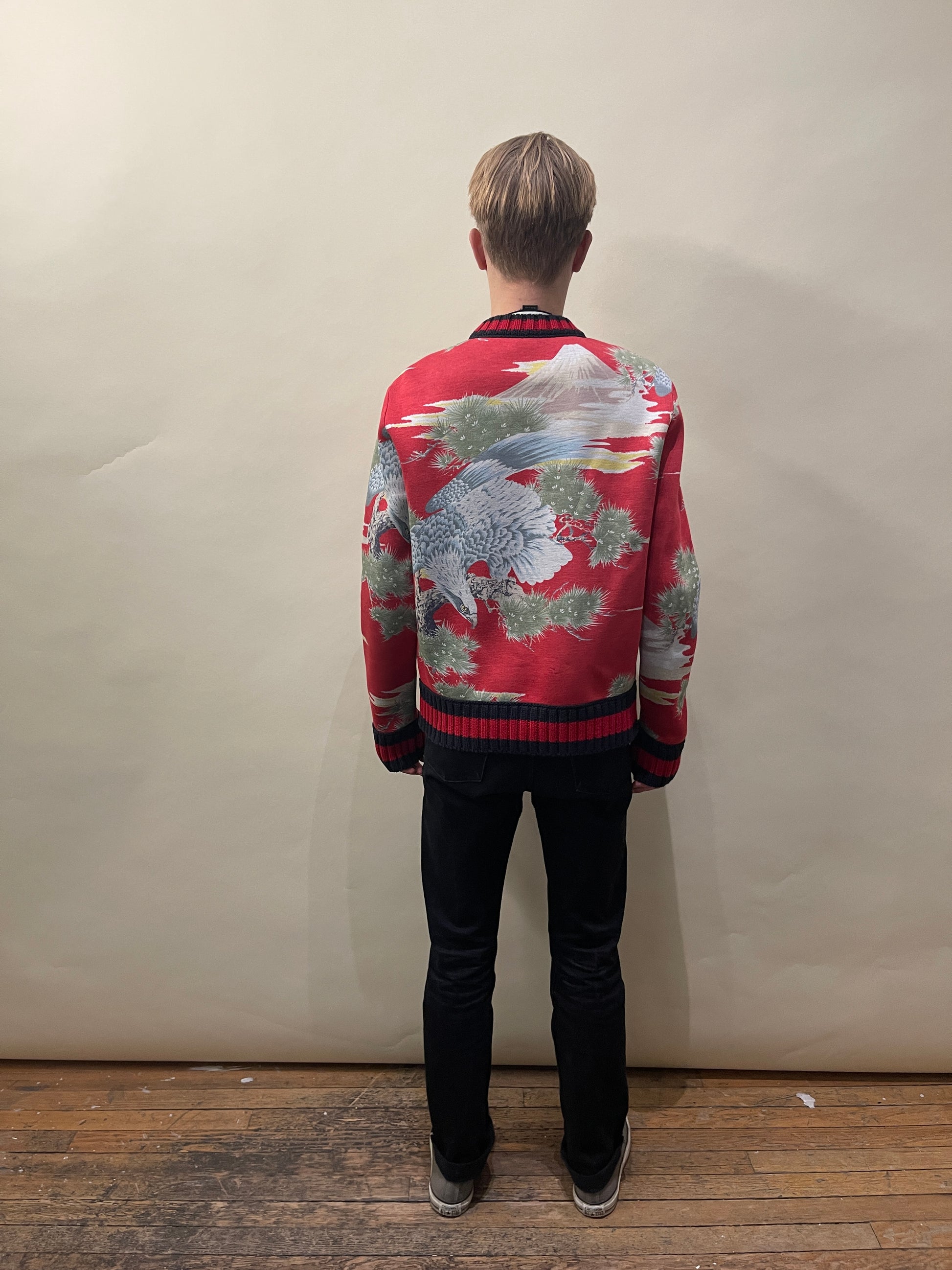 Gucci Red, Green, & Khaki Japan Print Modal Crewneck Sweater