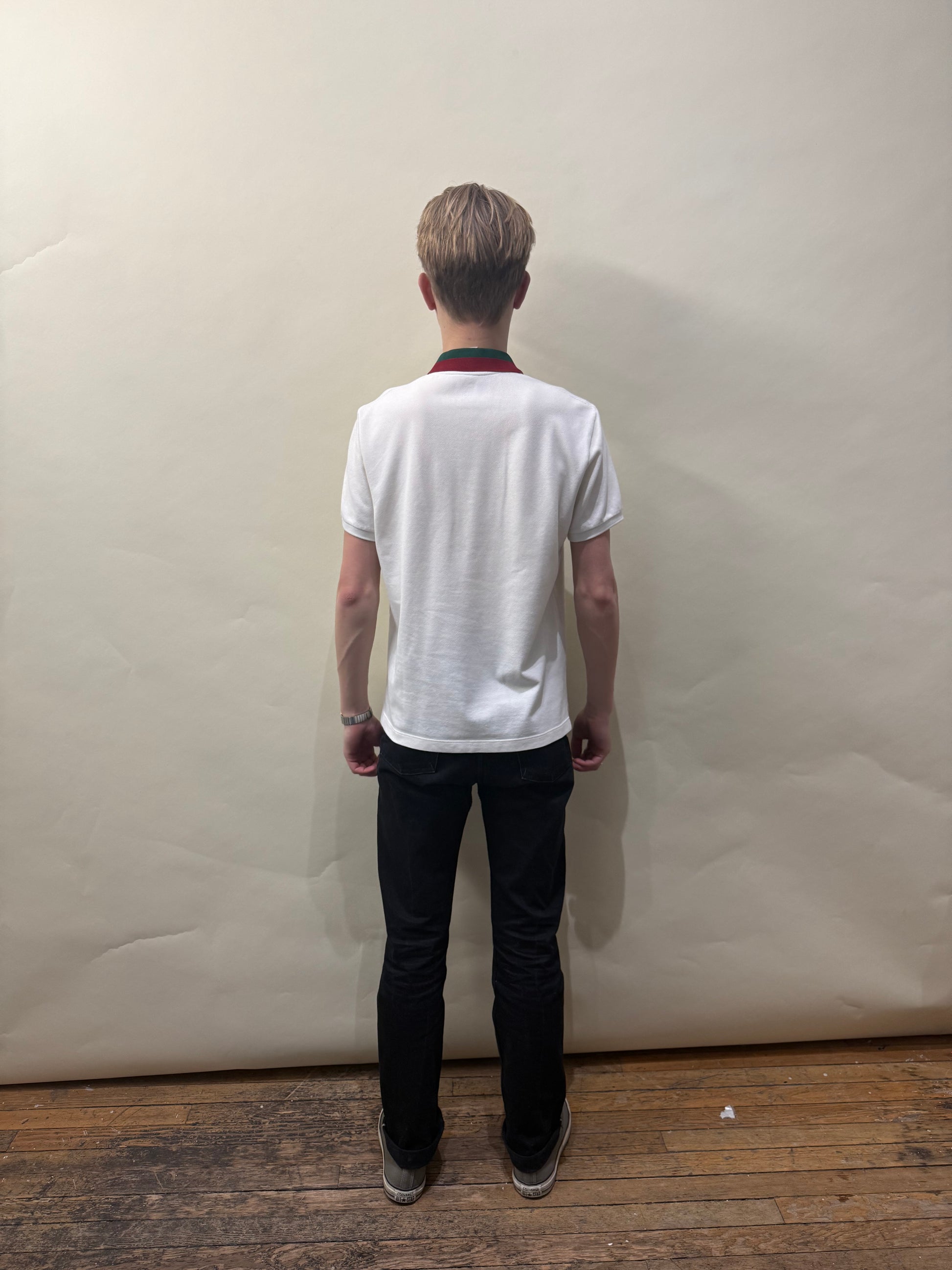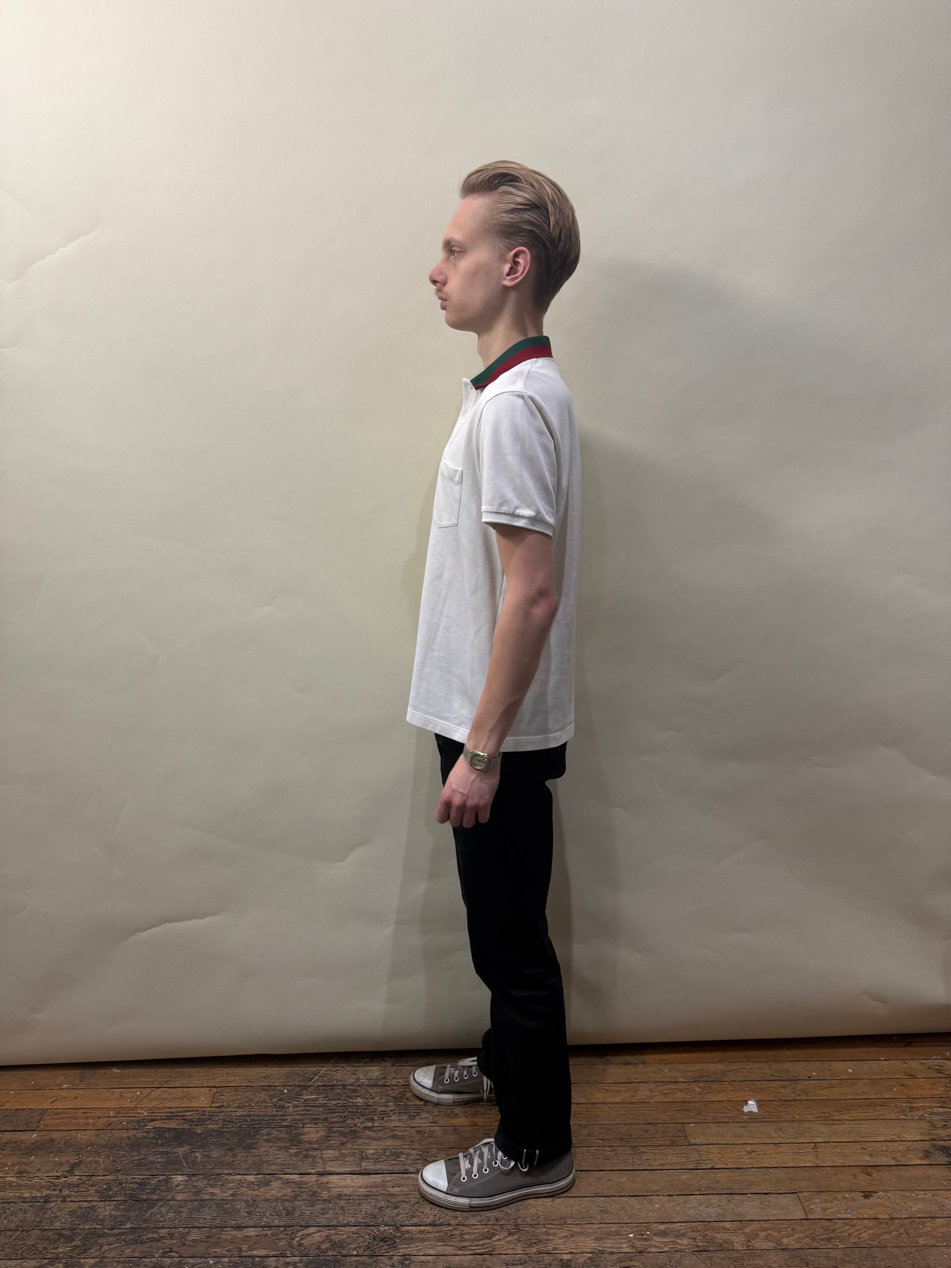 Gucci White Cotton Pique Web Collar SS Polo Shirt Large - Made in Italy