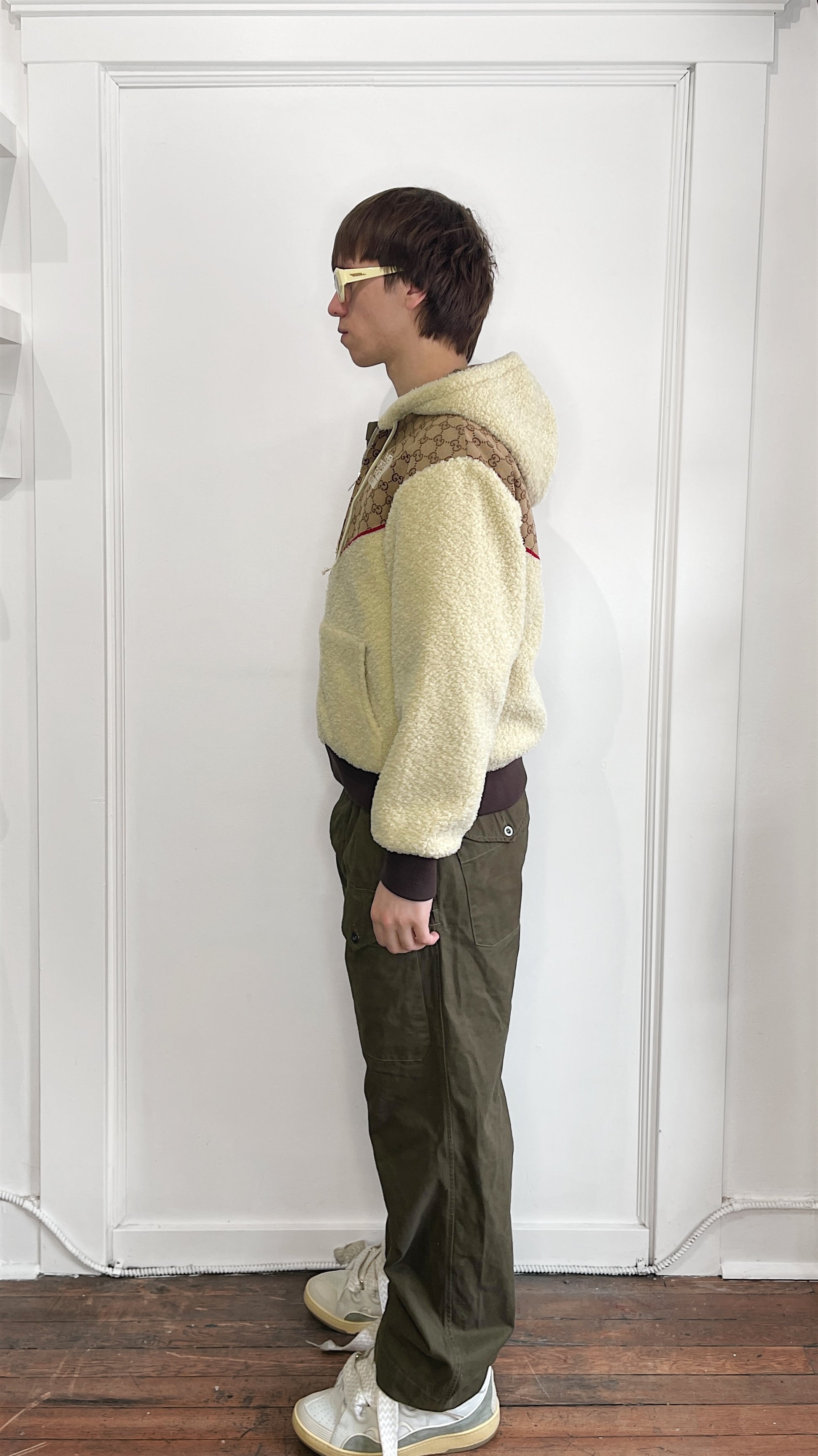 Item: Gucci x The North Face Beige Canvas Monogram & Shearling Panelled Zip Up Jacket XS