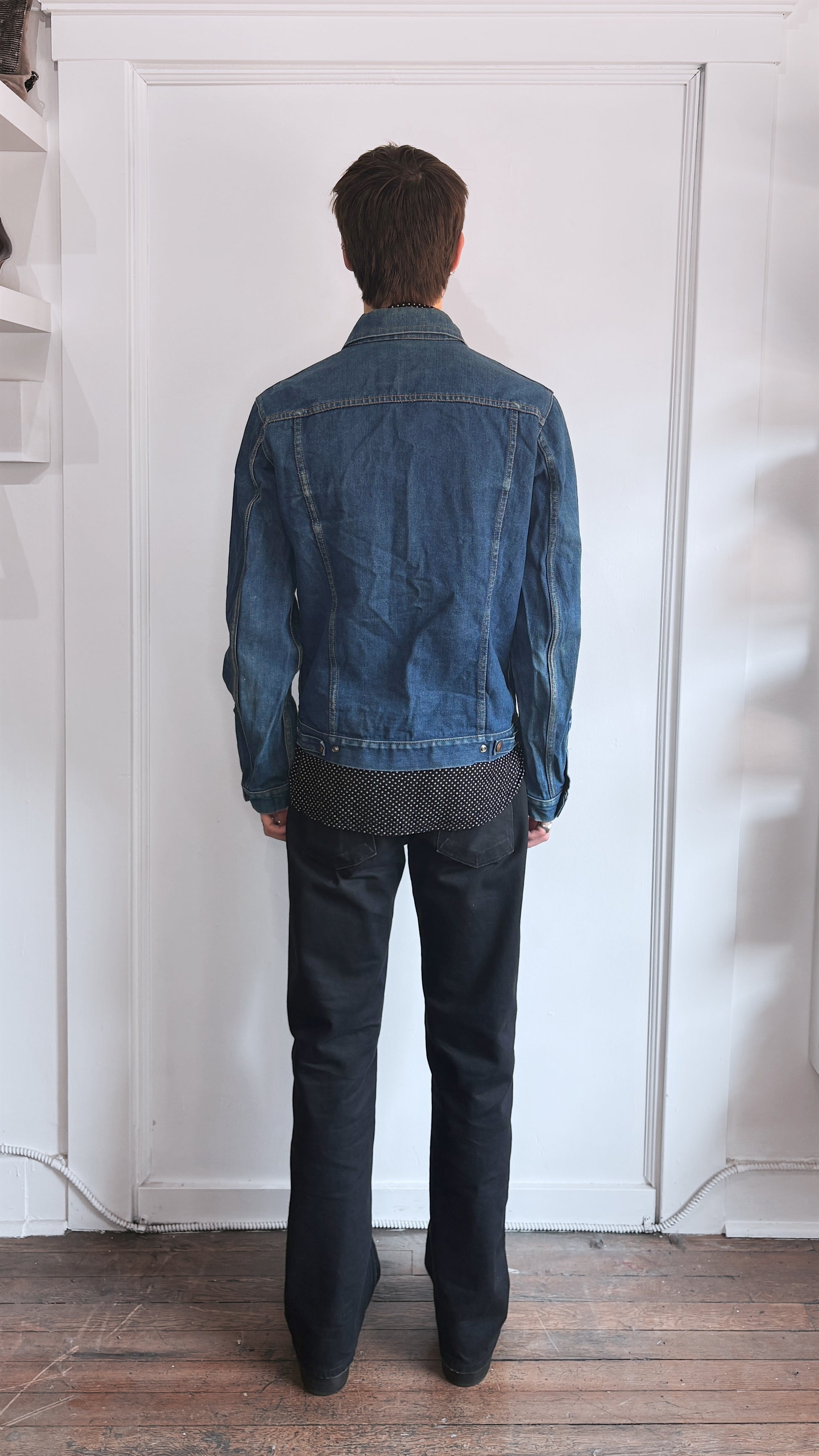 Item: GWG Vintage Dark Blue Denim Jacket W/ Snap Button Closure