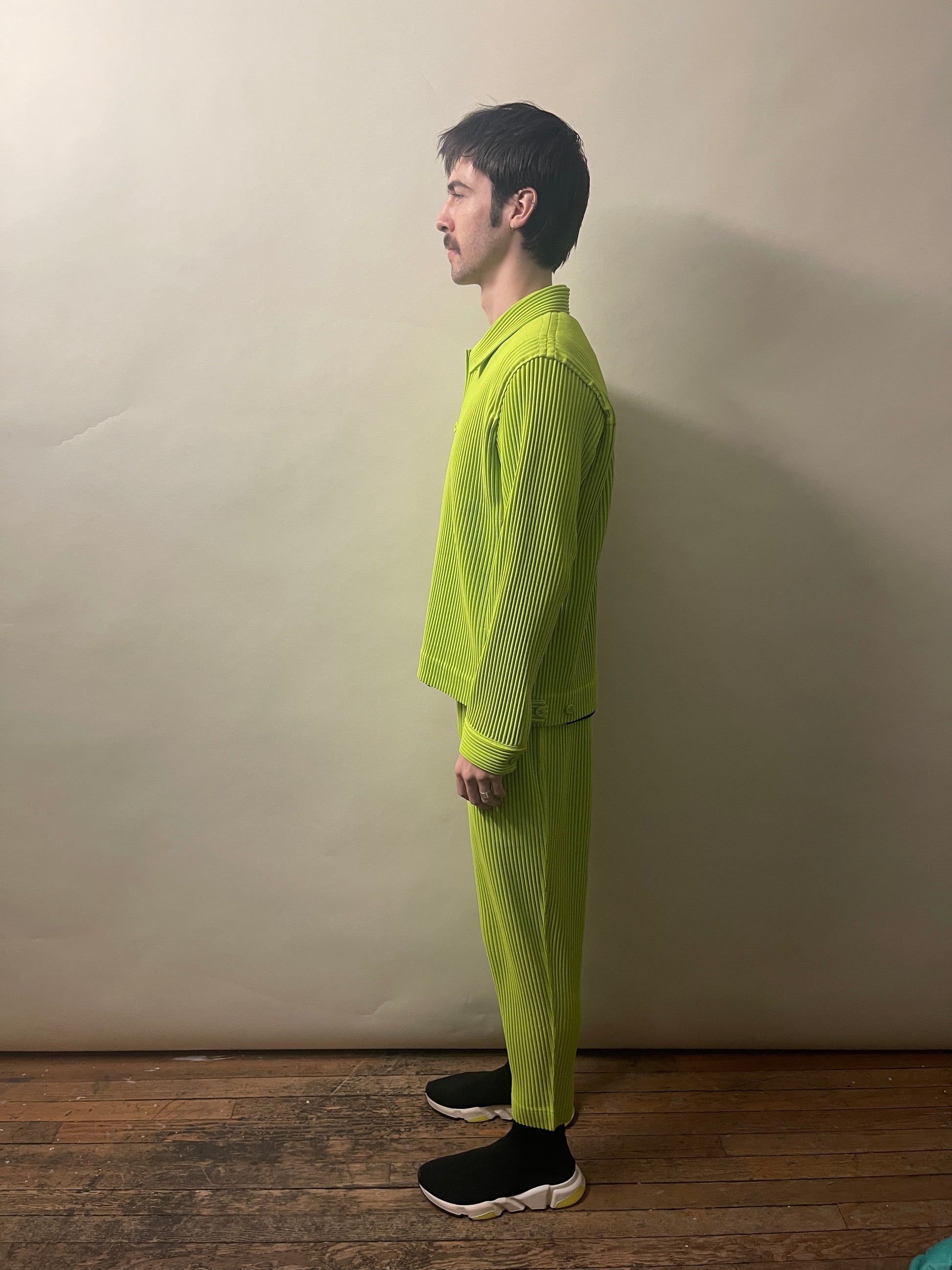 Homme Plissé Issey Miyake Lime Green Pleated Collared Jacket Large - L