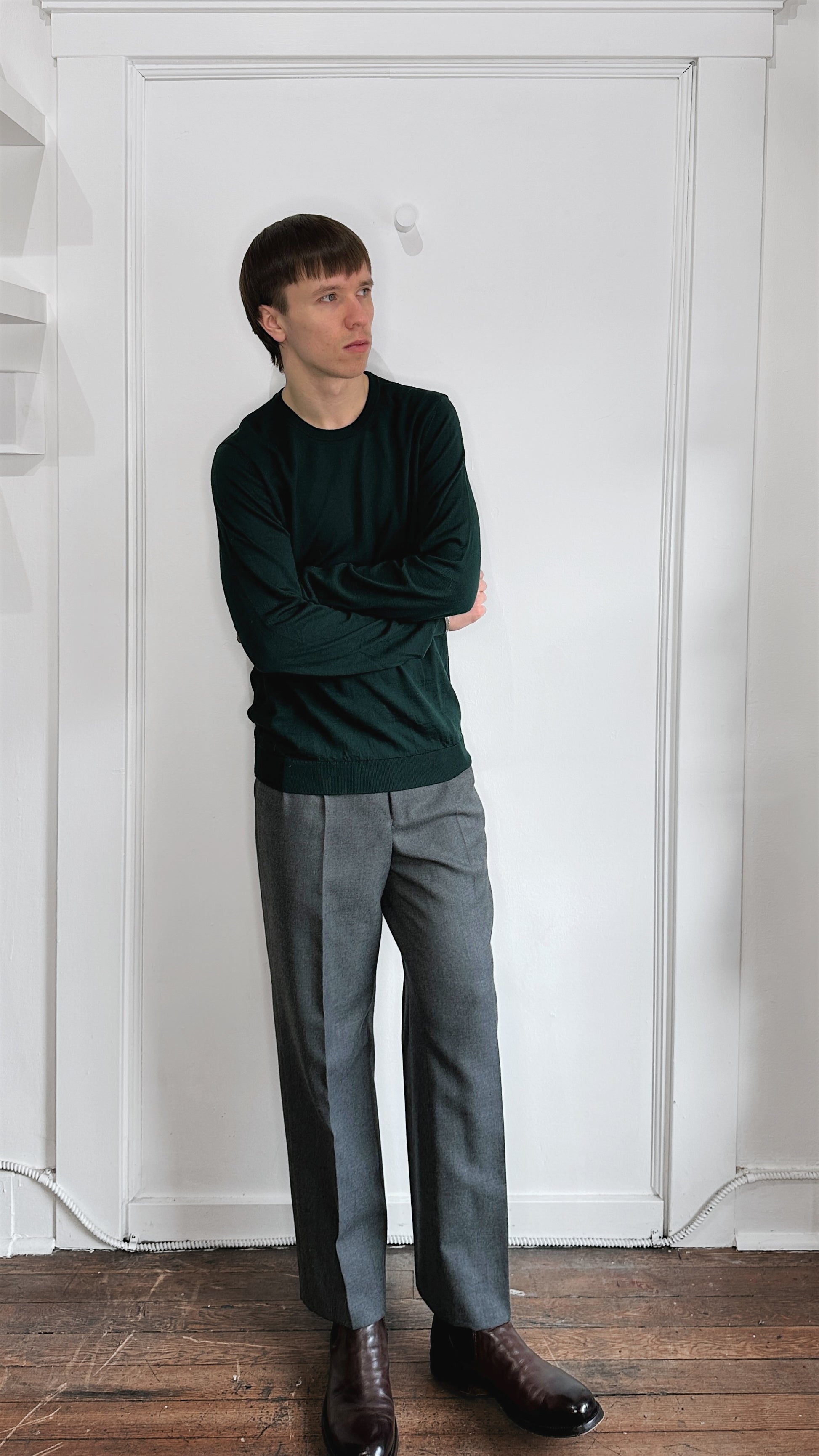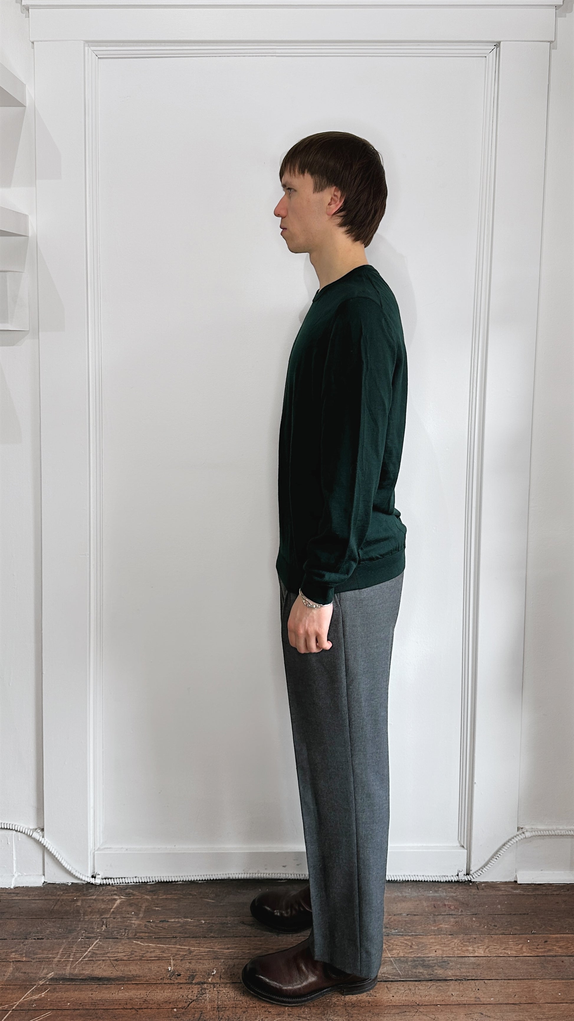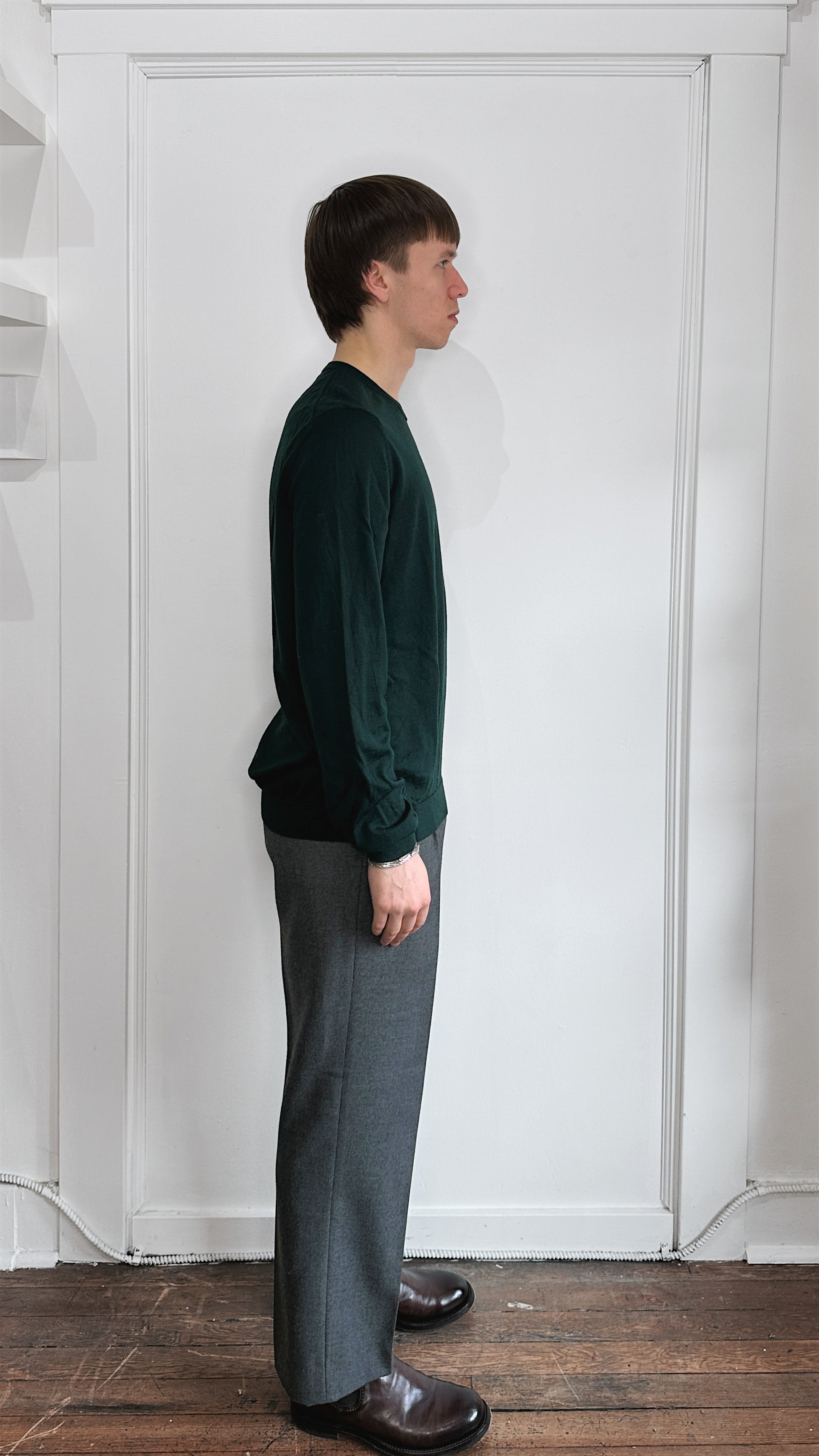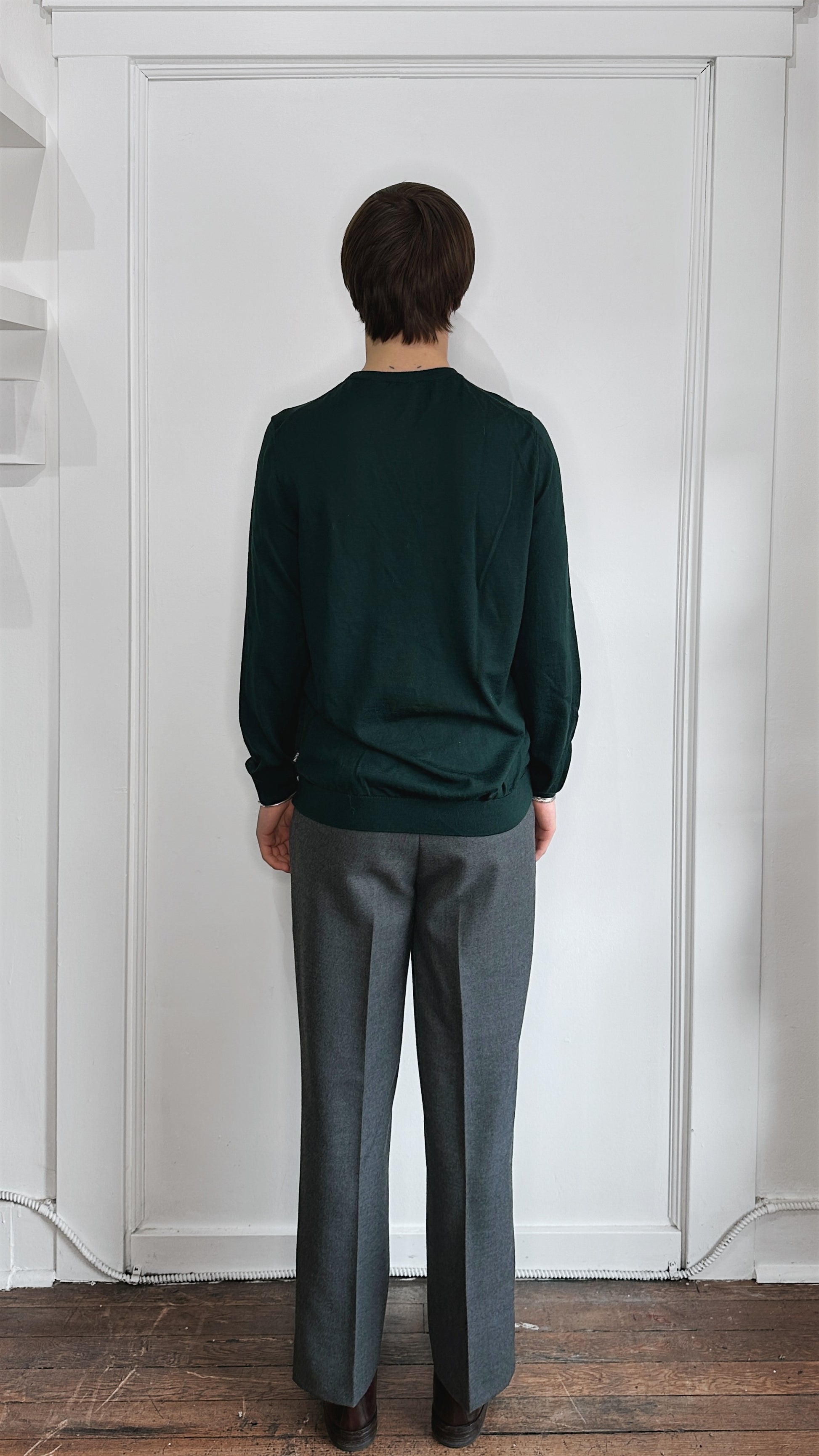 Item: Hugo Boss Forest Green Lightweight Wool Knit Crewneck Sweater Extra Large