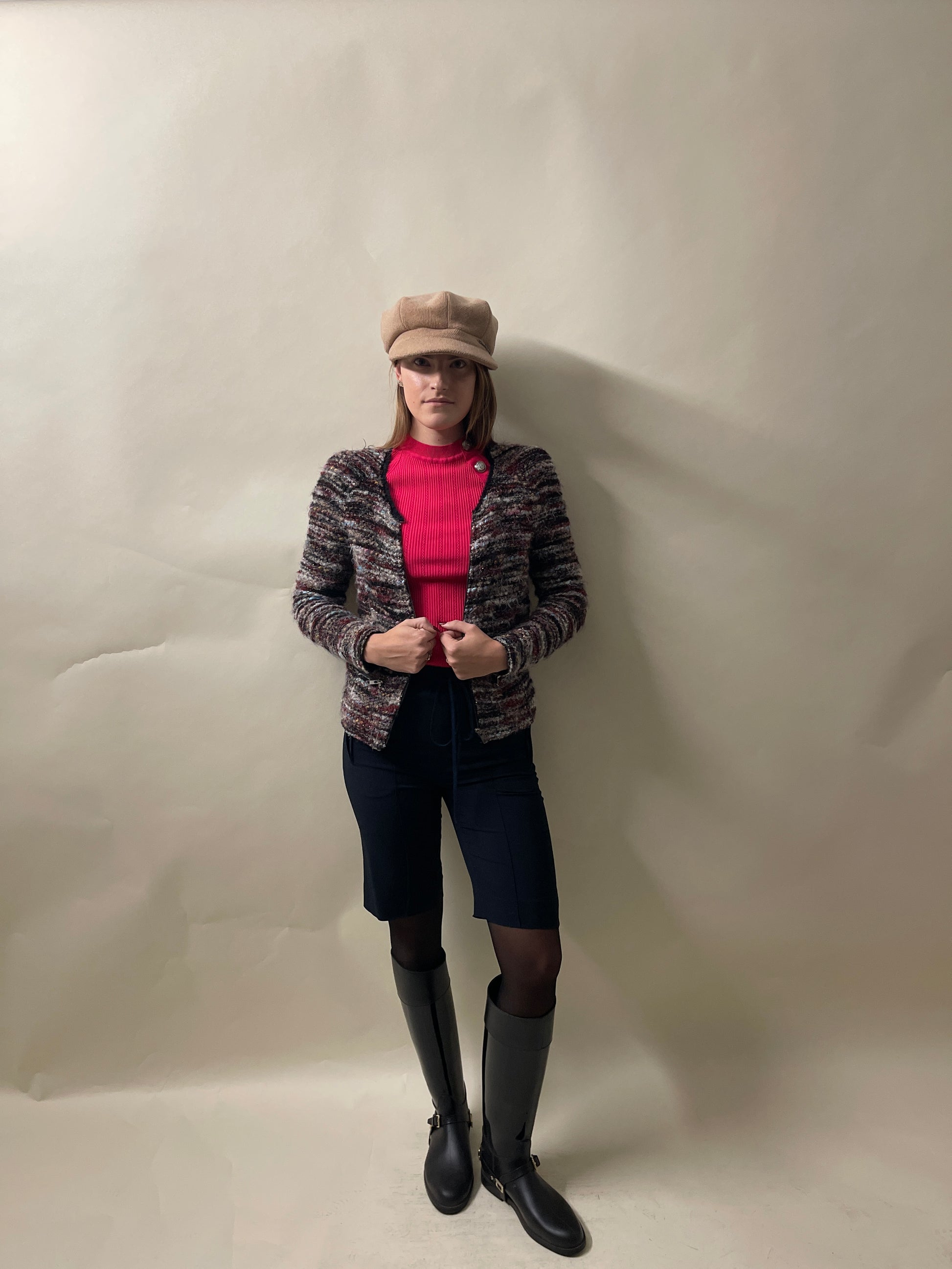 Isabel Marant Etoile Multicolour Hairy Knit Zip Up Jacket W/ Shiny Thread & Raw Neck 38