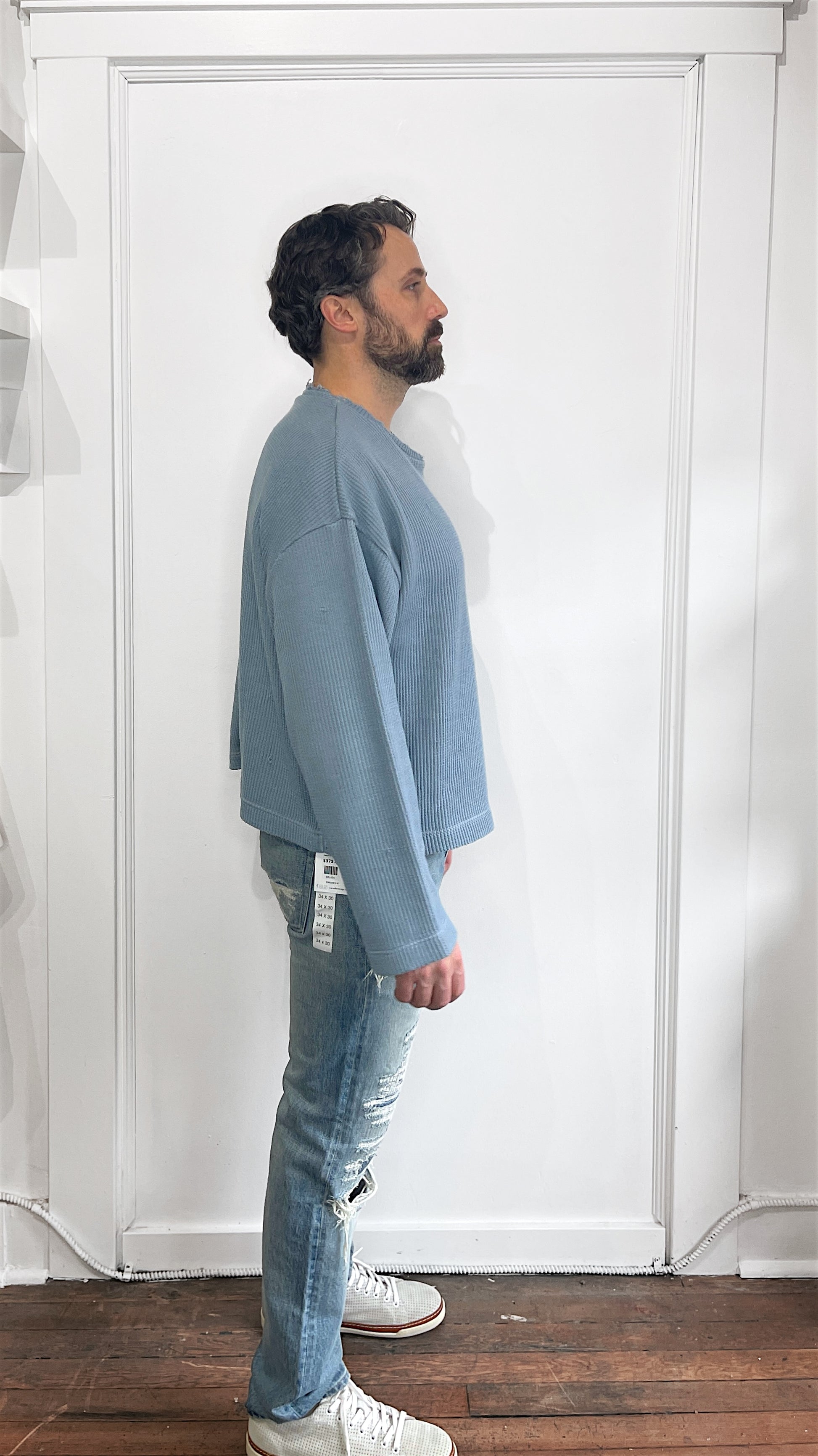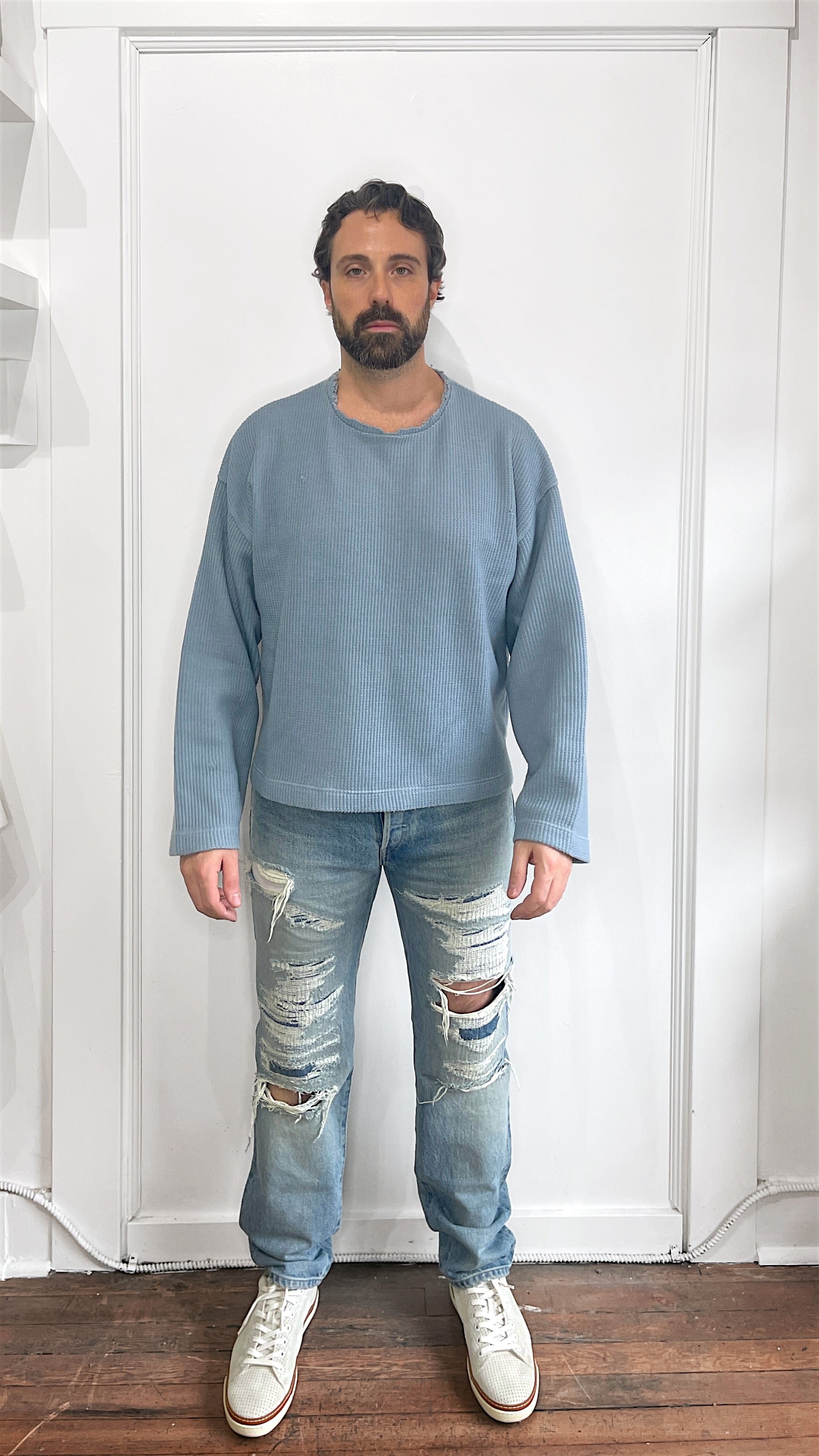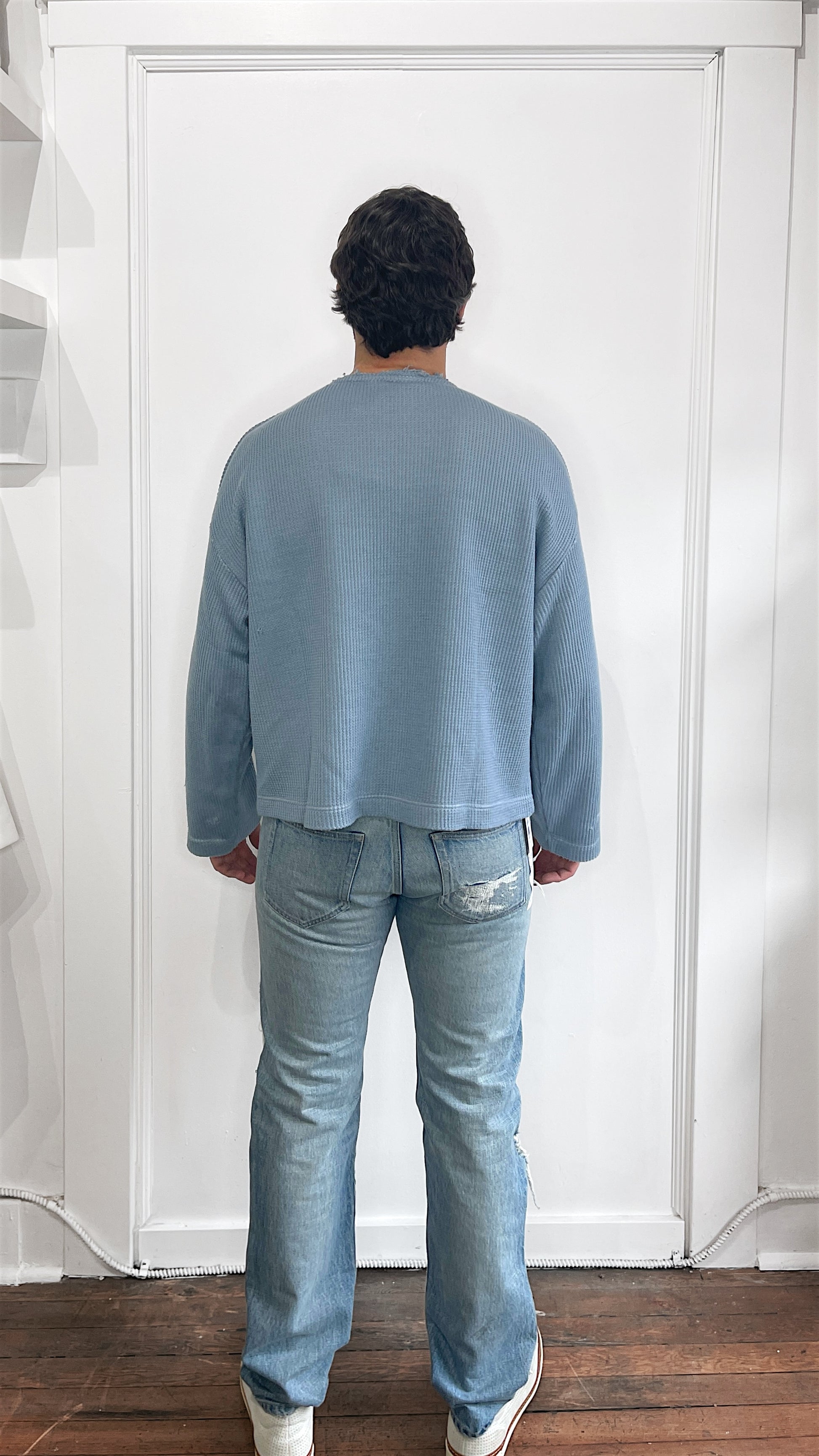 Item: JieDa Baby Blue Oversized Waffle Crewneck LS Shirt Medium