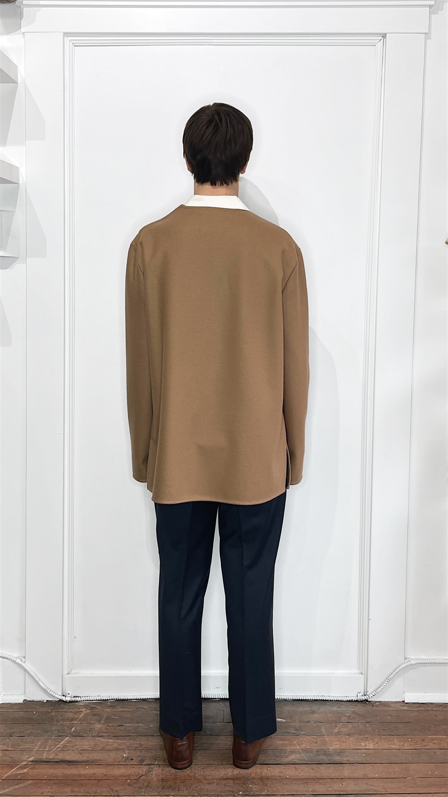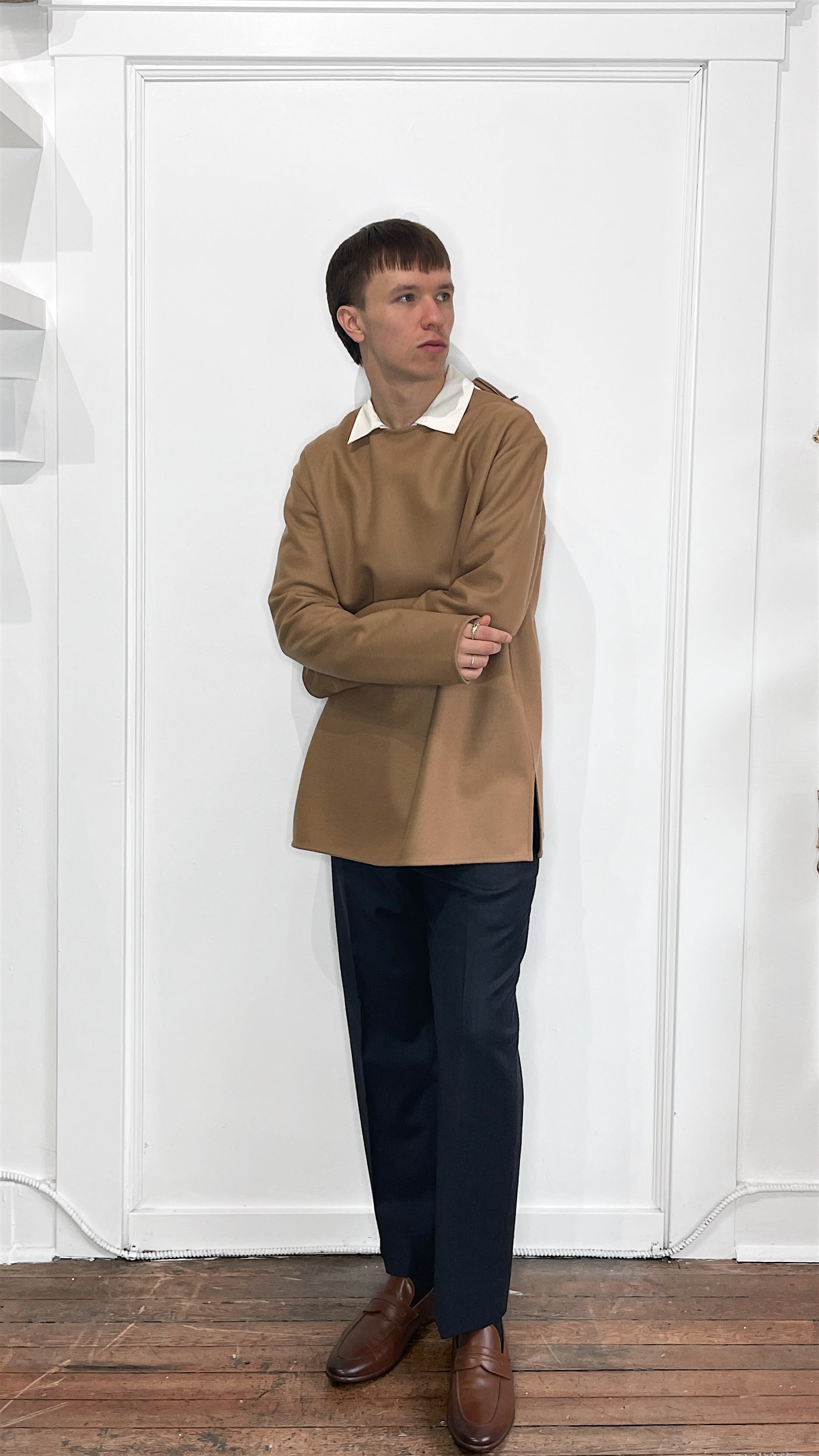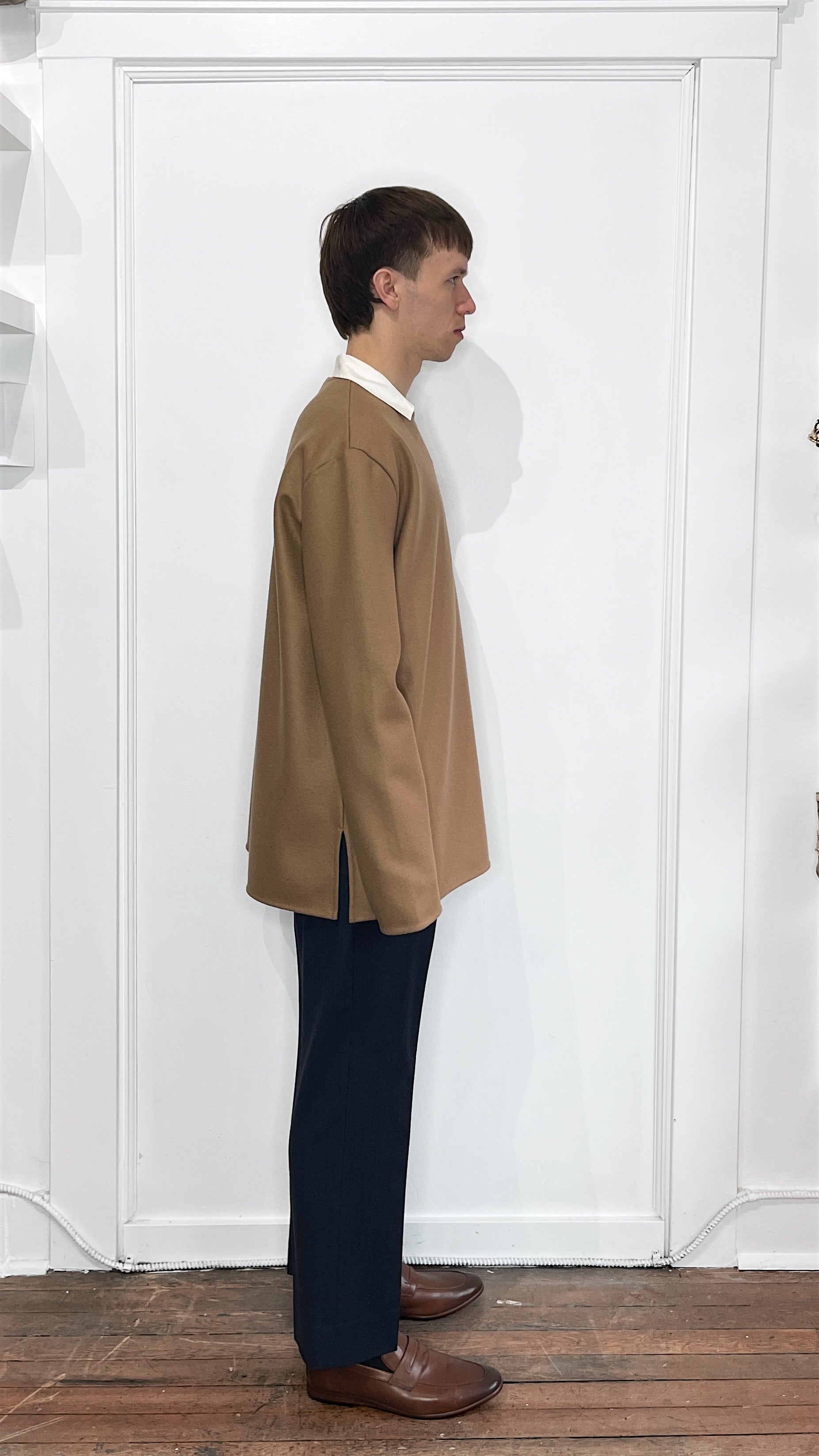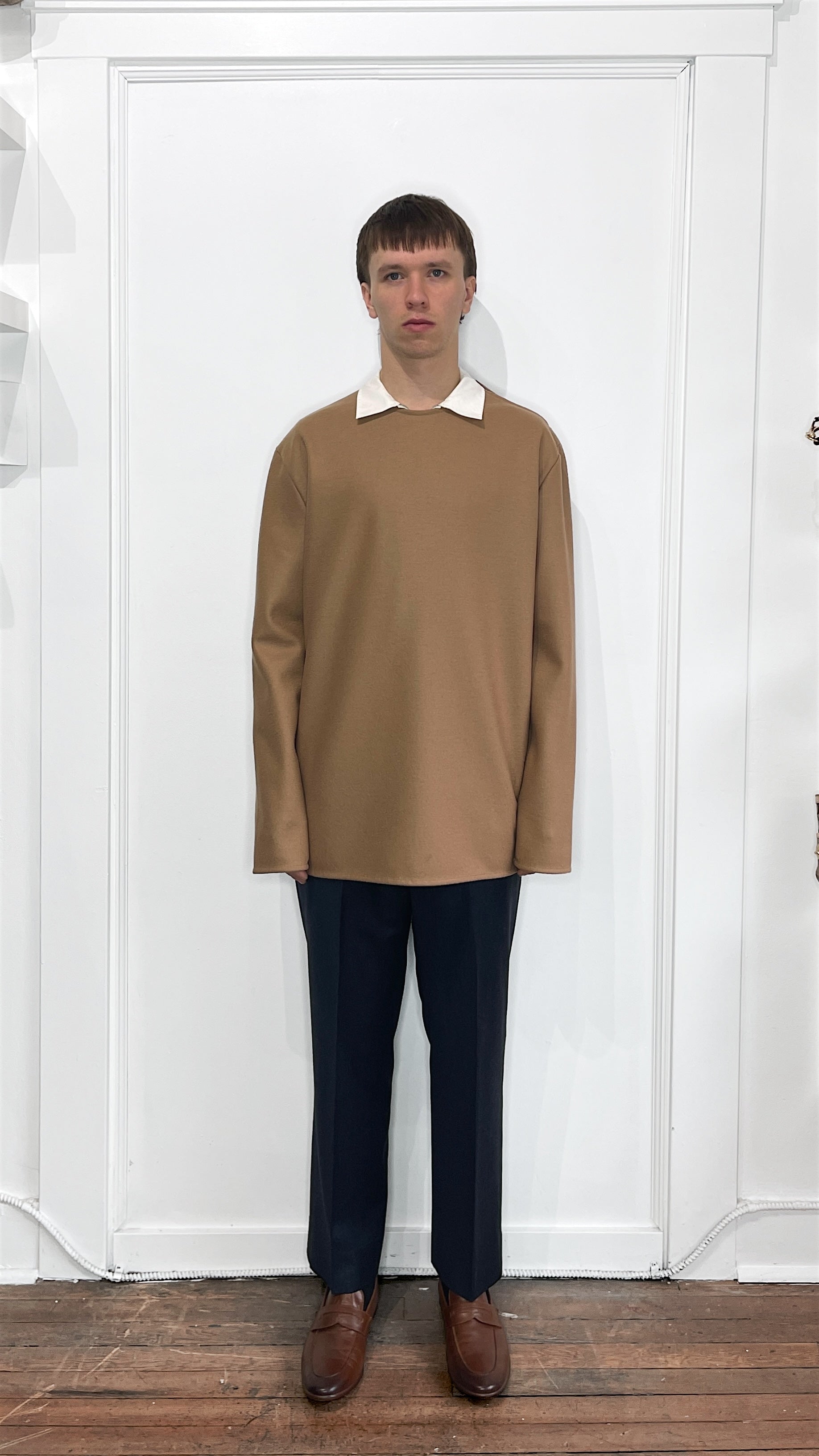 Item: Jil Sander Camel Flannel Wool Zip Shoulder Crewneck Sweater / Shirt 46