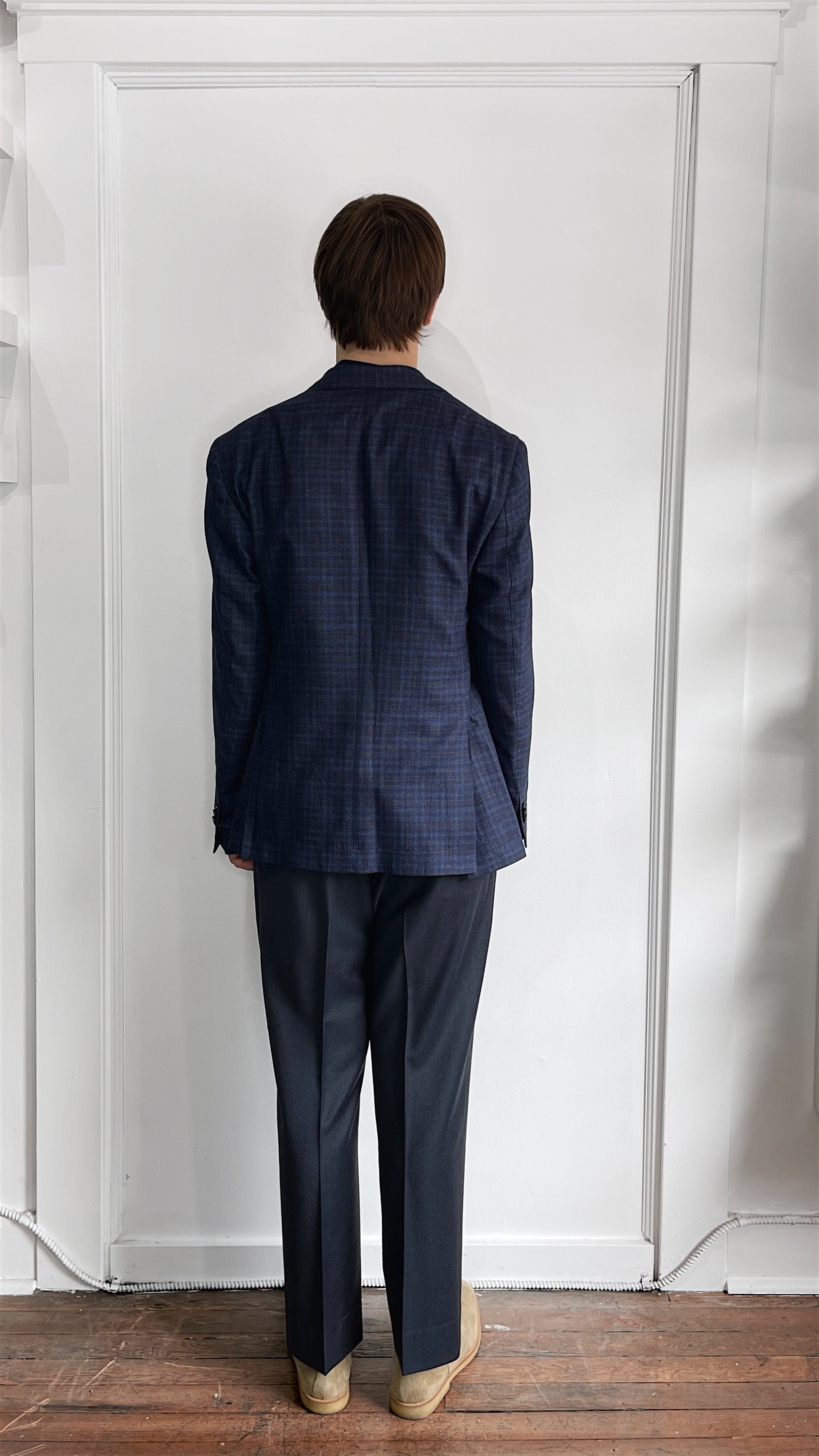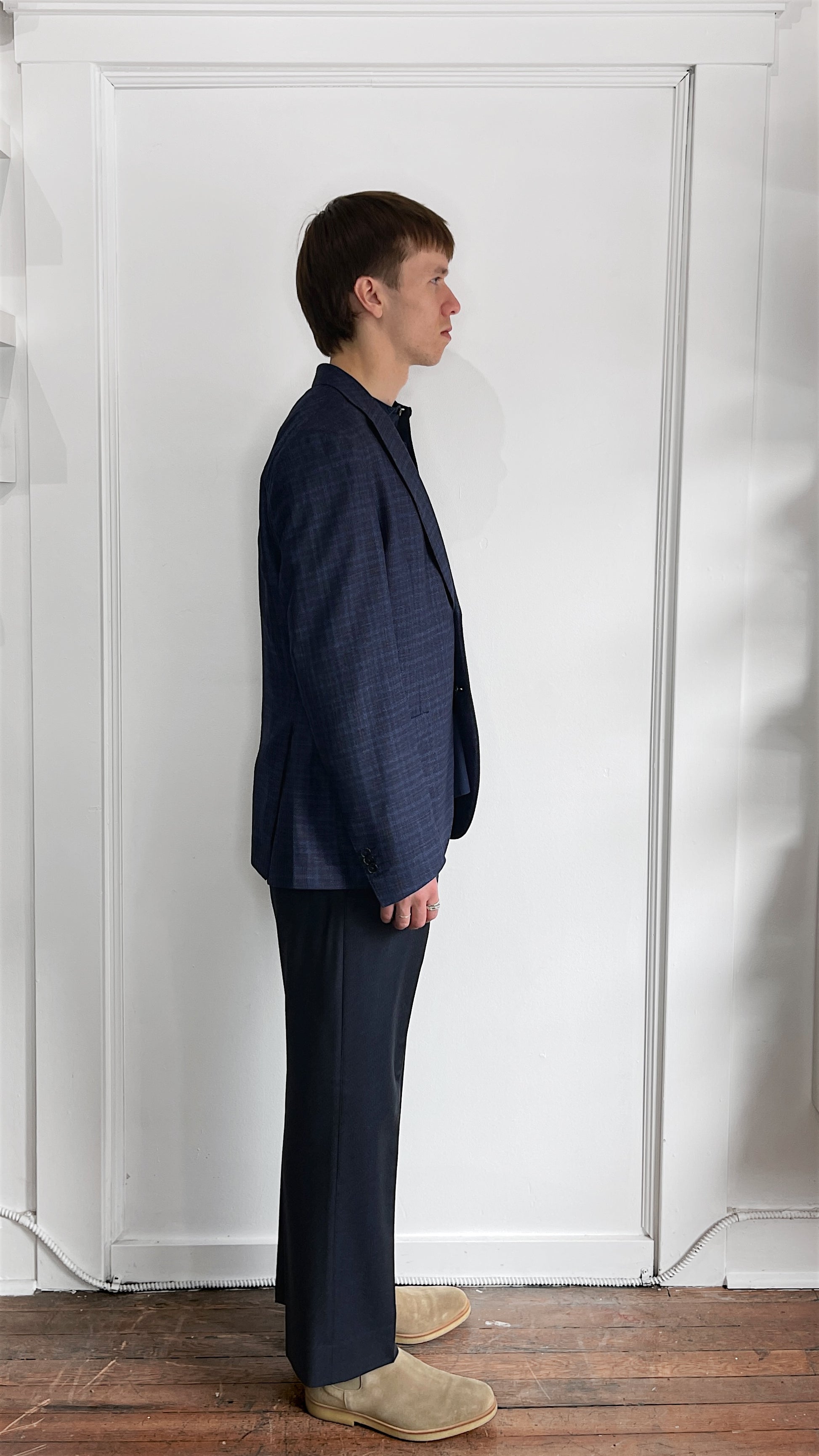 L.B.M. 1911 Navy Blue & Brown Plaid Silk Wool Unlined Sport Coat 40R