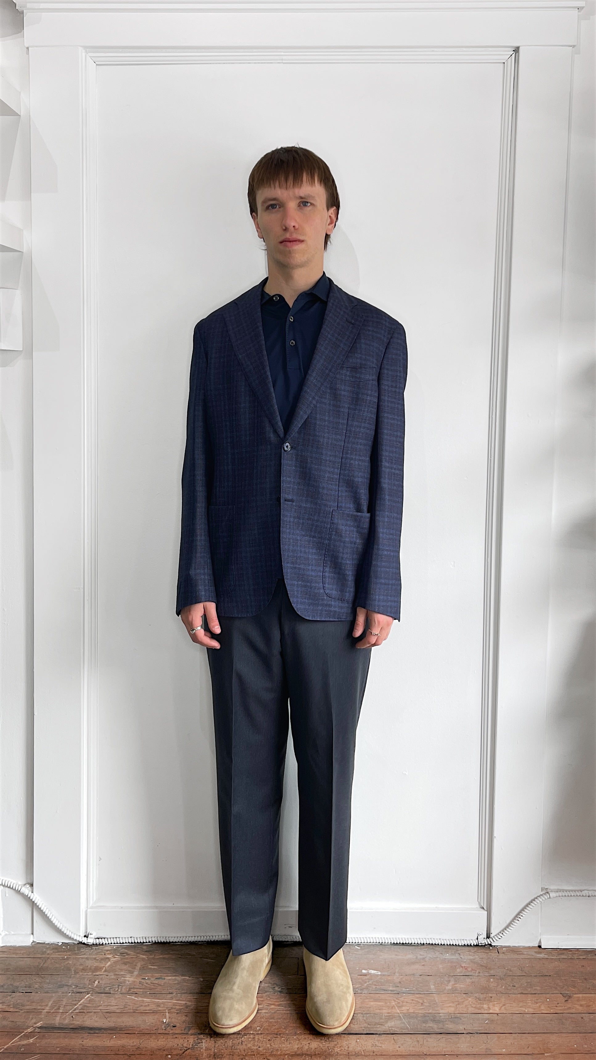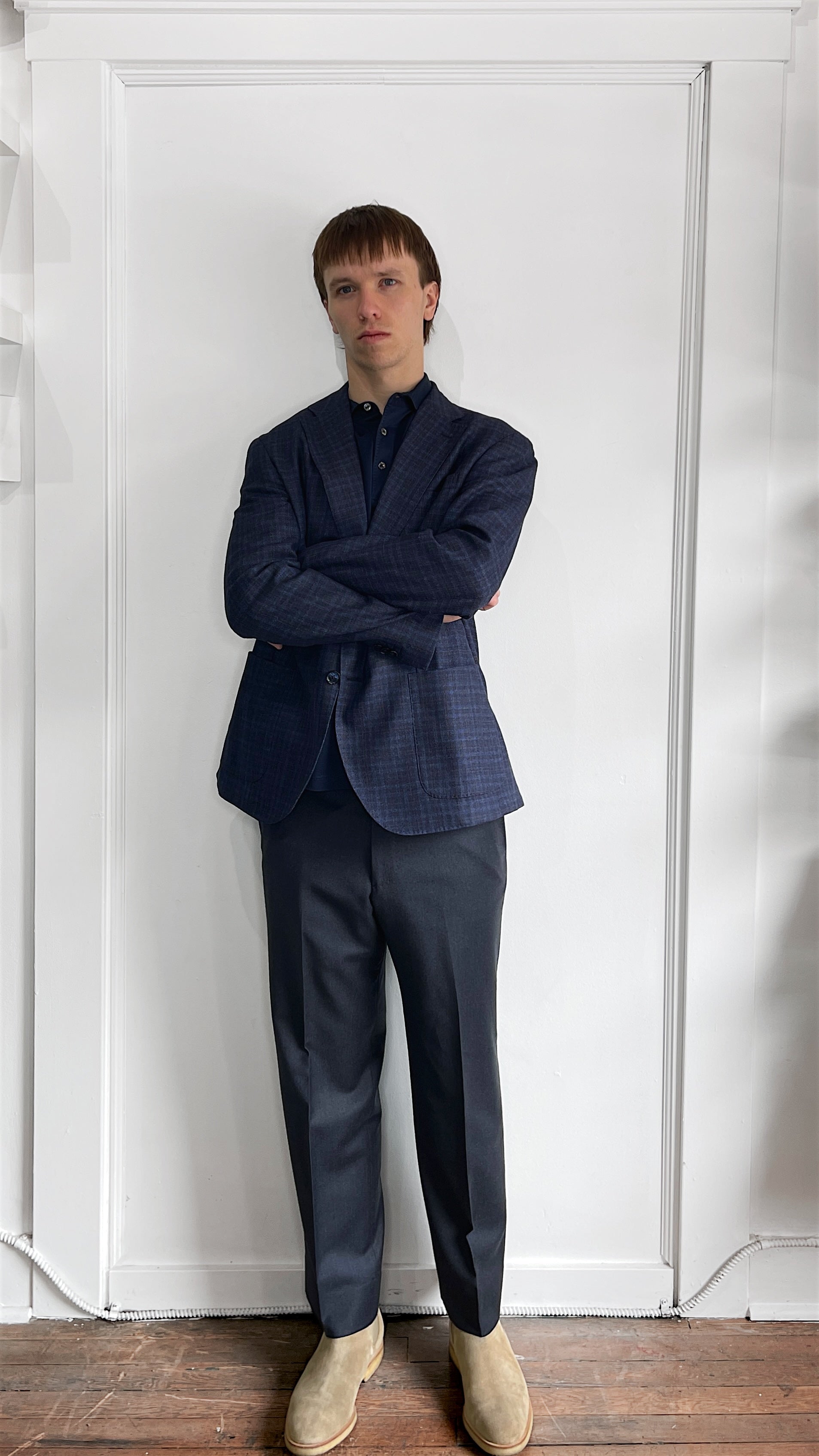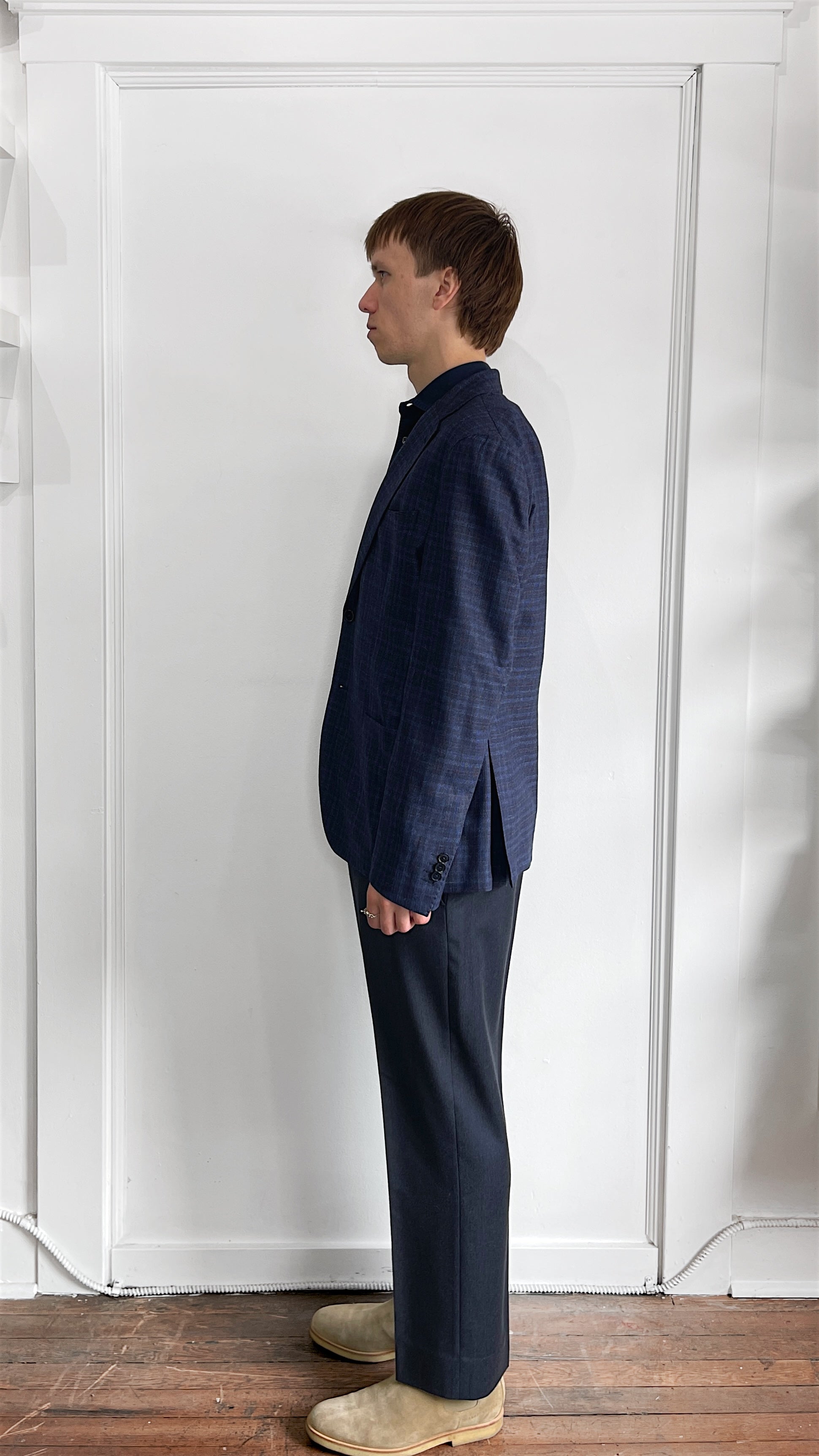 Item: L.B.M. 1911 Navy Blue & Brown Plaid Silk Wool Blend Unlined Sport Coat 40R