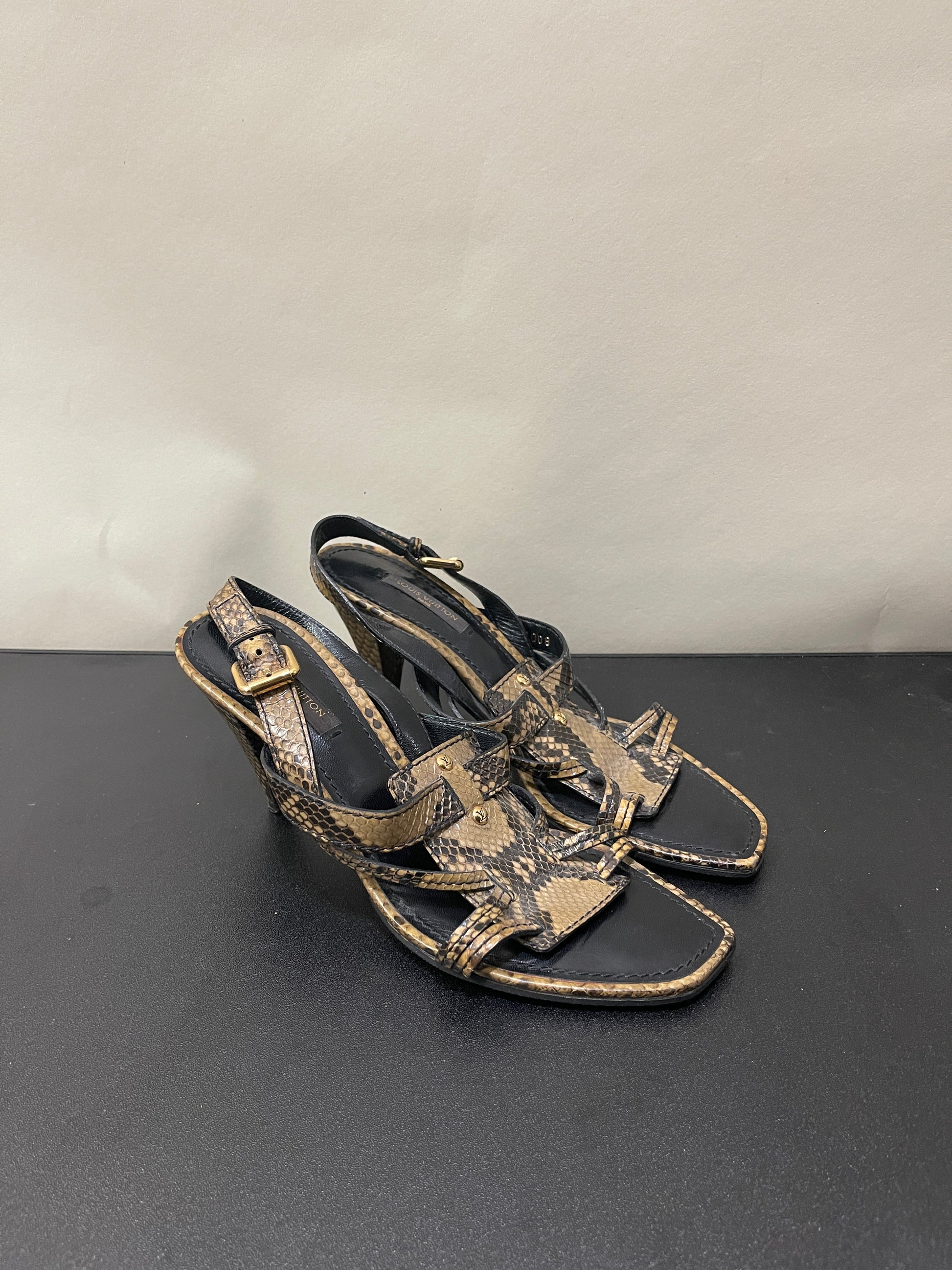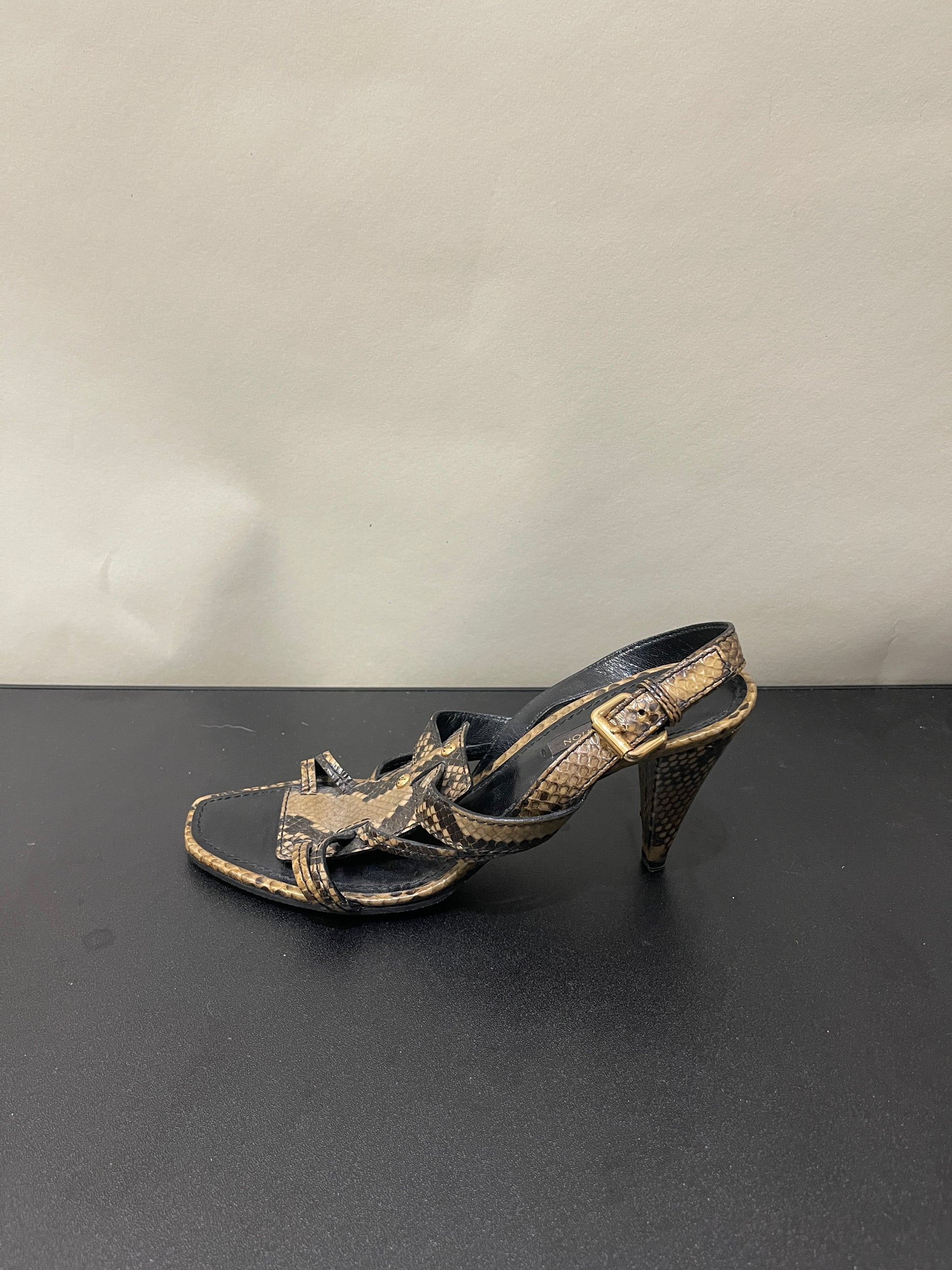 Louis Vuitton Brown Pyhton Print Leather Slingback Heeled Sandals 36.5 / 5 M / 6.5 W - Made in Italy