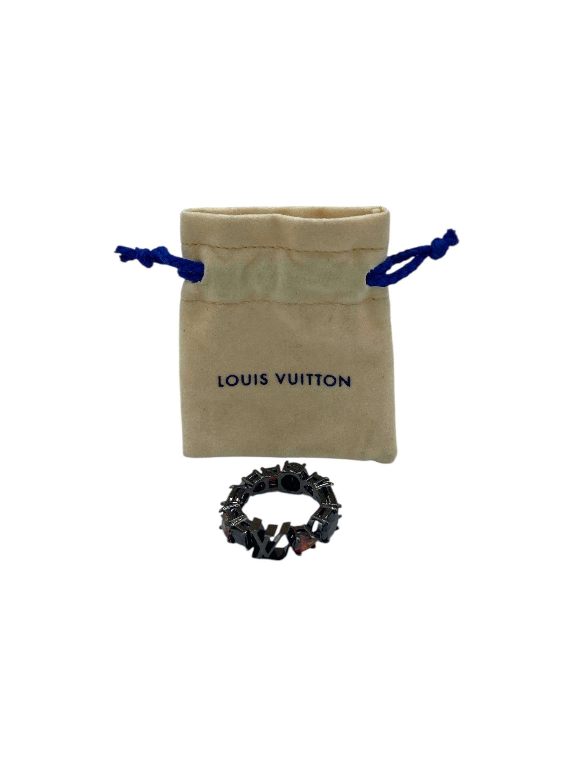 Louis Vuitton Gunmetal & Gemstone LV Light Ring 8.25 US - Made in Italy