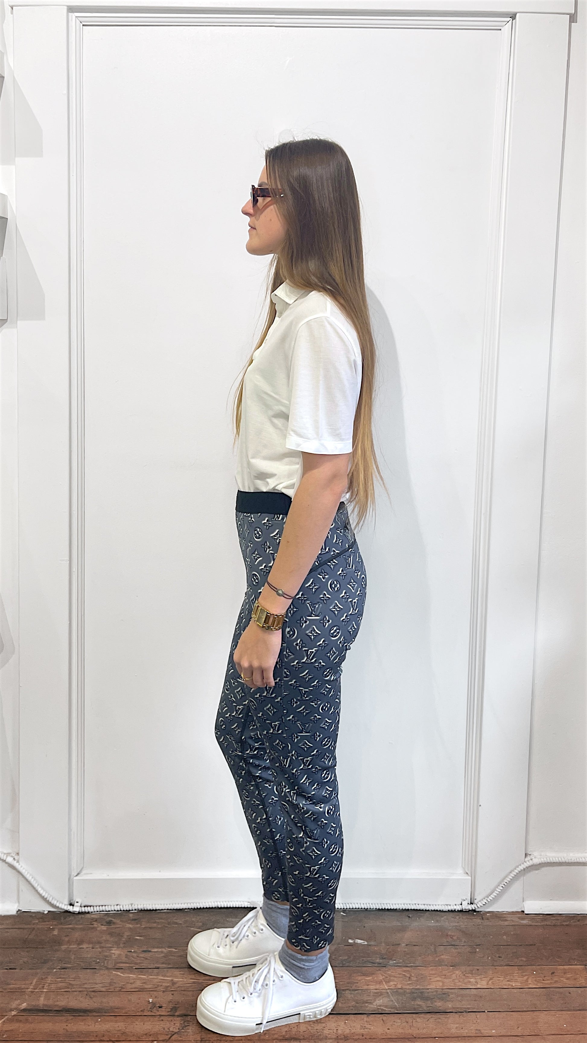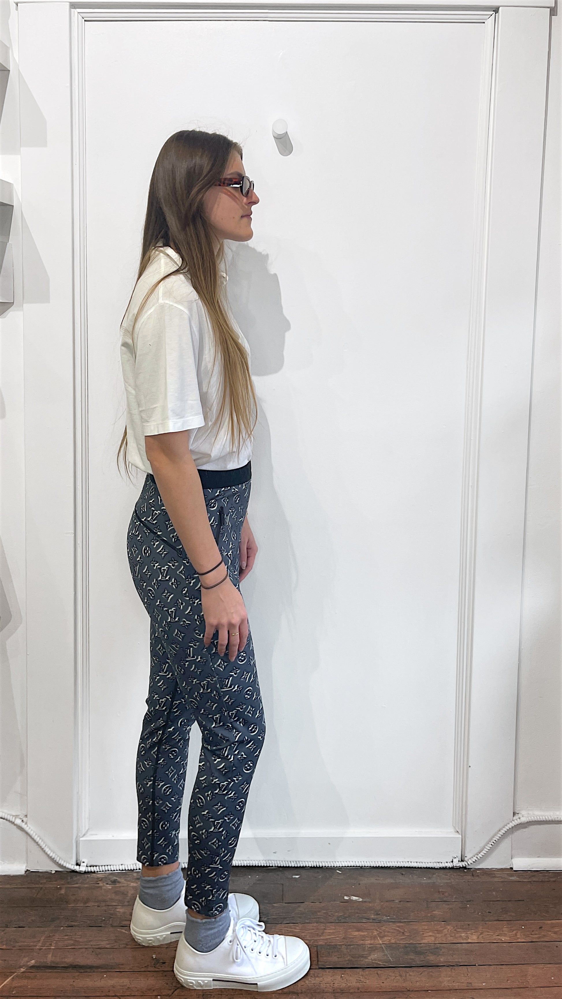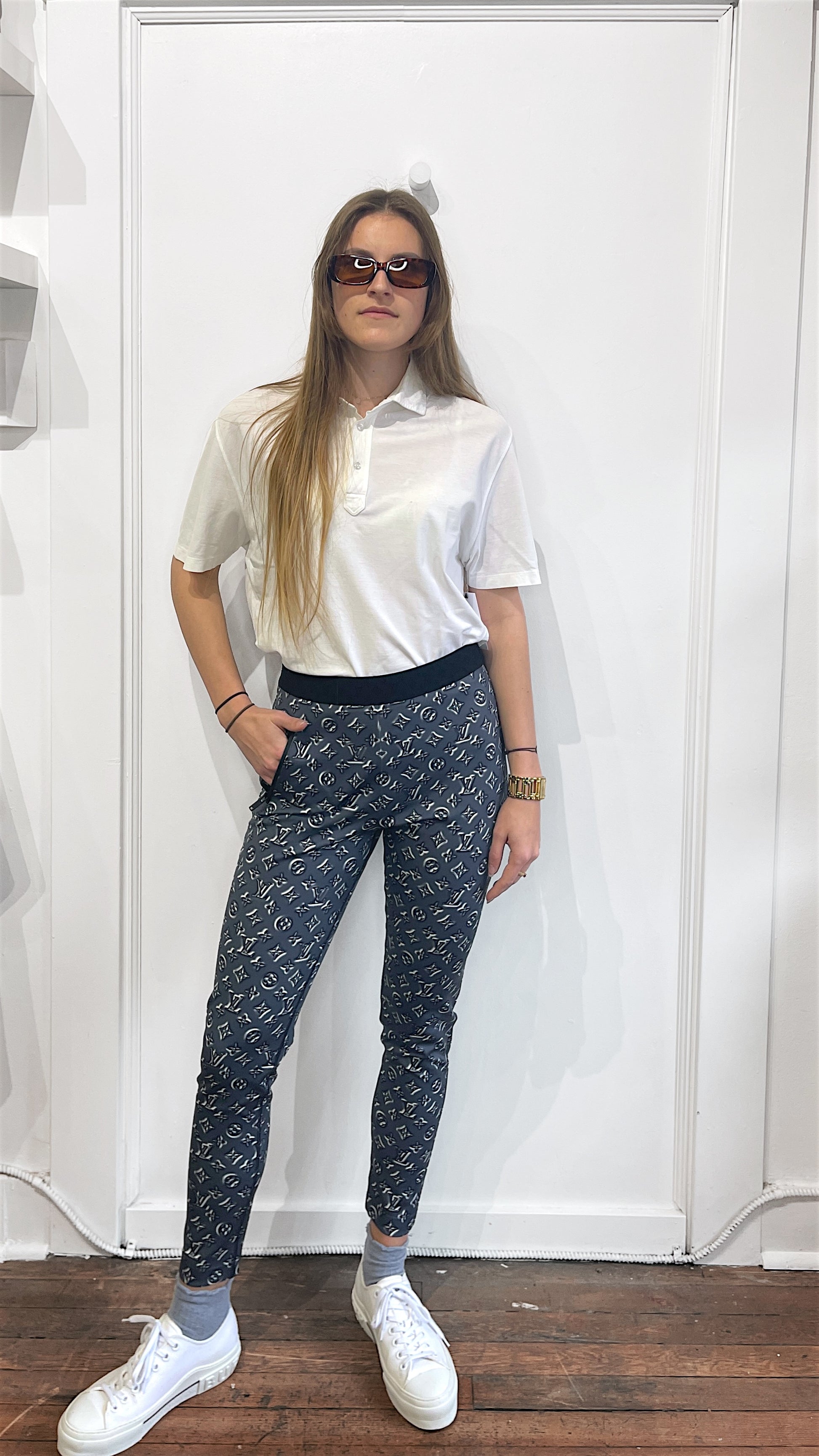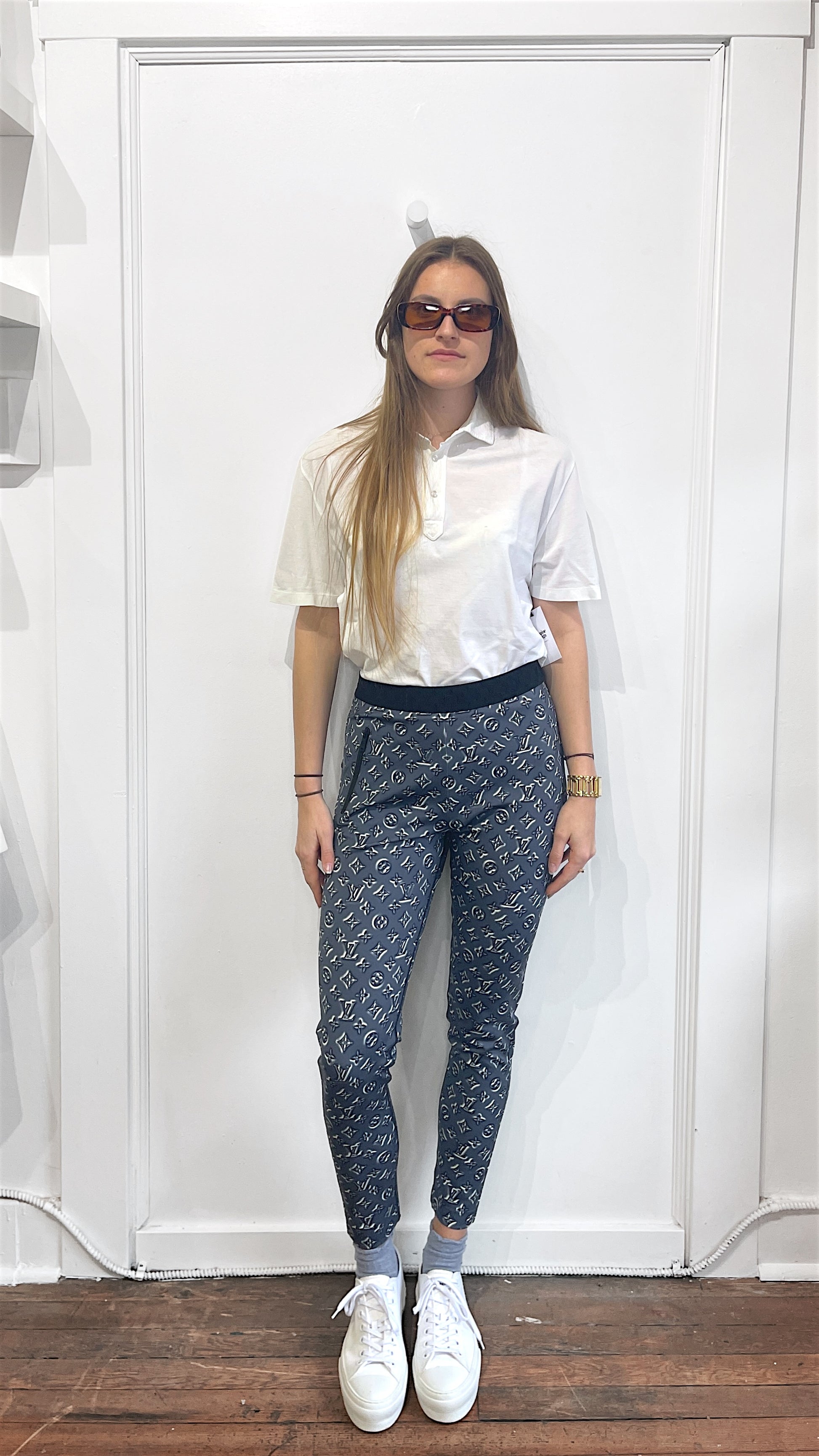 Item: Louis Vuitton Metallic Grey Monogram Leggings 42