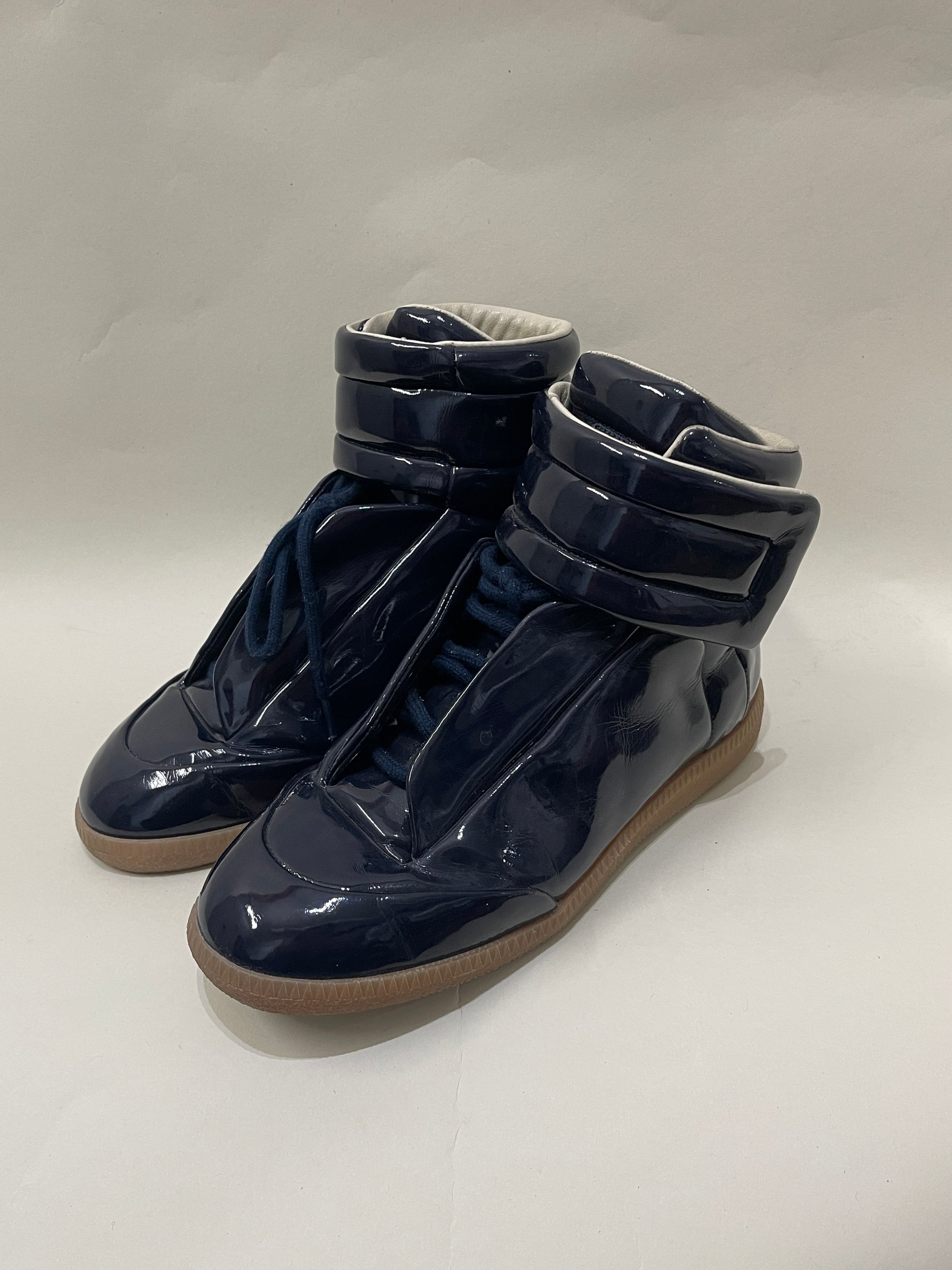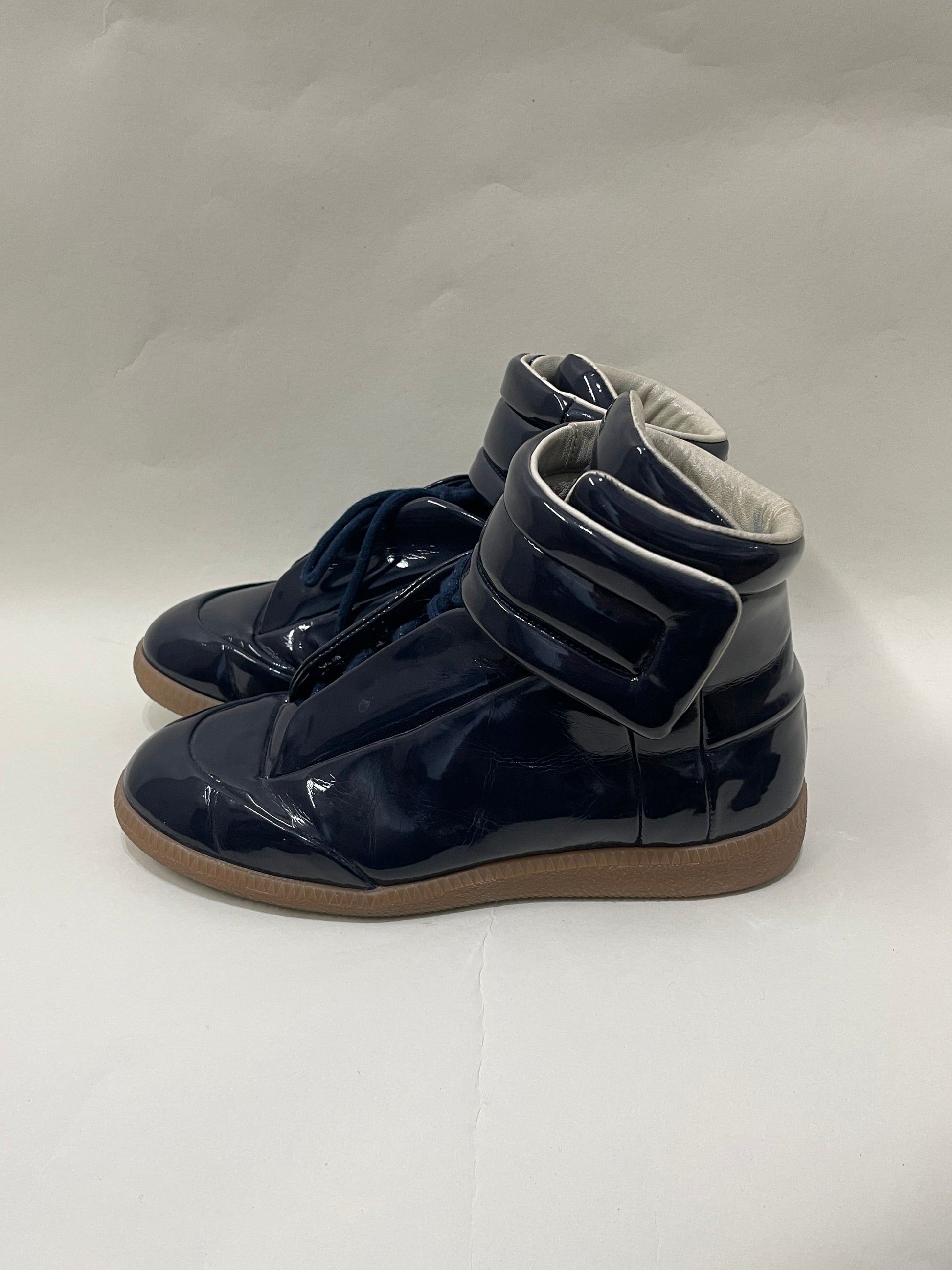 Maison Margiela Navy Blue Patent Leather Future Hi Sneakers 3.5 M / 5 W