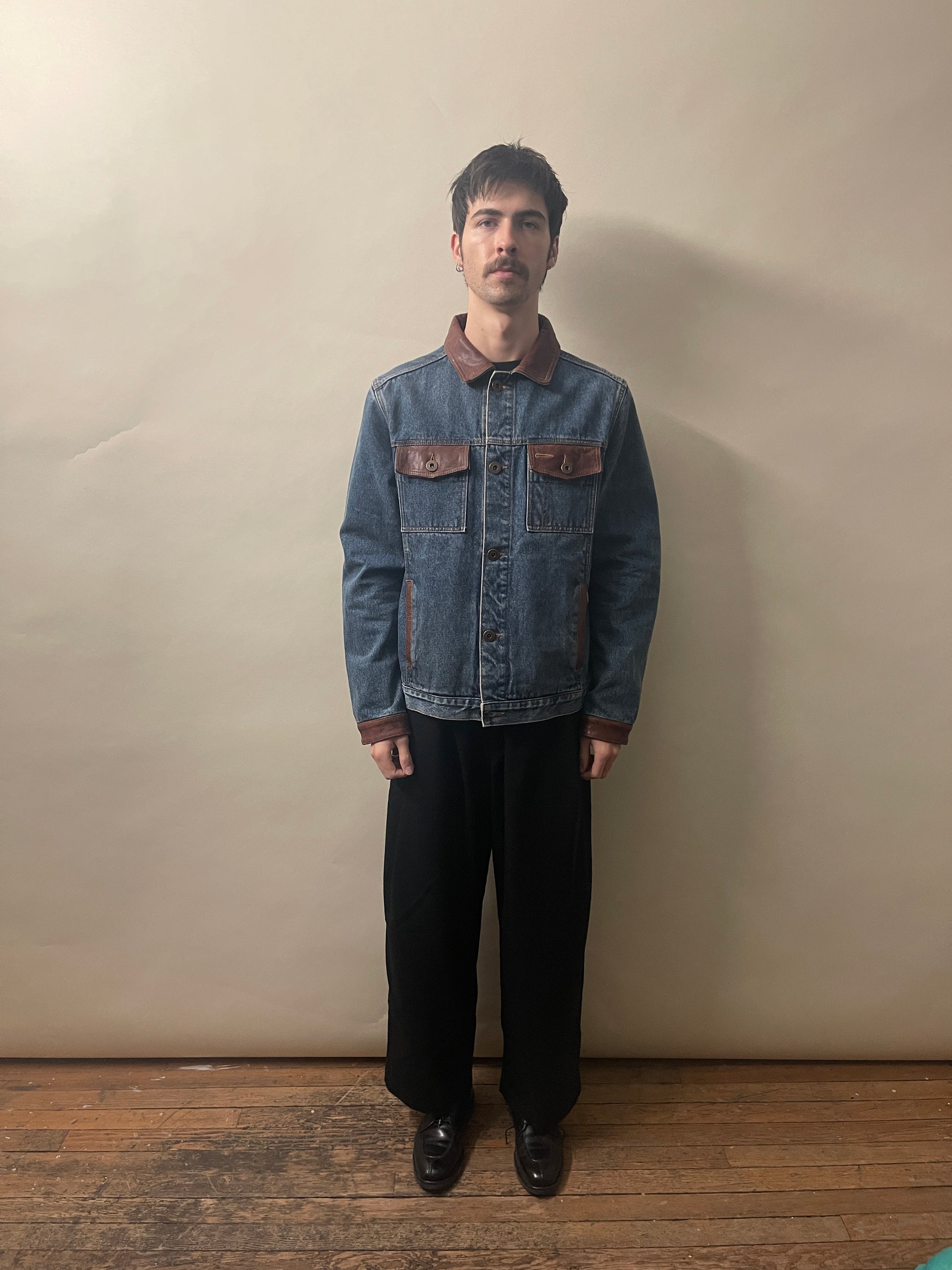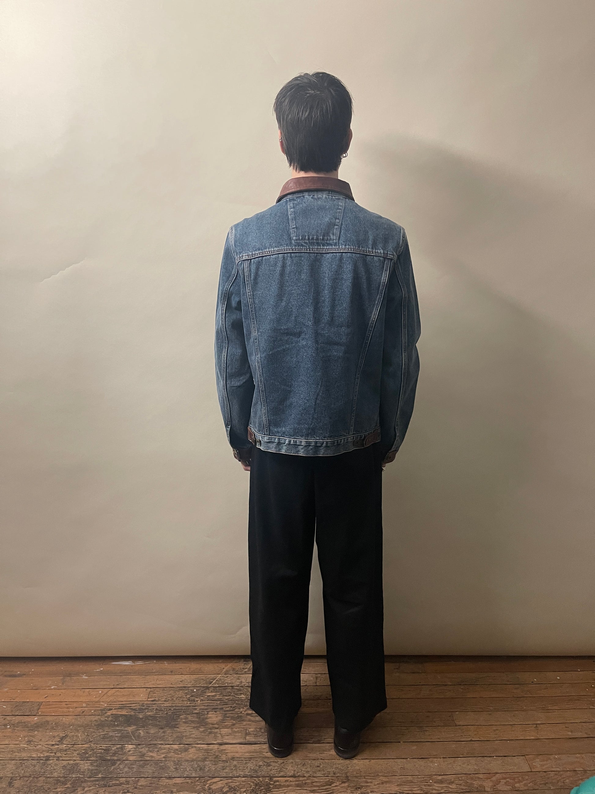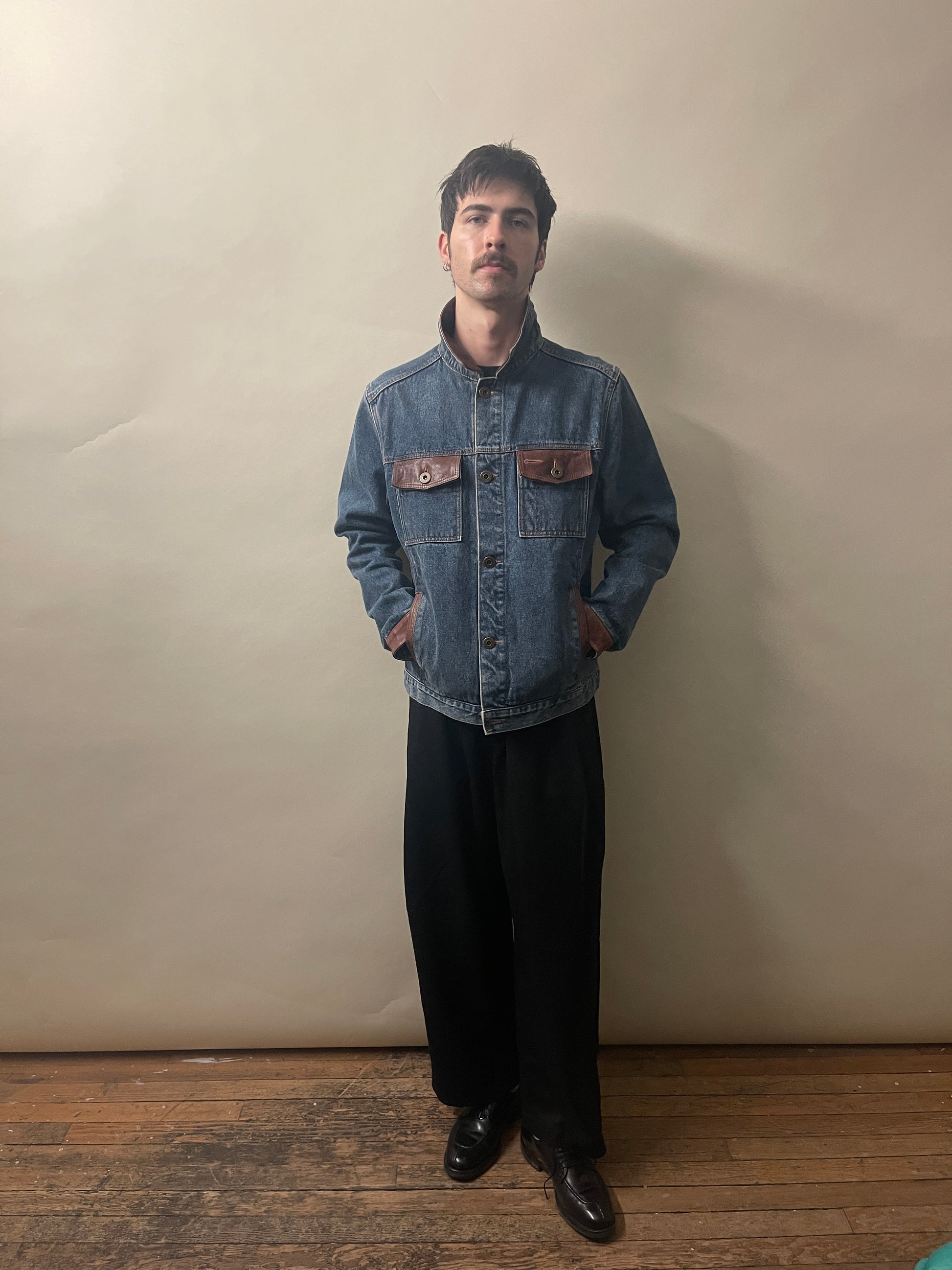 Mavericks of Scottsdale Mid Blue & Brown Denim & Leather Trucker Jacket Medium - M